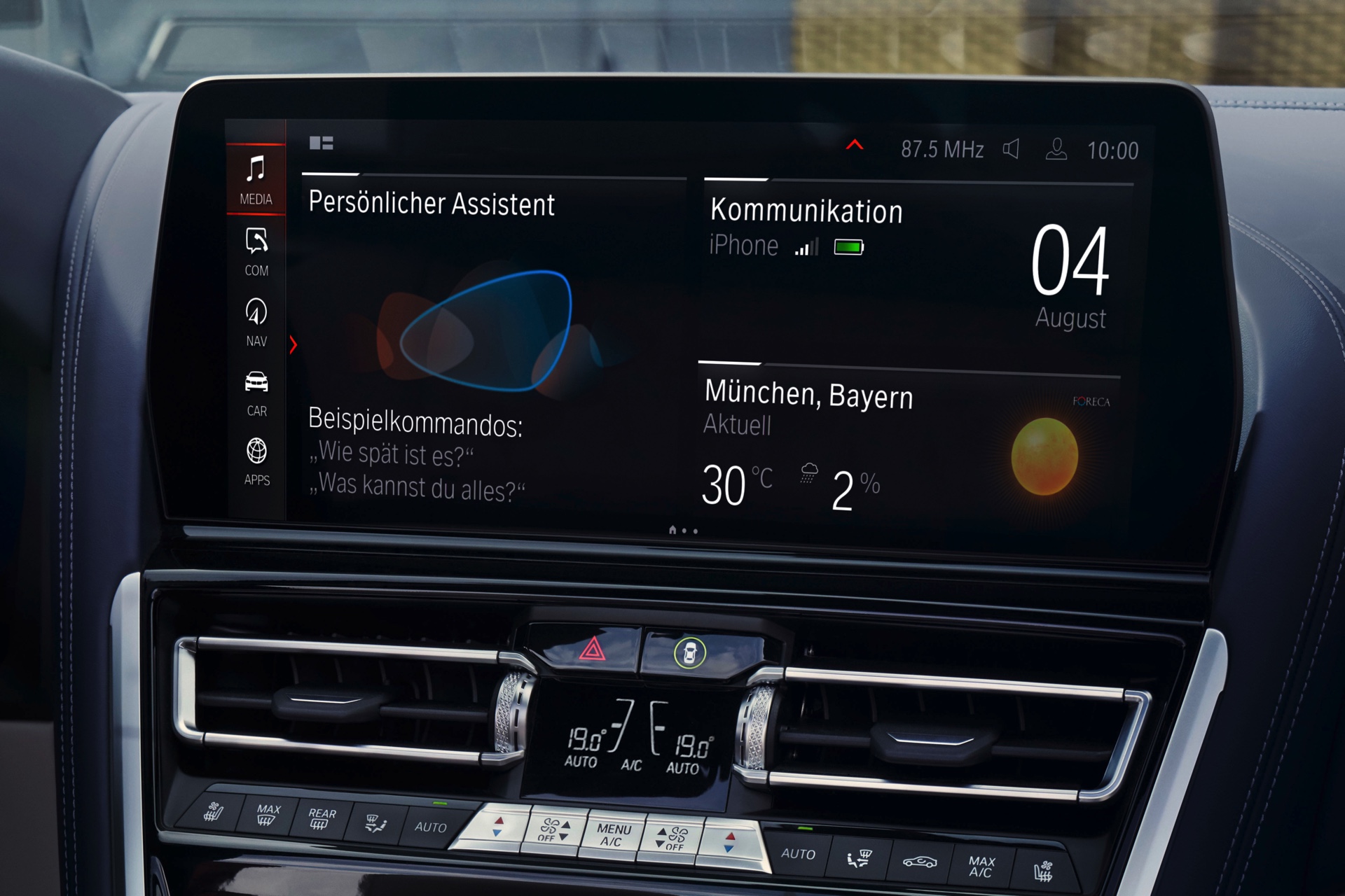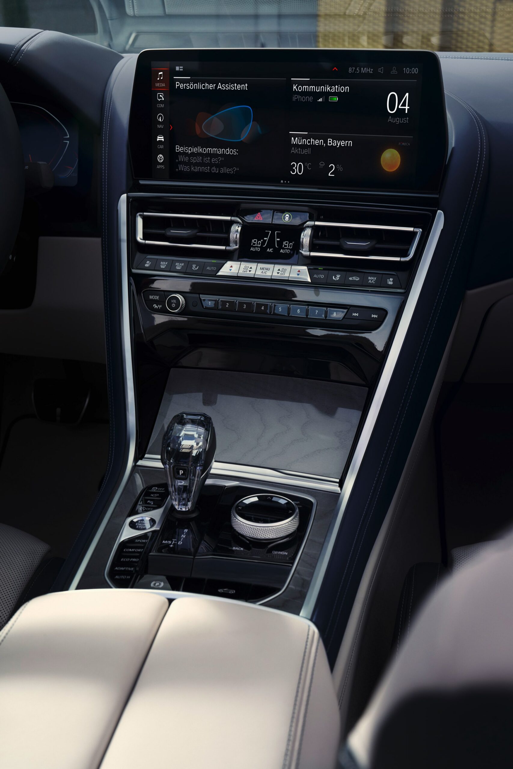 Auch im Innenraum bleibt sich die BMW 8er-Reihe treu, beim Umstieg vom Pre-Facelift-Modell in den neuen 8er dürfte aber doch eine große Veränderung ins Auge fallen: Das zentrale Infotainment-Display des serienmäßigen BMW Live Cockpit Professional verfügt nun über 12,3 statt bisher 10,25 Zoll Bildschirm-Diagonale. Den Luxus-Anspruch der 8er-Familie unterstreicht auch die nun serienmäßige BMW Individual Lederausstattung Merino mit erweiterten Umfängen.