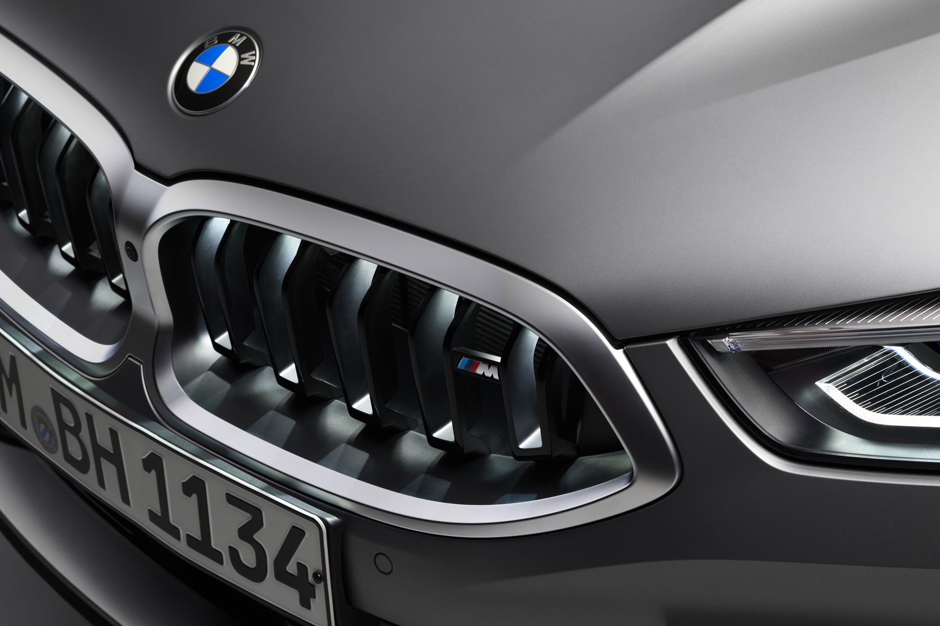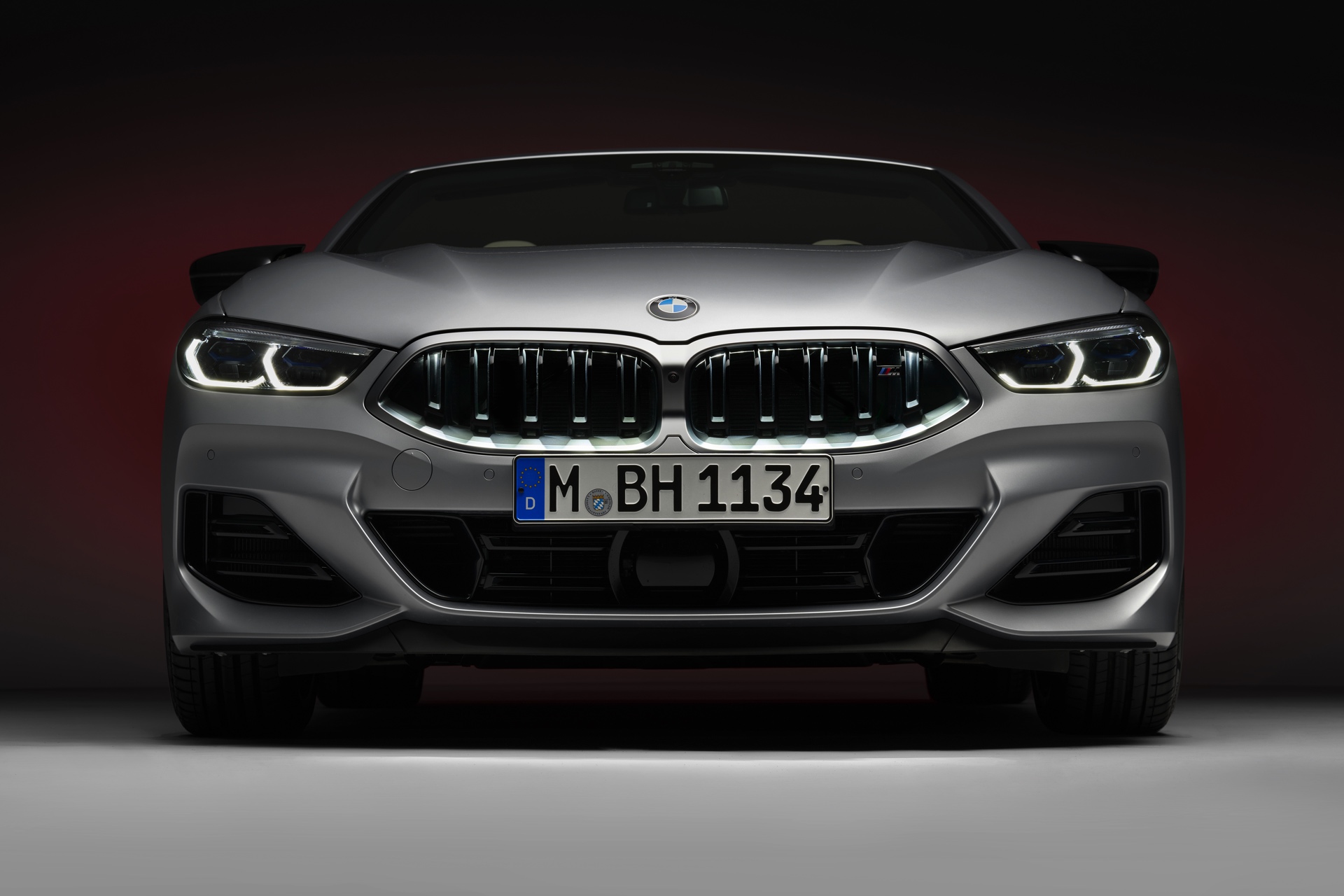Die vielleicht größte Einzelmaßnahme ist das nun serienmäßig verbaute M Sportpaket, das bisher nur gegen Aufpreis erhältlich war und fortan im Grundpreis enthalten ist. Vor allem bei Nacht werden außerdem die bereits aus anderen Baureihen bekannten Iconic Glow-Nieren für einen neuen Look sorgen: Die beleuchtete Doppel-Niere gehört mit dem BMW 8er Facelift 2022 ebenfalls zum Serienumfang und betont das generell neu gestaltete Nieren-Innenleben – das aber eher ein Fall für Detail-verliebte Kenner ist: Statt bisher sieben Einzel- gibt es nun fünf Doppel-Streben im M-Look. Auffälliger sind da schon die bisher dem M8 vorbehaltenen M-Außenspiegel und das M-Logo auf den Nierenstreben, die als M Performance-Merkmale ab der Modellpflege auch beim M850i verbaut werden.