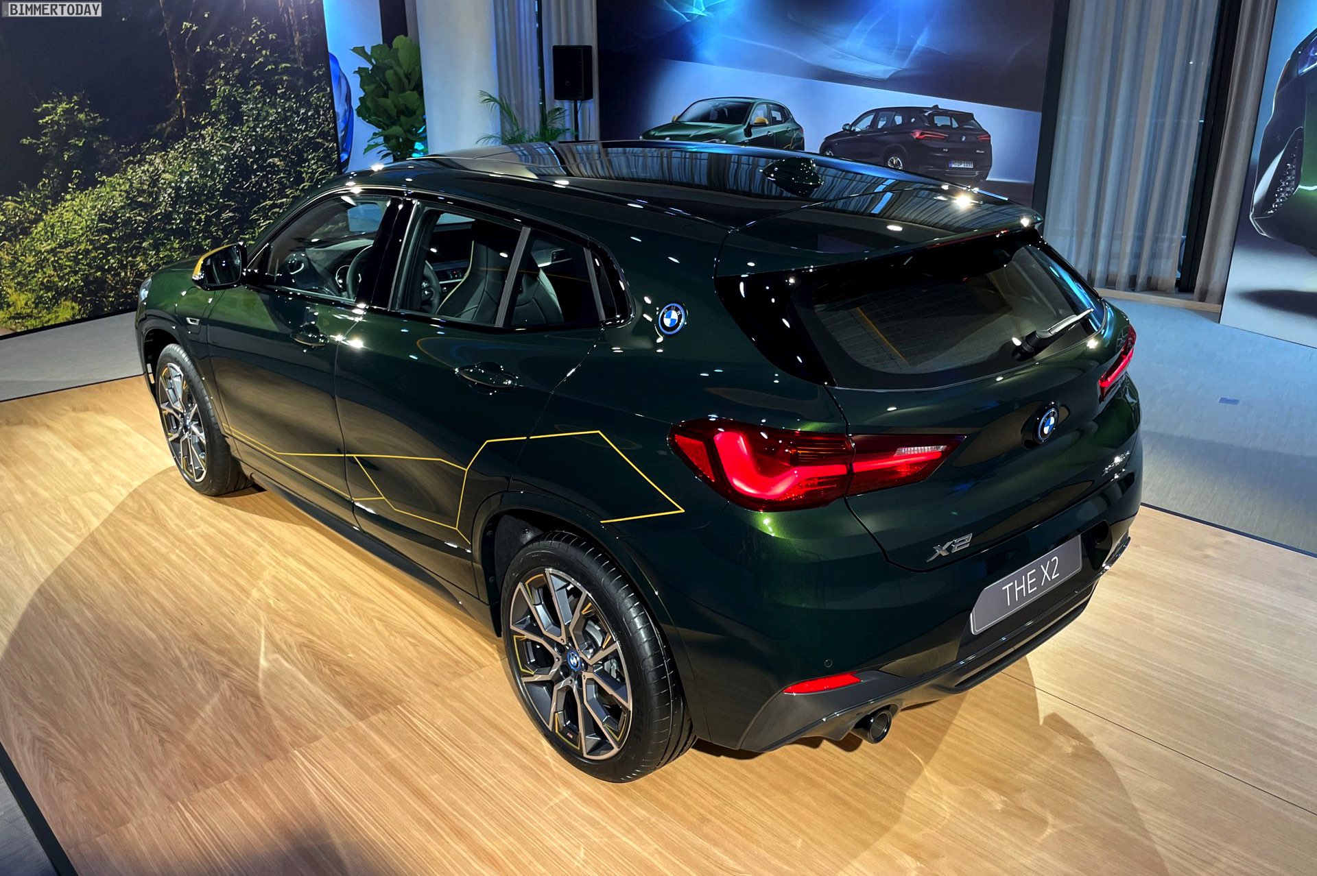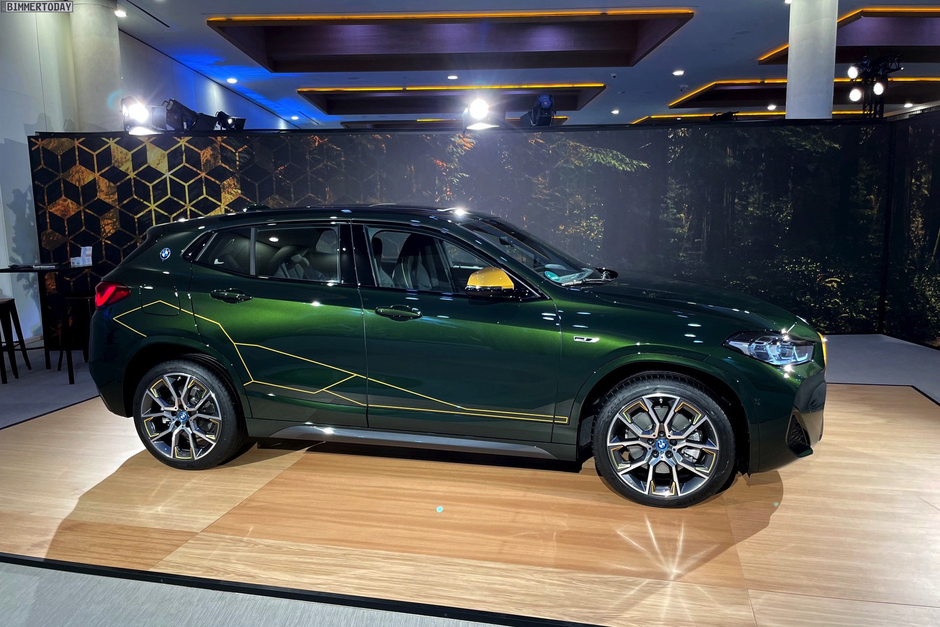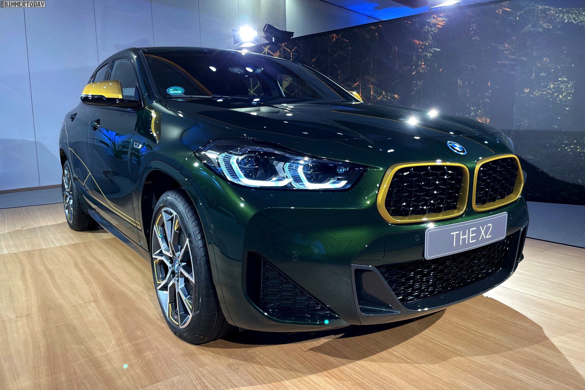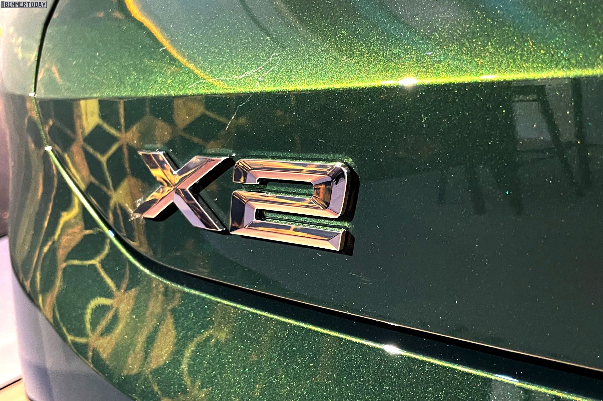 Wenige Tage nach der Vorstellung hatten wir Gelegenheit, die neue BMW X2 Goldplay Edition mit eigenen Augen zu sehen und dabei natürlich auch ein paar erste Fotos vom Sondermodell zu machen. Wie schon auf den ersten offiziellen Bildern sehen wir die Edition mit ihren goldenen Akzenten am Beispiel eines BMW X2 (F39) mit exklusiver Lackierung in Sanremo Grün Metallic. Das dunkle Grün wurde erst vor wenigen Monaten mit dem 4er Cabrio (G23) eingeführt und nun schrittweise für mehr und mehr Baureihen angeboten, darunter zuletzt auch das BMW 8er Facelift 2022.