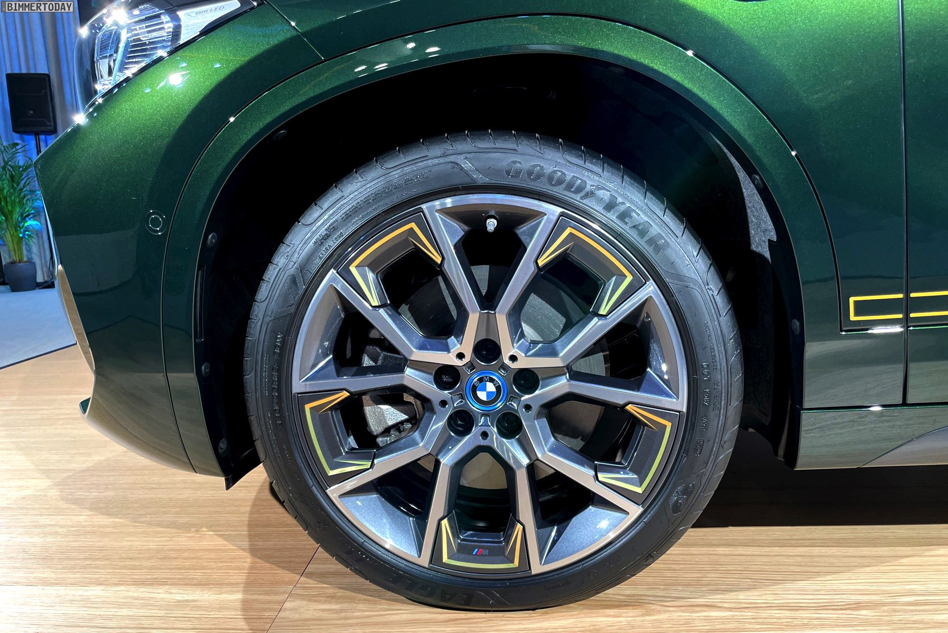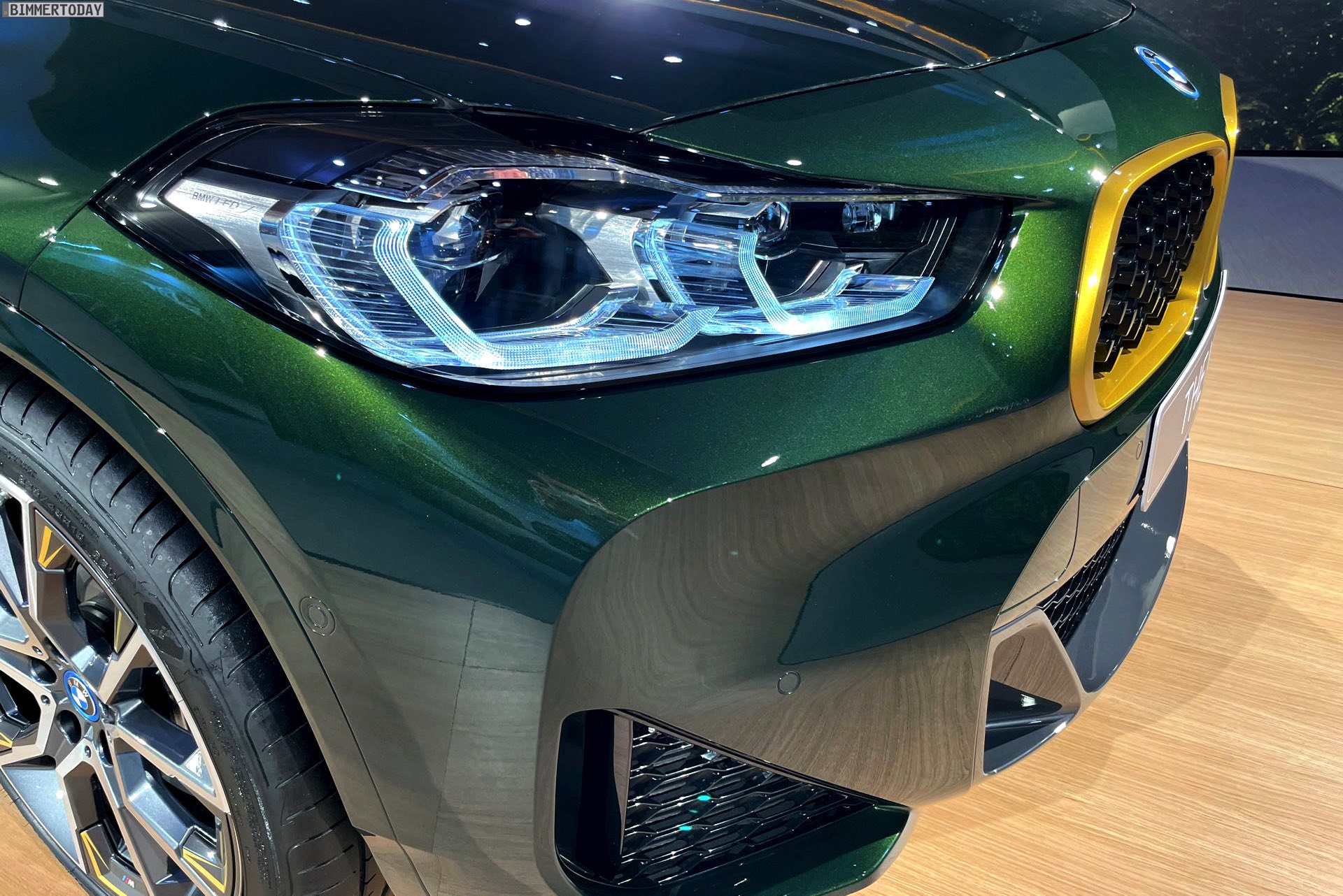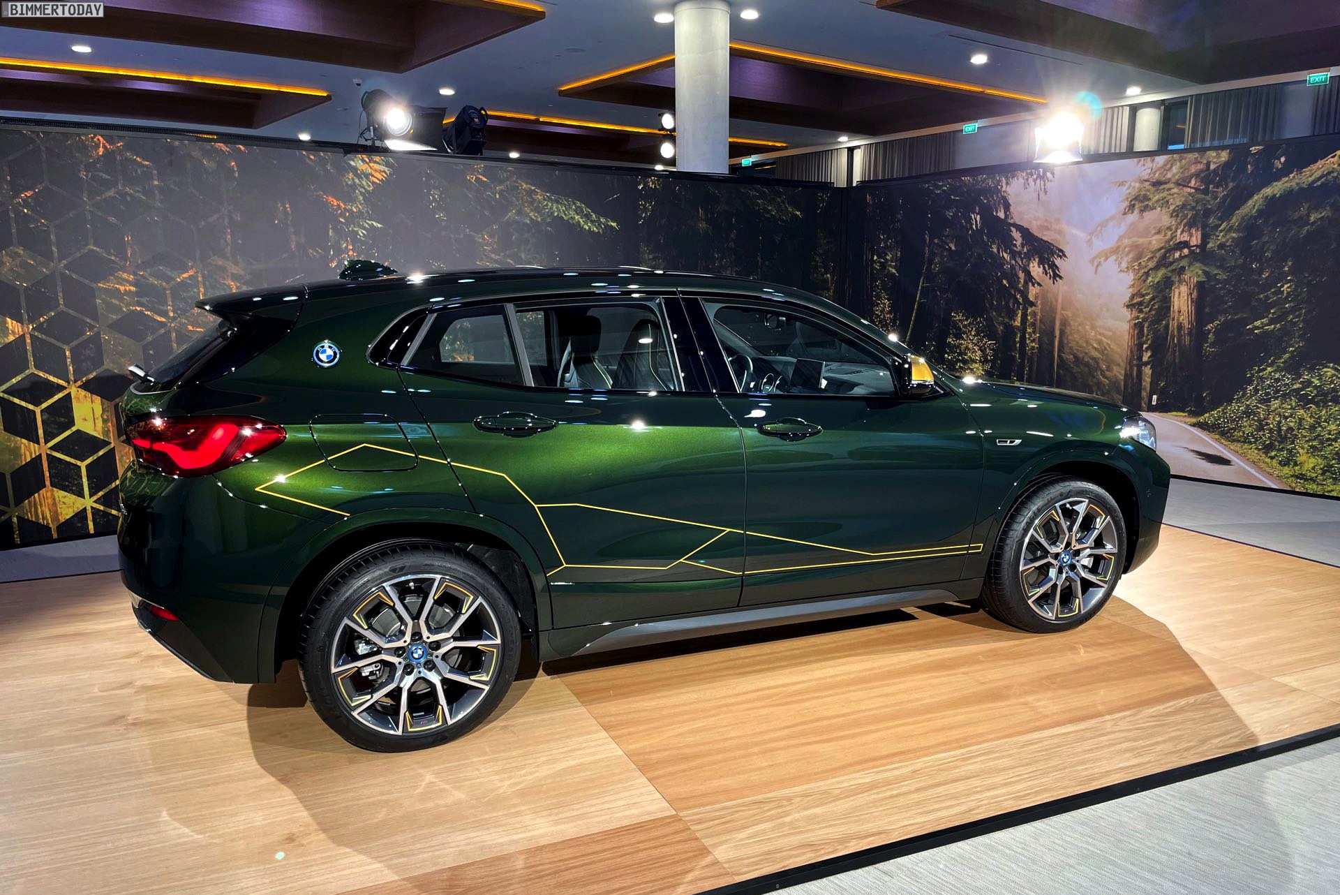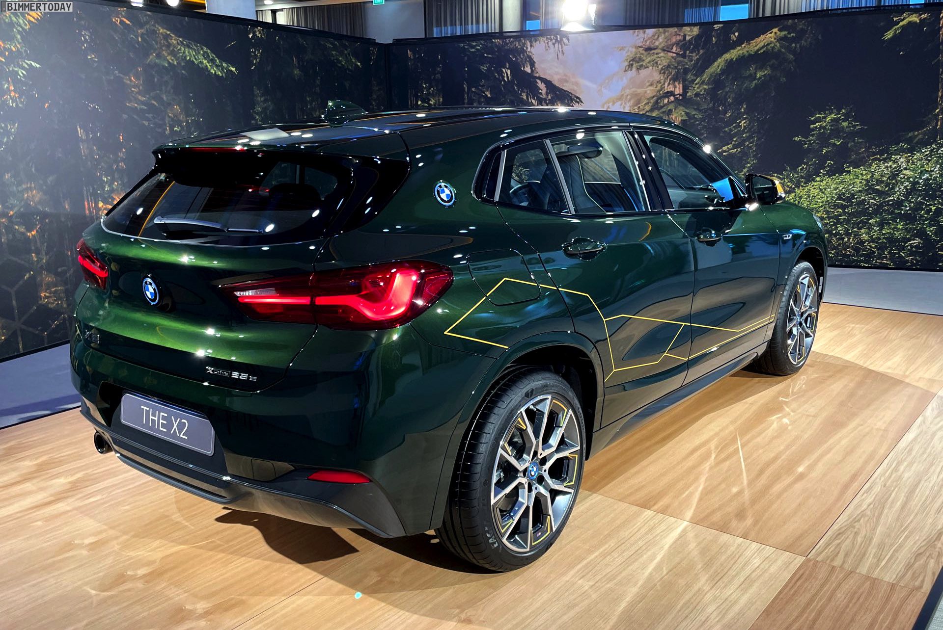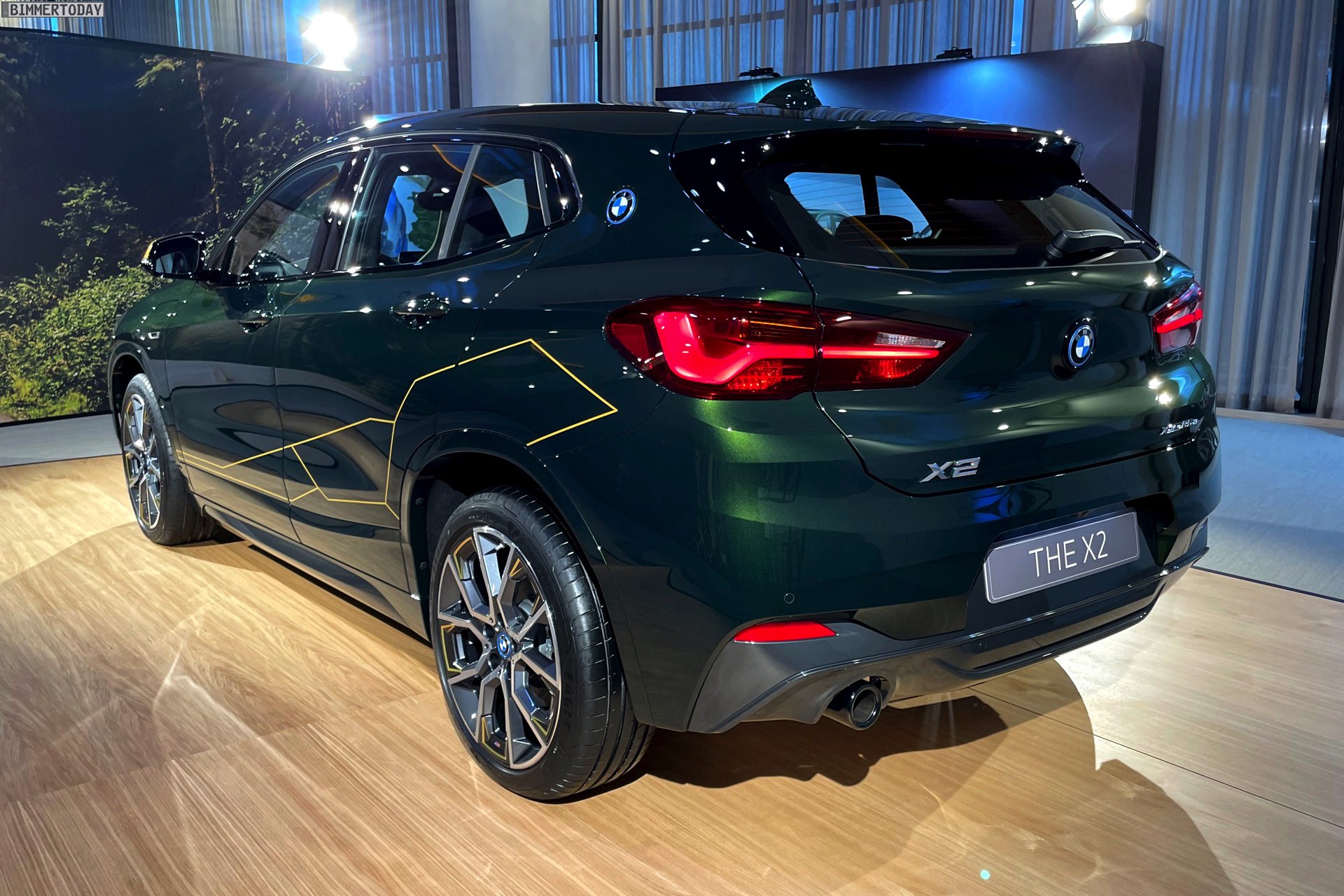 Wenige Tage nach der Vorstellung hatten wir Gelegenheit, die neue BMW X2 Goldplay Edition mit eigenen Augen zu sehen und dabei natürlich auch ein paar erste Fotos vom Sondermodell zu machen. Wie schon auf den ersten offiziellen Bildern sehen wir die Edition mit ihren goldenen Akzenten am Beispiel eines BMW X2 (F39) mit exklusiver Lackierung in Sanremo Grün Metallic. Das dunkle Grün wurde erst vor wenigen Monaten mit dem 4er Cabrio (G23) eingeführt und nun schrittweise für mehr und mehr Baureihen angeboten, darunter zuletzt auch das BMW 8er Facelift 2022.