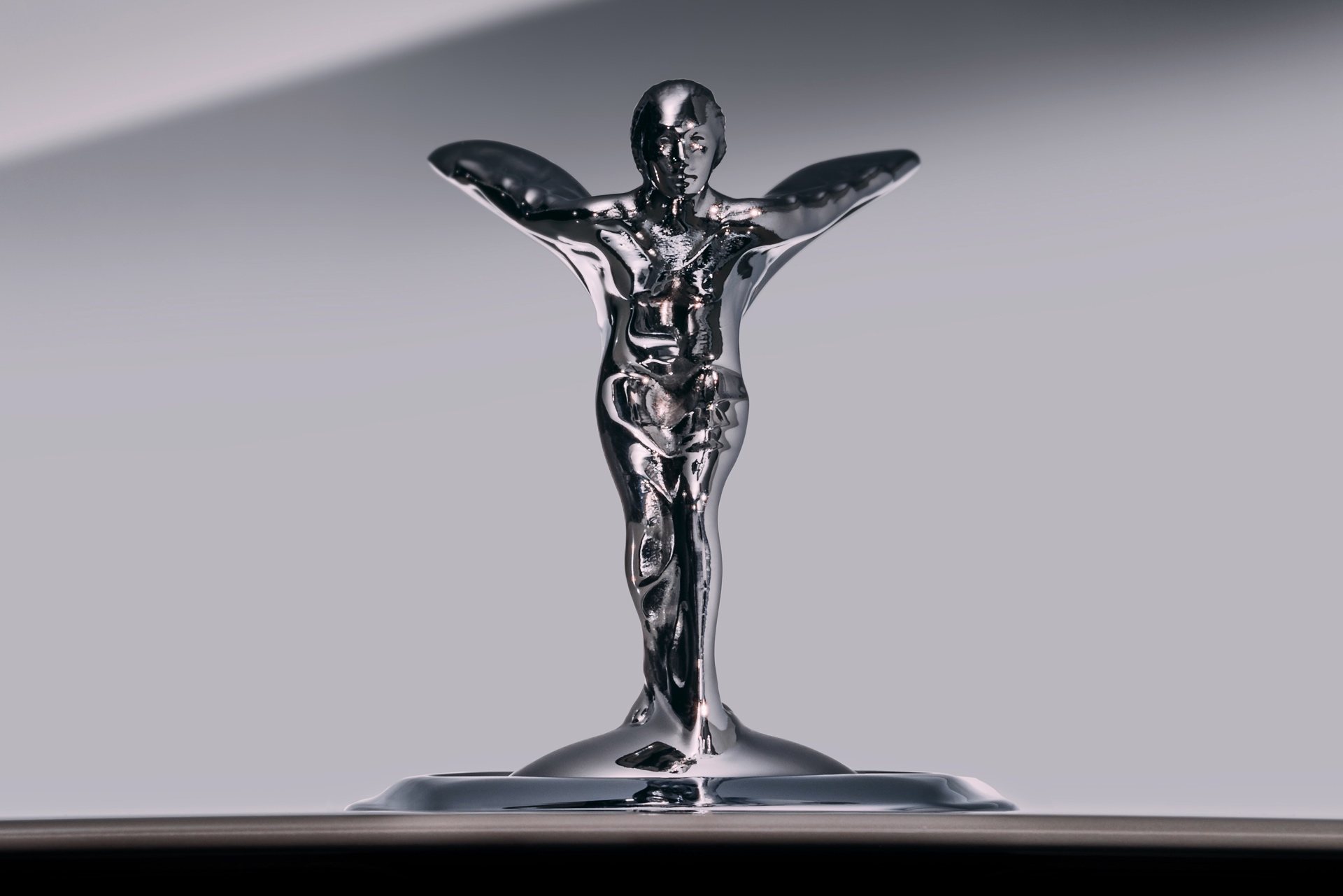 Besonders auffällig ist, dass die bisher durchgestreckten Beine nun angewinkelt sind, außerdem steht eines der beiden Beine etwas weiter vorne als das andere. So nimmt die Spirit of Ecstasy eine viel dynamischere Pose ein. Genau wie bisher wird jede Spirit of Ecstasy nach dem Gießen von Hand finalisiert, weshalb auch jedes Exemplar minimale Unterschiede aufweist.