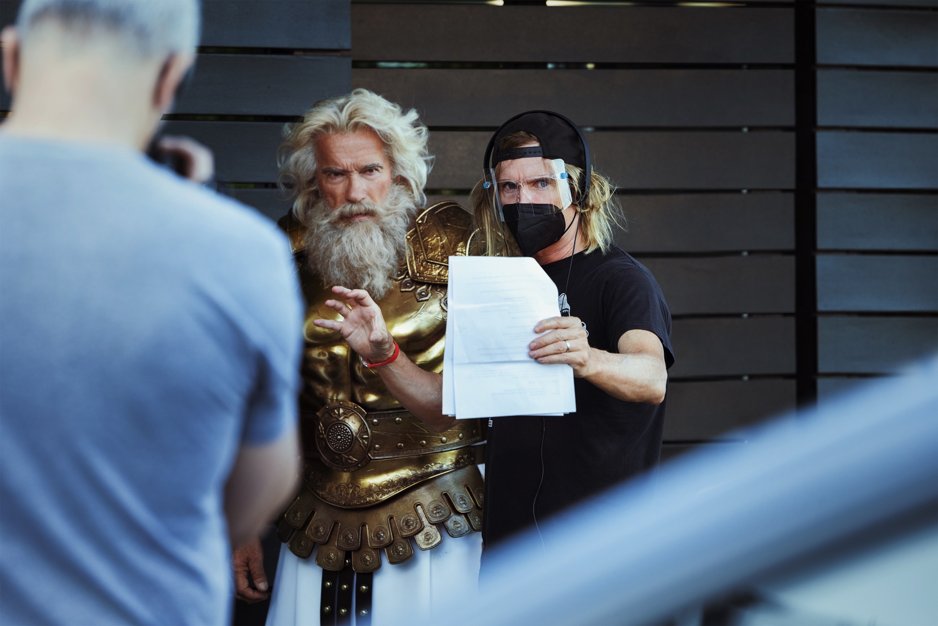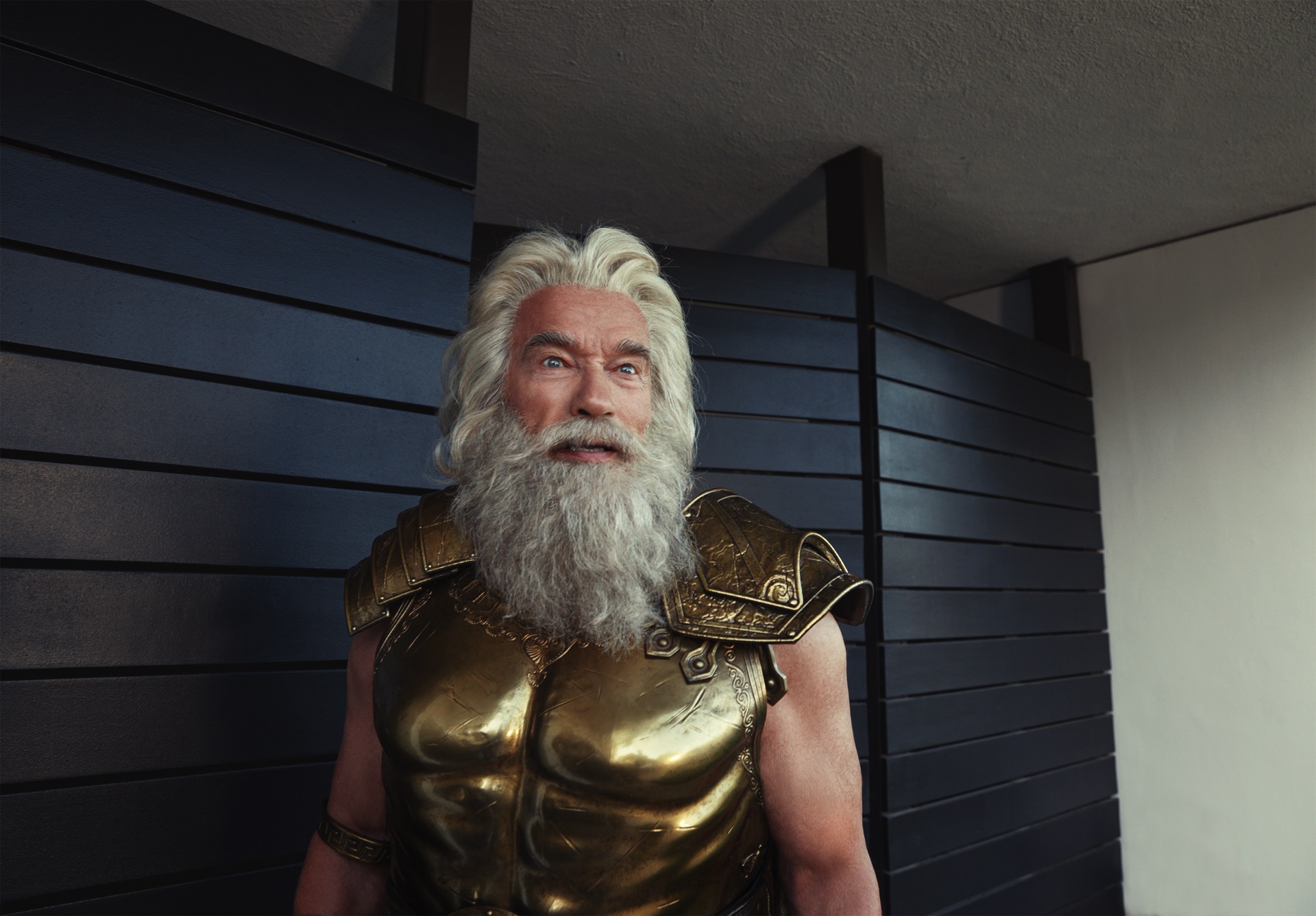 Arnold Schwarzenegger: „Der Humor liegt in diesem legendären Gott des Blitzes, der angeblich unzerstörbar ist und mit der alltäglichen Elektronik kämpft. Erst als ihm seine geniale Frau einen vollelektrischen BMW iX geschenkt hat, wird Zeus von der gewaltigen Kraft der Elektrizität getroffen und wieder vollkommen verjüngt.“