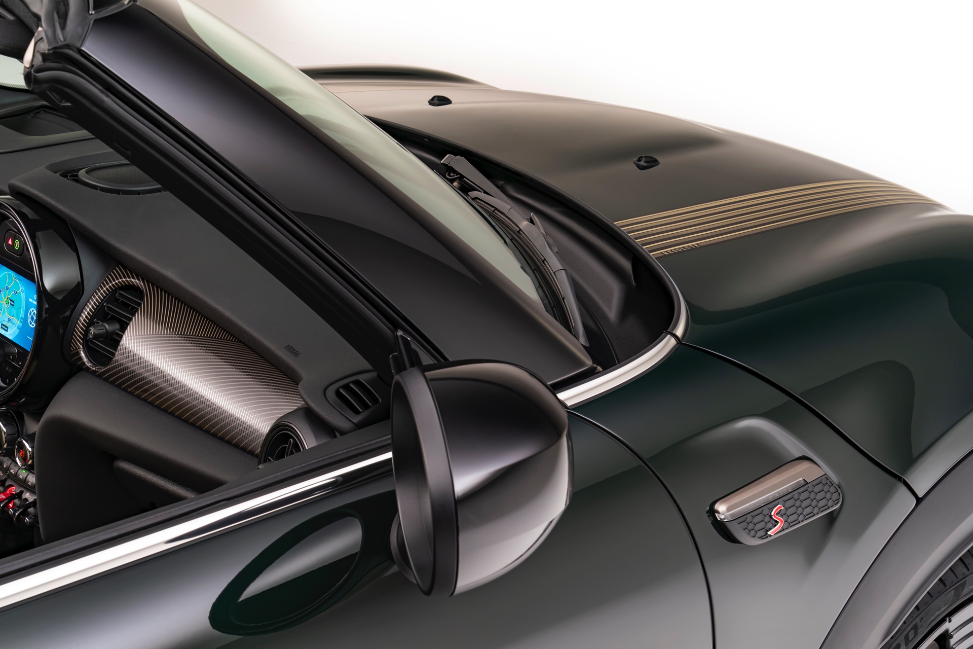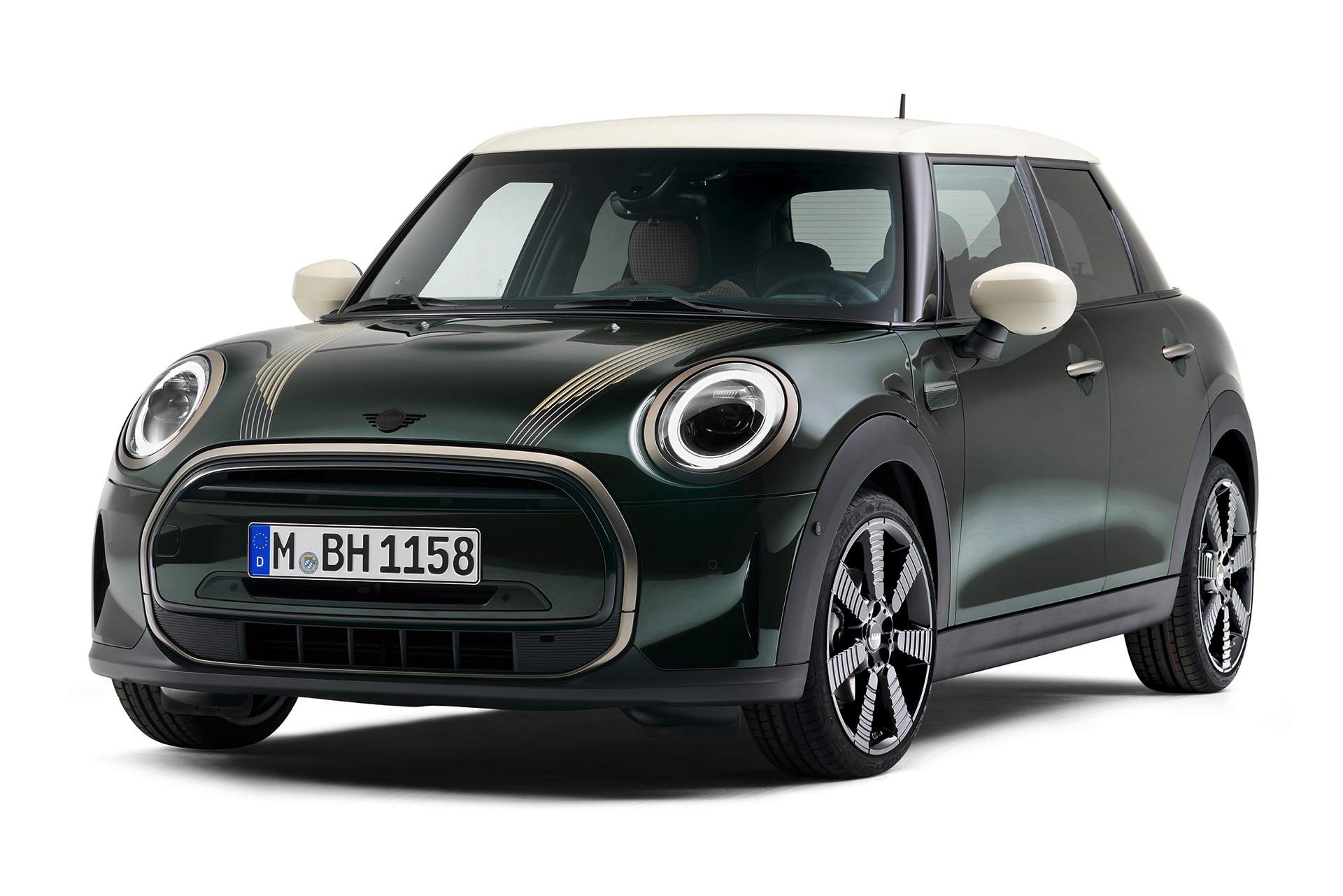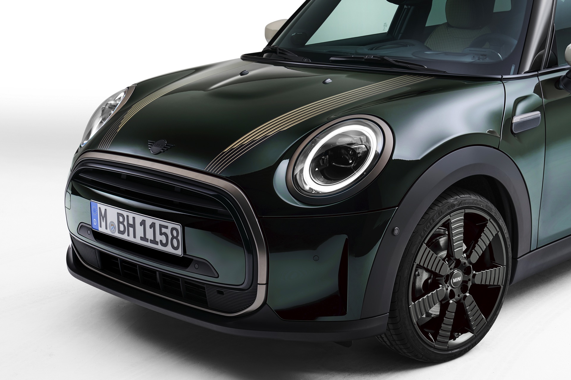 Einen anderen, aber ebenso eigenständigen Weg geht die Untold Edition für den MINI Clubman. Die auffällige Lackierung in Sage Green wird mit Akzenten im Farbton Refined Brass kombiniert, auch die 18 Zoll-Felgen im exklusiven Design Untold Spoke greifen die an veredeltes Messing erinnernde Farbe auf. Fünf parallele Motorhauben- und Dachstreifen sowie Side Scuttles mit exklusivem Streifenmuster betonen das Streben nach maximaler Individualität zusätzlich.