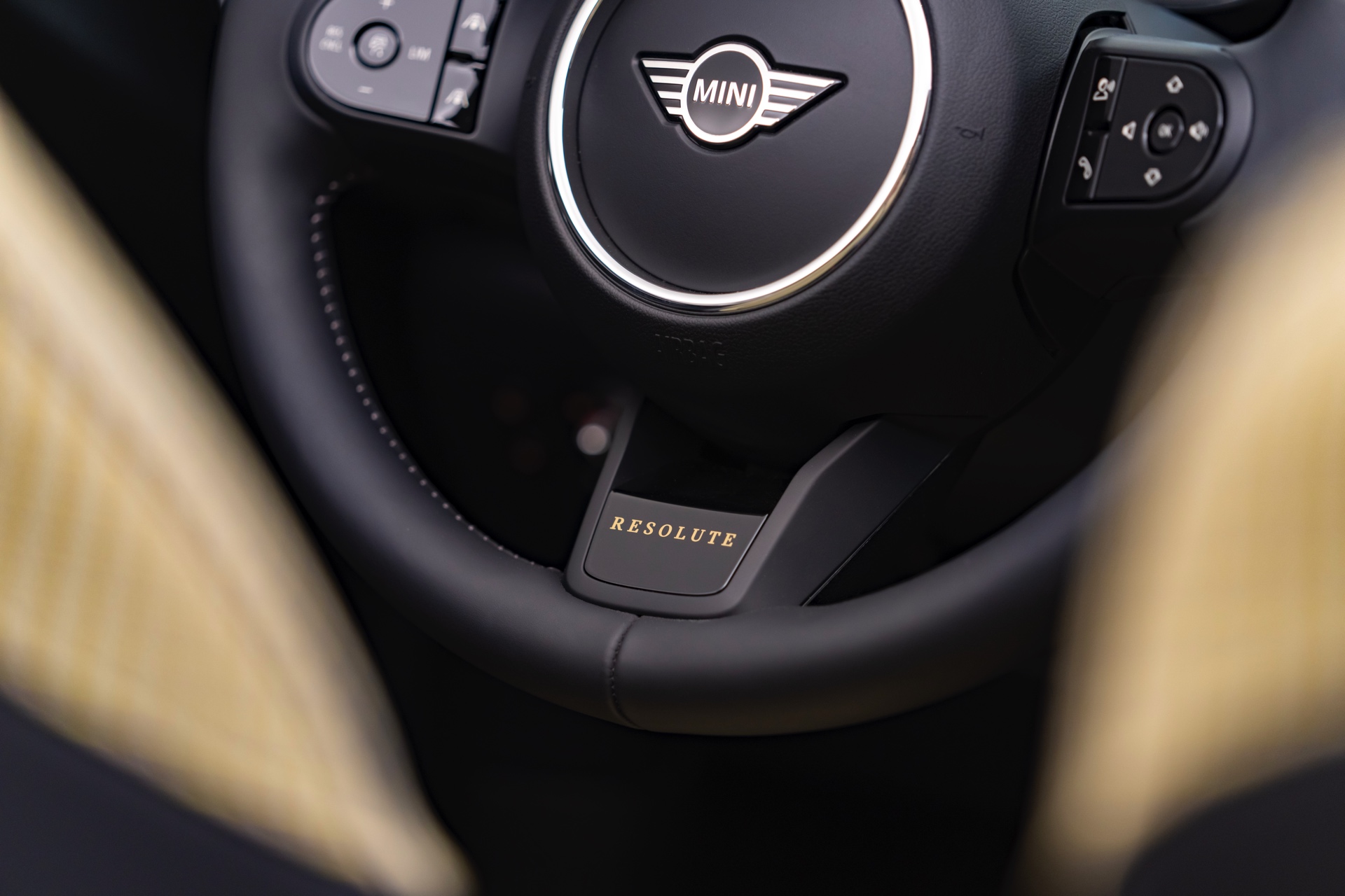 Allen drei Editionen gemeinsam ist der Fokus auf farbige Design-Akzente, die die Fahrzeuge noch hochwertiger wirken lassen. Der vollständige Verzicht auf Chrom-Elemente bei den Exterieur-Details nimmt dabei vorweg, was in Zukunft mit Blick auf die Nachhaltigkeit für alle neuen MINI-Modelle die Regel sein wird. Im Fall der Resolute Edition für das MINI Kleinwagen-Trio gibt es nicht nur Akzente in Resolute Bronze, sondern auch die bisher dem Topsportler John Cooper Works vorbehaltene Lackierung in Rebel Green. Markenlogos, Modellschriftzüge, Endrohre und einige weitere Details sind in Piano Black gehalten. Exklusive Leichtmetallräder und asymmetrisch gestaltete Motorhauben-Streifen aus feinen Einzellinien runden den exklusiven Look ab. Fortgesetzt wird der spezielle Stil mit passenden Interieur-Leisten und Sitzmustern: