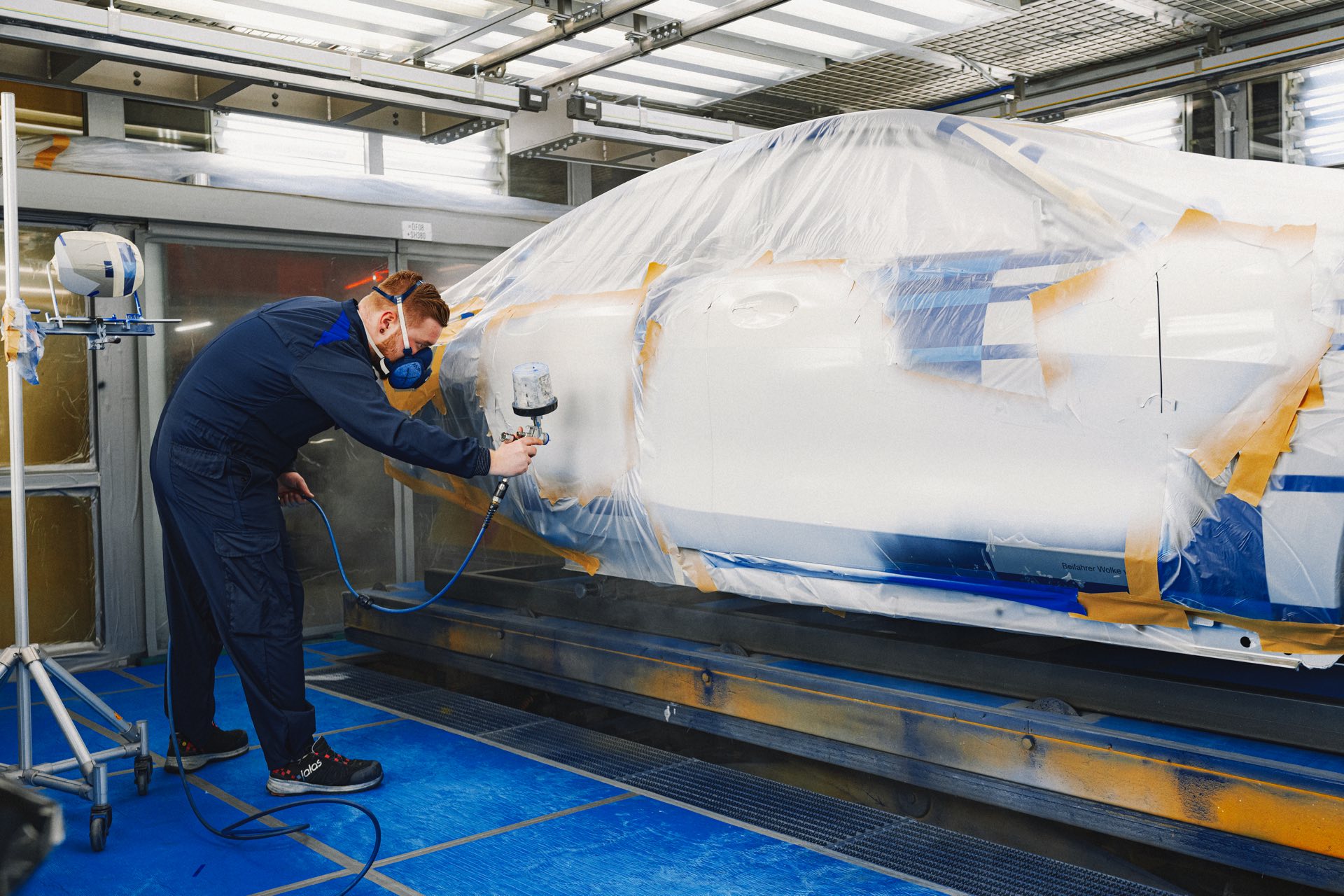 Wie komplex und aufwendig der Lackierprozess ist, zeigen die folgenden Fotos: