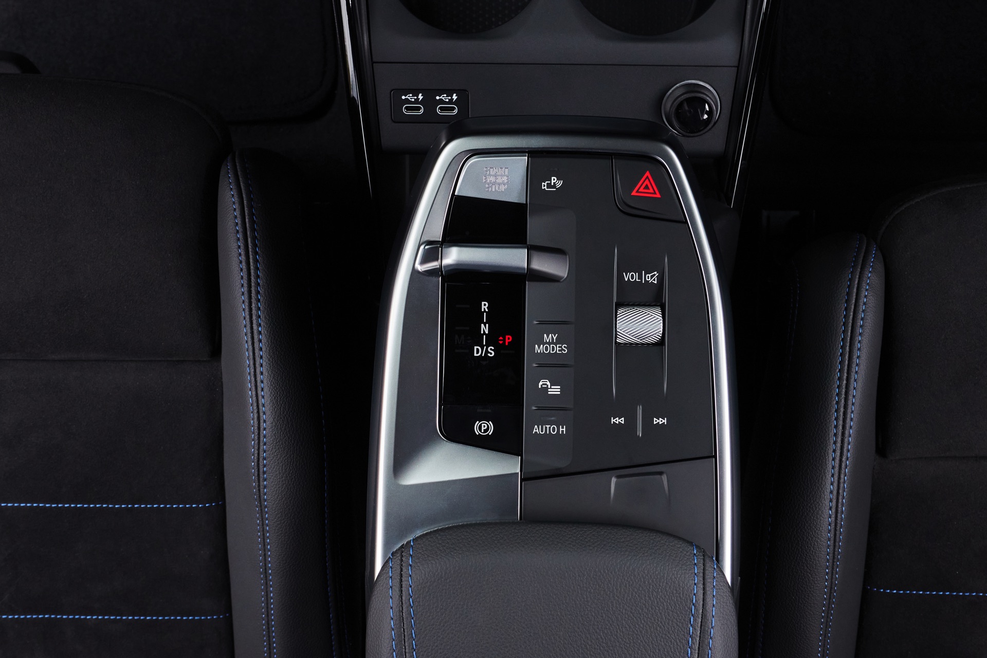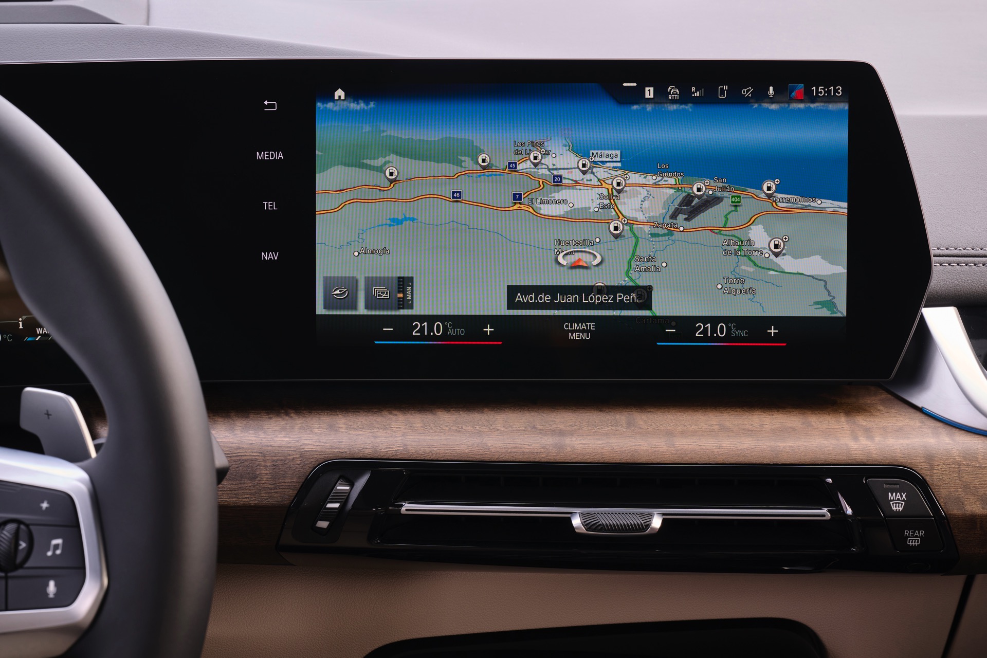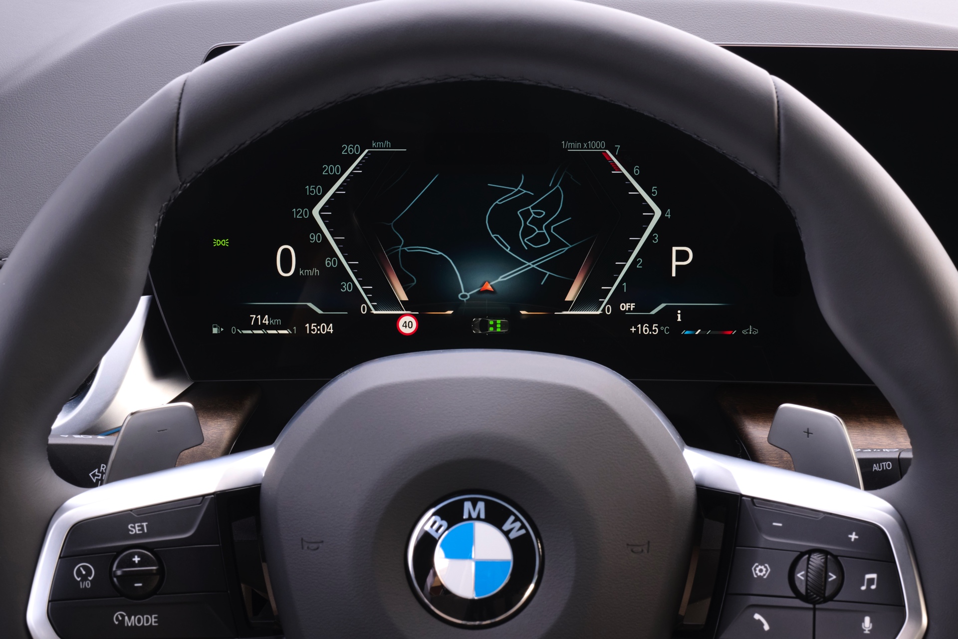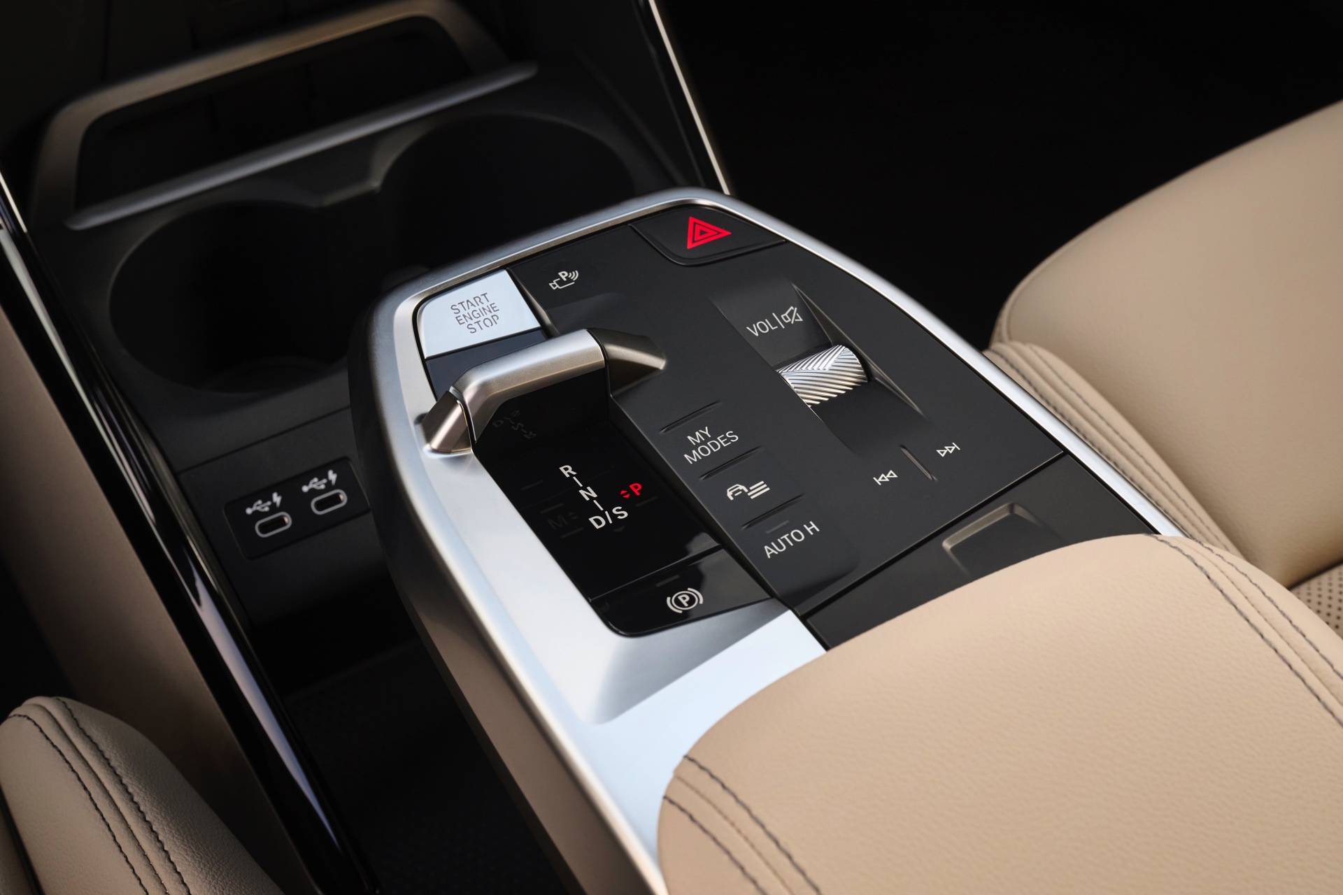 Auf der Suche nach vertrauten Möglichkeiten zur Anpassung der Einstellungen im Infotainment-System greift die rechte Hand gleich mehrfach ins Leere, denn vor der Armauflage befindet sich eine stark reduzierte Bedieneinheit. Die Frage, ob man den iDrive-Controller auf der ersten Fahrt vermisst, lässt sich nur mit einem klaren Ja beantworten – wichtiger ist aus Kundensicht aber, wie schnell man sich an die neue Bedienlogik gewöhnen kann und ob man ihn auch nach ein paar Tagen Eingewöhnung noch so schmerzlich vermisst wie zu Beginn. Auf unserer Fahrt gab es jedenfalls mehrere Situationen, in denen der vertraute Griff zum Controller im Nichts landete, bevor beispielsweise der vom automatischen Zoom veränderte Zoom-Level der Navigations-Karte mit einer Zweifinger-Geste auf dem Touchscreen während der Fahrt ungewohnt viel Aufmerksamkeit in Anspruch nahm.