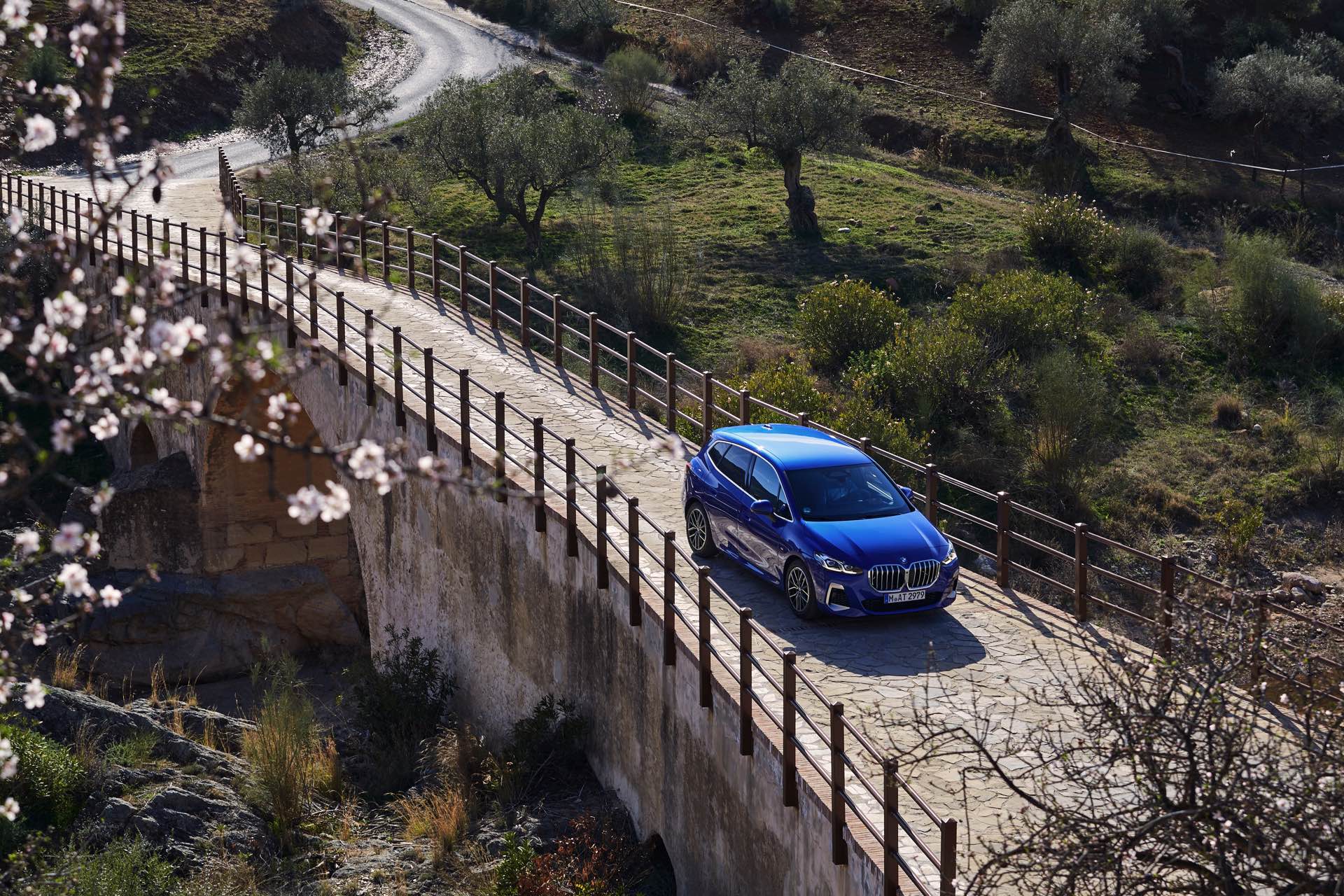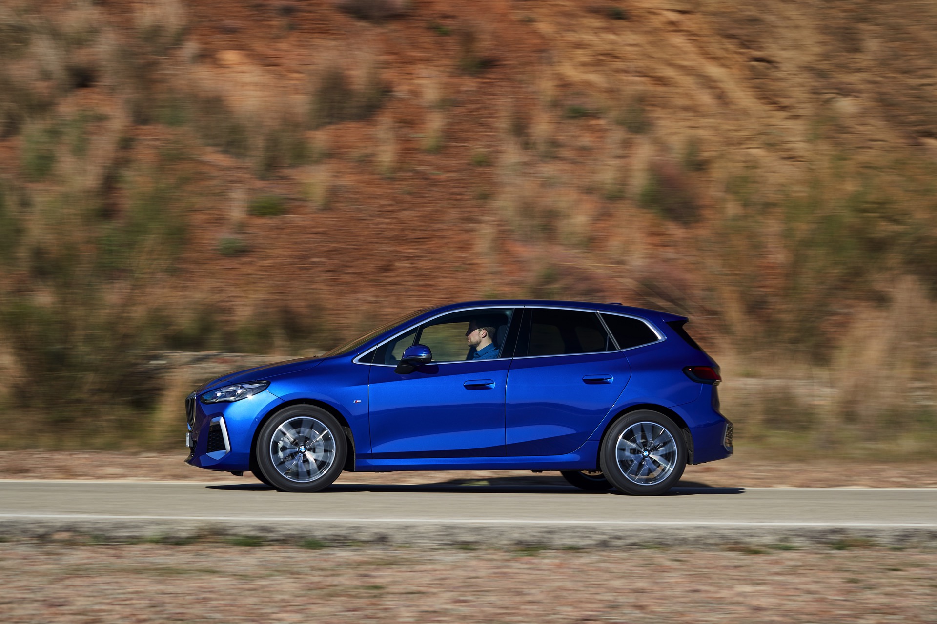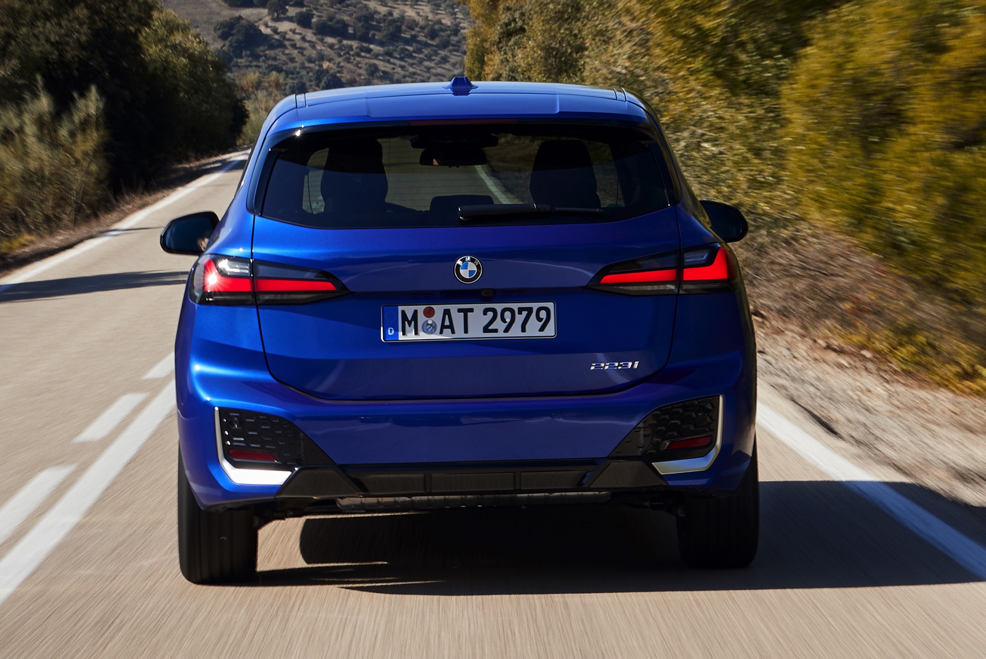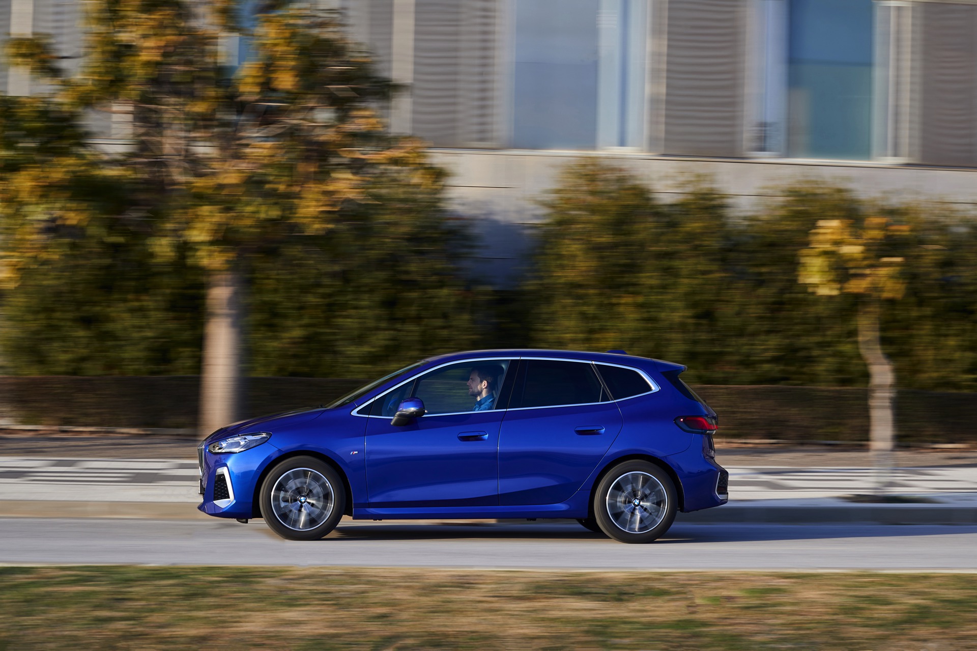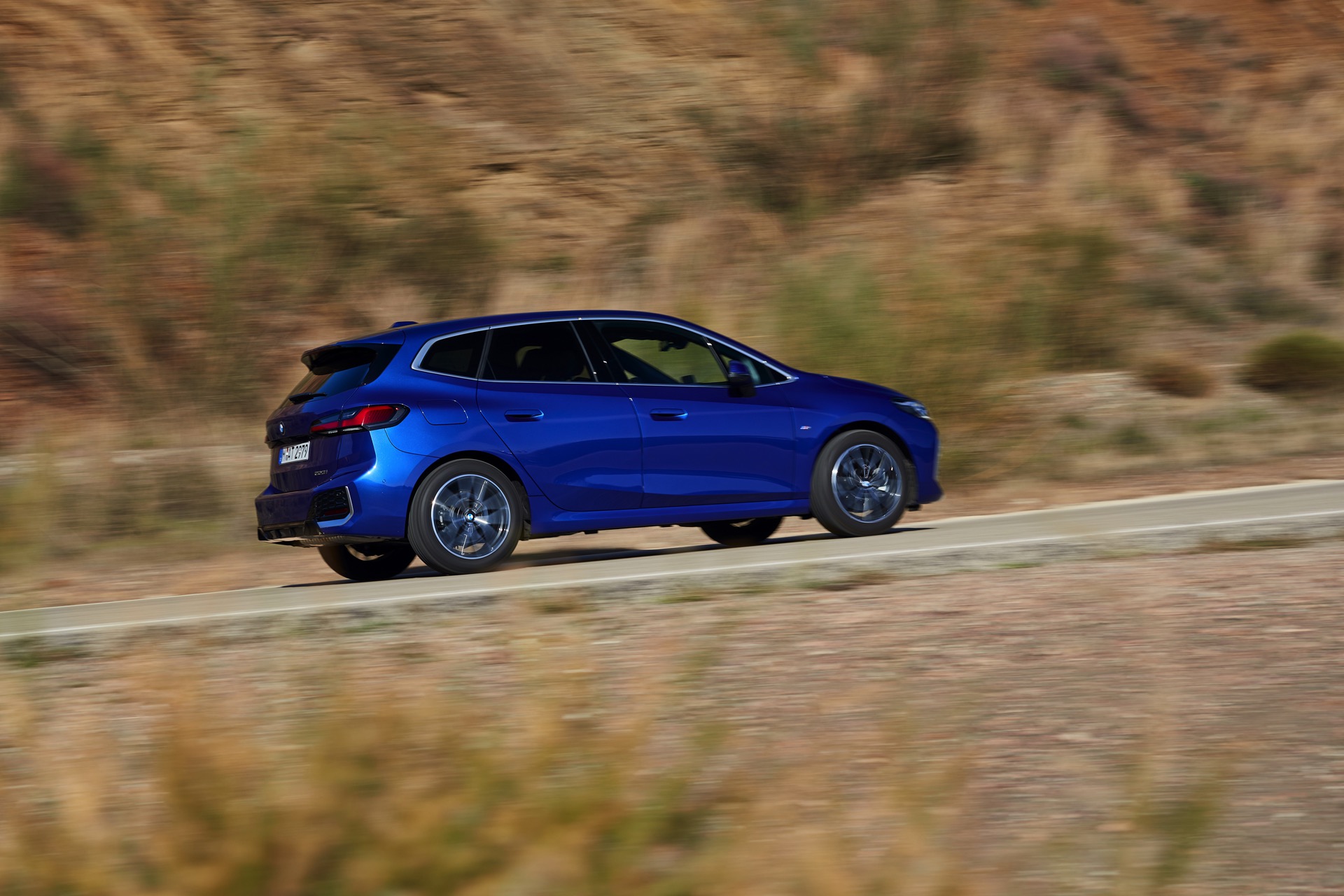 Da der Antrieb des BMW 223i insgesamt kraftvoll und agil ist, gibt es bei Vollgas dennoch immer genügend Leistung – und im Sport-Modus sogar ein Maß an Fahrspaß, das im Kontext der Fahrzeugklasse nicht zu erwarten war. Dank der im Vergleich zum Vorgänger vorne wie hinten um rund 2,5 Zentimeter vergrößerten Spurweite und den 15 Millimetern Tieferlegung des M-Fahrwerks ist der Active Tourer erstaunlich zackig unterwegs, lenkt willig ein und ist nicht nur überraschend neutral abgestimmt, bei forscher Gangart und schnellen Lenkmanövern unterstützt sogar das Heck den handlichen Fahreindruck.