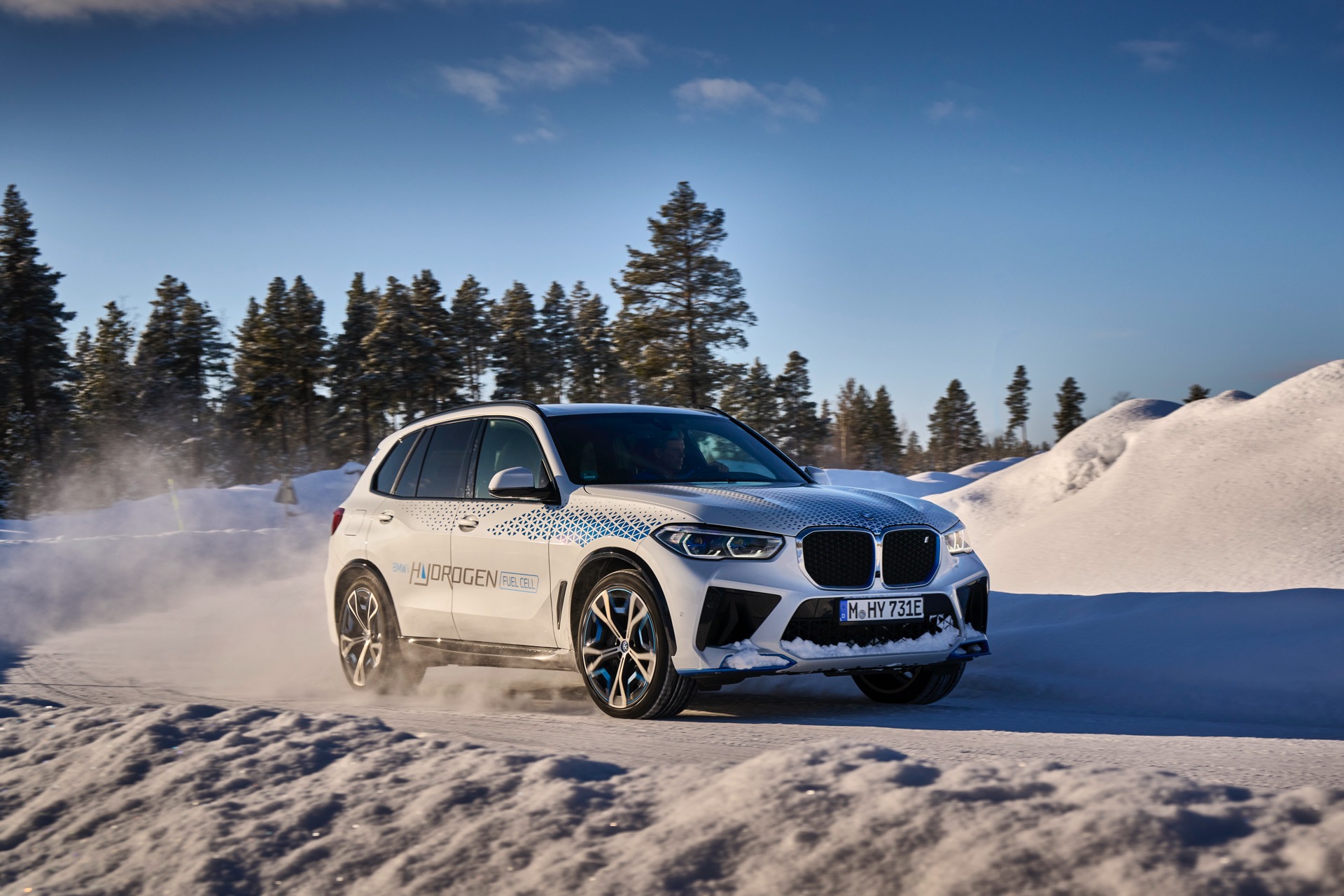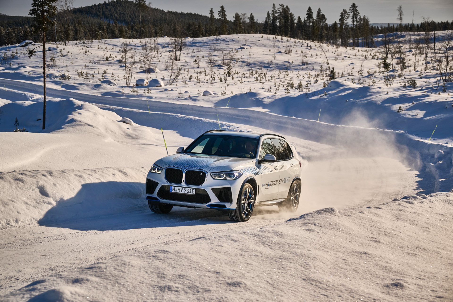 Noch in diesem Jahr wird der BMW iX5 mit Wasserstoff-Brennstoffzelle in Kleinserie auf den Markt kommen. Dass der Wasserstoff-X5 dann auch im tiefsten Winter sicher betrieben werden kann, hat er nun bei Kältetests in Skandinavien unter Beweis gestellt. Als Basis diente dabei wie üblich das BMW Testzentrum Arjeplog, das bei Temperaturen von unter Minus 20 Grad Celsius optimale Bedingungen für die Winter-Erprobung bietet. Der Fokus der Tests lag dabei natürlich auf den Komponenten des Wasserstoff-Brennstoffzellen-Antriebs, alle anderen Übernahmen vom regulären X5 haben entsprechende Tests schließlich schon vor Jahren gemeistert.