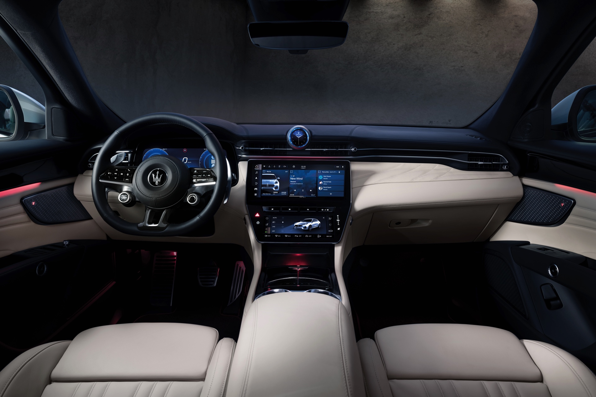 Alle Maserati Grecale kommen mit einem von drei Displays dominierten Innenraum, wobei das Tacho-Display hinter dem Lenkrad von zwei übereinander angeordneten Bildschirmen in der Mitte des Cockpits flankiert wird. Das obere Touch-Display verfügt über 12,3 Zoll Bildschirm-Diagonale, darunter befindet sich ein 8,8-Zoll-Display zur Bedienung weiterer Funktionen. Klassische Knöpfe und Schalter finden sich praktisch nur noch am Lenkrad. Fünf verschiedene Fahrmodi und moderne Assistenzsysteme sorgen dafür, dass der Fahrer den Grad der Unterstützung durch das Fahrzeug exakt an seine Wünsche anpassen kann. Wie gut sich das Gesamtpaket gegen die aktuellen Premium-SUV deutscher Hersteller schlägt, werden erste Vergleichstests in ein paar Monaten zeigen.