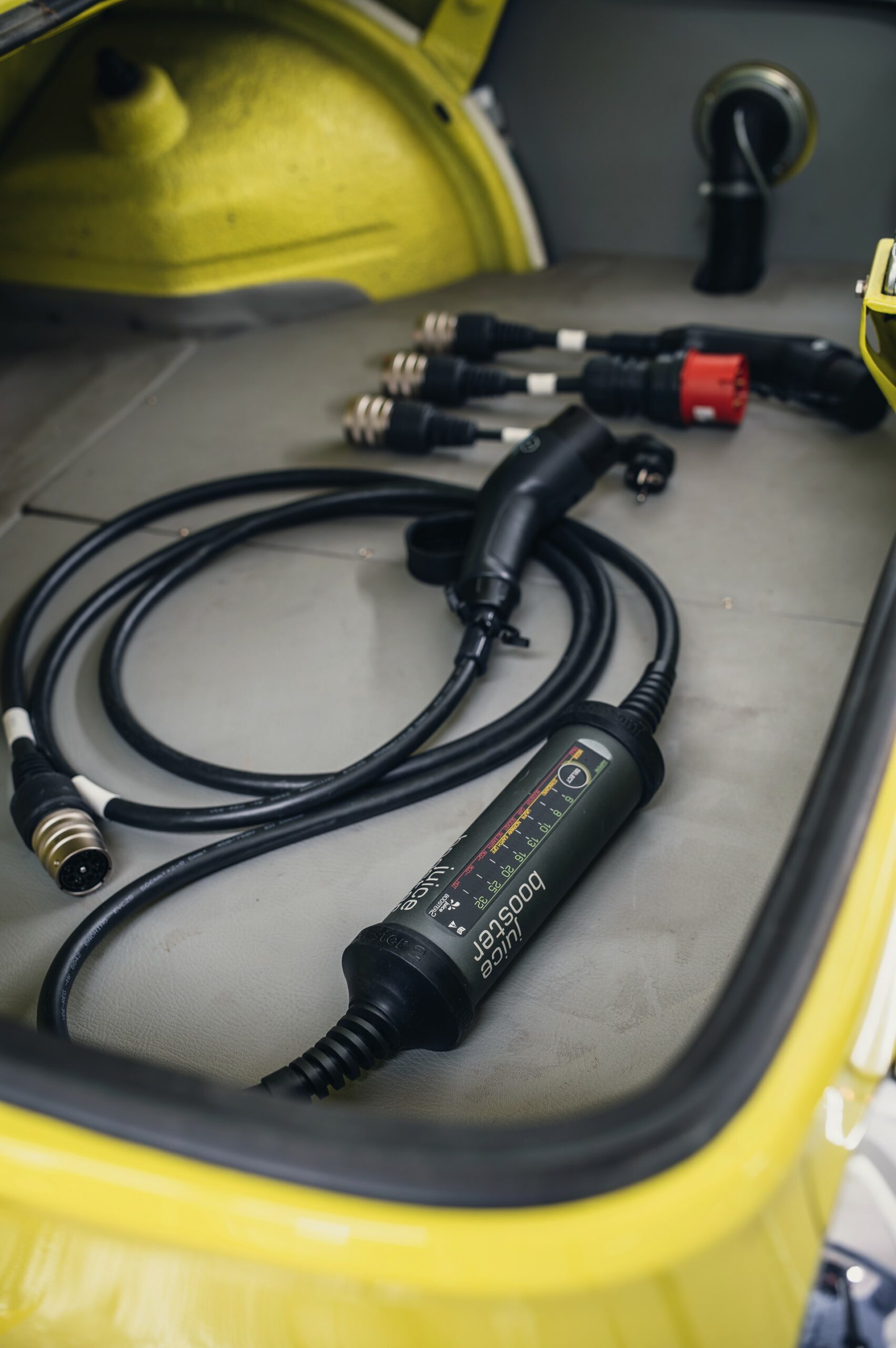Mit dem 33 kWh großen Akku wird der Elektro-02 zwar nicht zum Langstrecken-Meister, aber das spielt für die meisten Oldtimer-Fahrer ohnehin keine Rolle. Rund 240 Kilometer Reichweite sind drin, wenn genügend Abstand zur Höchstgeschwindigkeit von 200 km/h gehalten wird. Wer doch einmal längere Strecken fahren will, kann den Akku mit bis zu 50 kW pro Stunde aufladen und die Reichweite so auch relativ schnell wieder in die Höhe treiben.