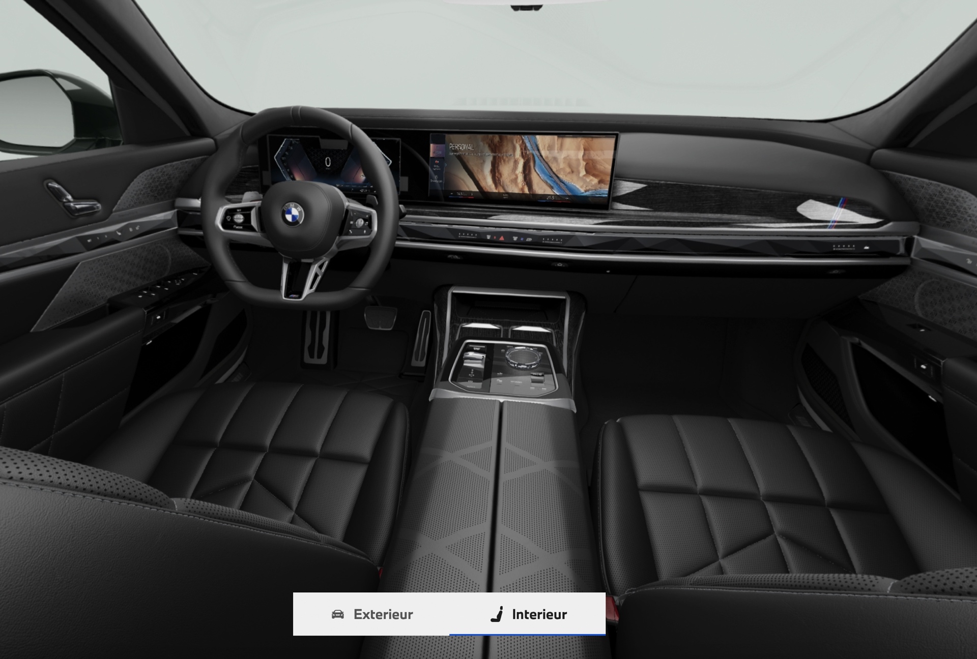 Abgerundet wird der Visualizer mit einem Blick in den Innenraum, wobei bei den verfügbaren Ansichten klar die erste Reihe im Fokus steht. Durch die Wahl unterschiedlicher Polster und Interieurleisten kann das Design mit großem Curved-Display verschiedene Wirkungen entfalten, obwohl die je nach Fahrmodus und getroffenen Einstellungen unterschiedlich durchleuchtete Interaction Bar im aktuellen Visualizer immer dunkel bleibt.