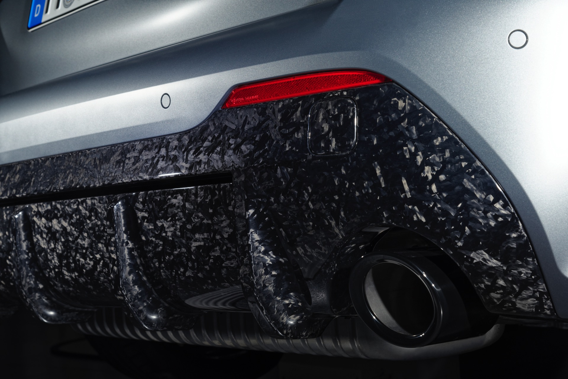 Bei Forged Carbon kommen statt langer Fasern, die sich im Regelfall über die gesamte Länge eines Bauteils erstrecken, sehr viel kürzere Faser-Stückchen zum Einsatz. Die kurzen Fasern werden ebenfalls mit einem Harz getränkt und können dann in jede beliebige Form gepresst werden. Am hier gezeigten BMW 1er (F40) mit M Sport-Paket sind es die Außenspiegel-Kappen und der Diffusor-Einsatz an der Heckschürze, die den charakteristischen Forged Carbon-Look tragen und so zum besonderen Auftritt des Kompaktsportlers beitragen.