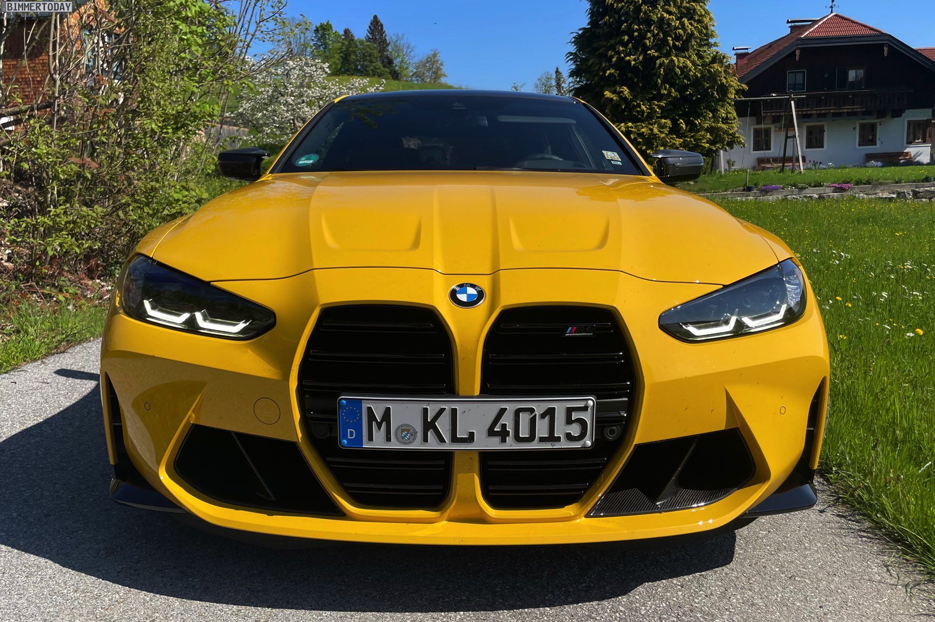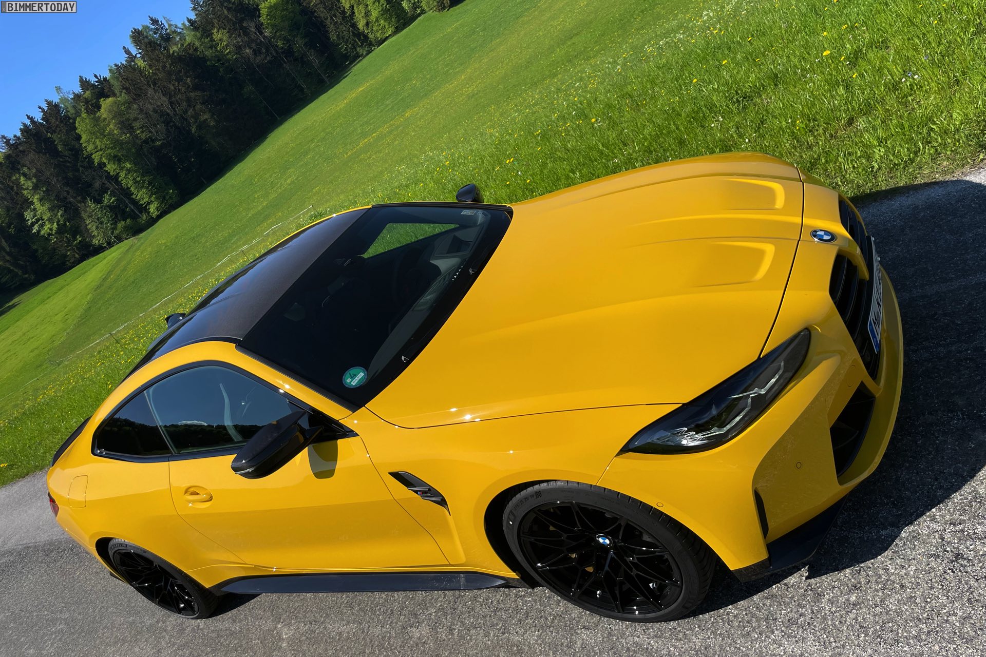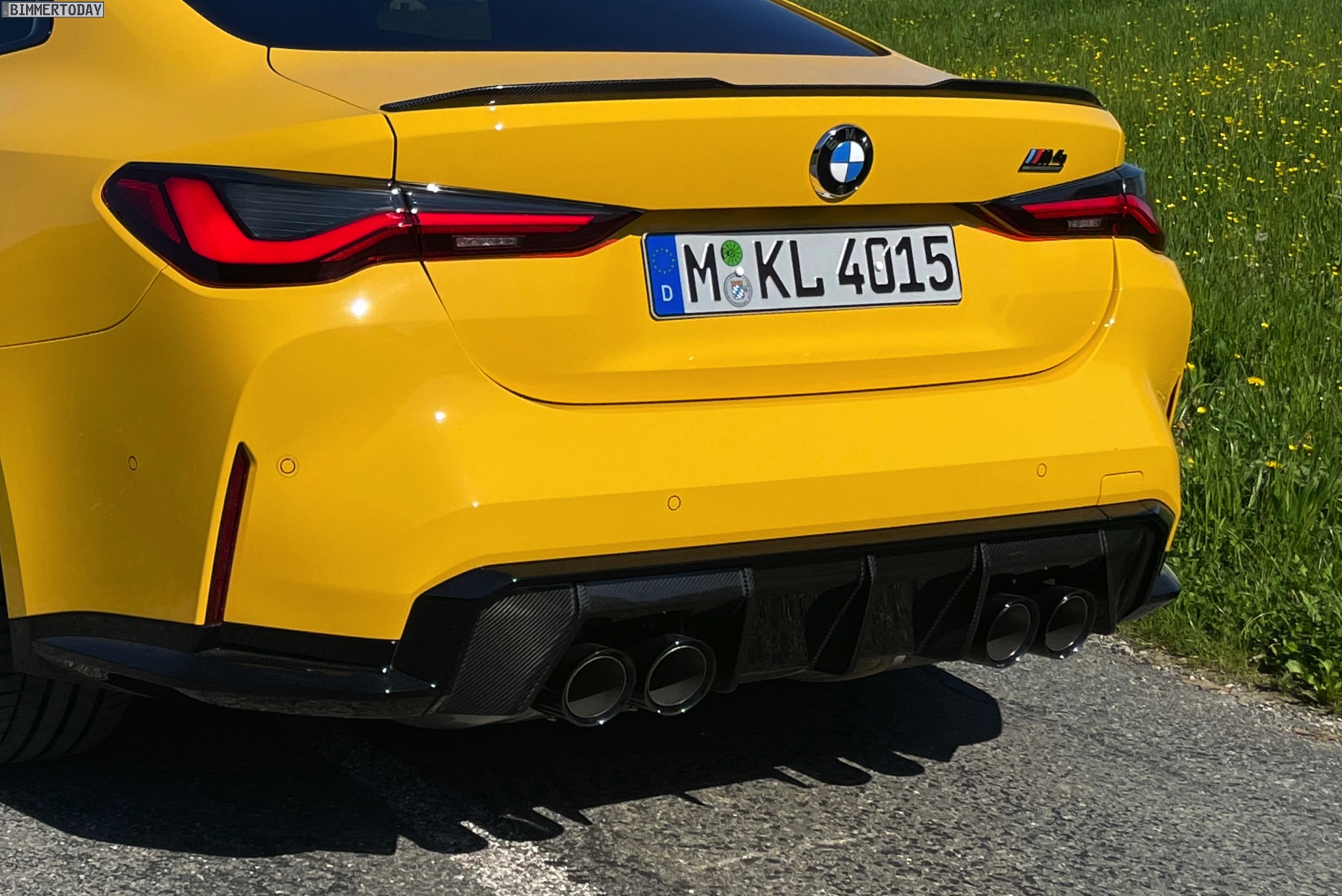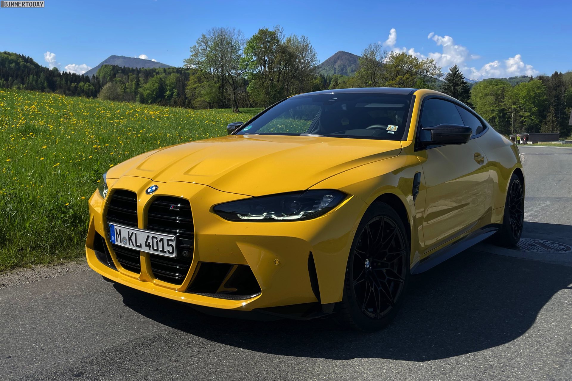 Es gibt nur wenige Lackierungen, die selbst einem ausgesprochen präsenten Fahrzeug wie dem BMW M4 Competition (G82) zu noch mehr Präsenz verhelfen können. Die ursprünglich von Porsche populär gemachte Farbe Speed Gelb, die seit einiger Zeit auch fester Bestandteil des BMW Individual-Programms ist, zählt aber ganz offensichtlich dazu: Wie unsere Fotos zeigen, steht dem Mittelklasse-Coupé aus Garching das traditionell dem Spitzenreiter vorbehaltene Gelbe Trikot ganz ausgezeichnet. In Verbindung mit den dunklen Umfängen der serienmäßigen Shadow Line des Competition-Modells, dem ebenfalls serienmäßigen Carbon-Dach und dem optionalen Carbon-Paket Exterieur ergibt sich ein Auftritt, der aus praktisch jeder Ansammlung von Fahrzeugen noch herausragt.