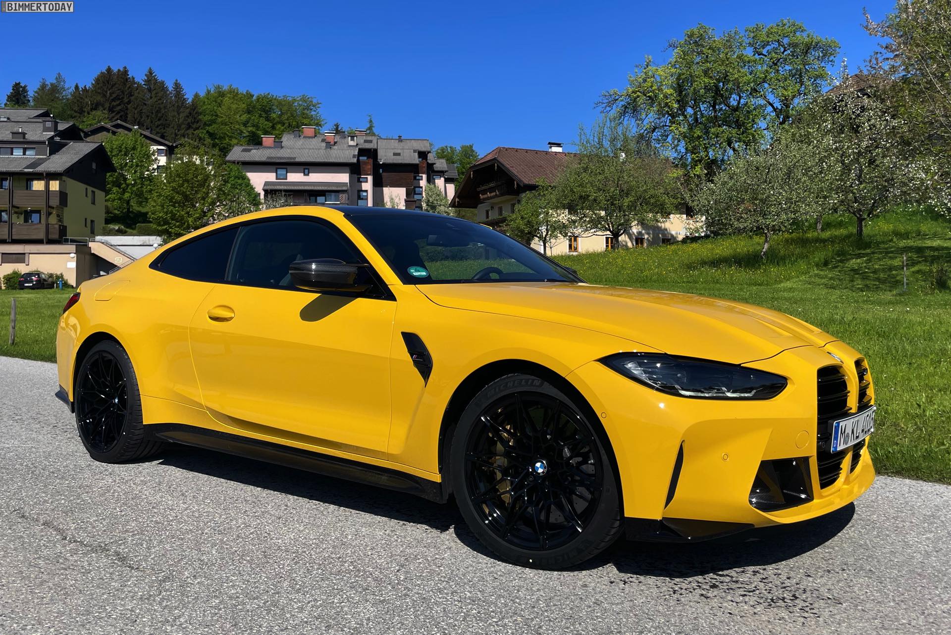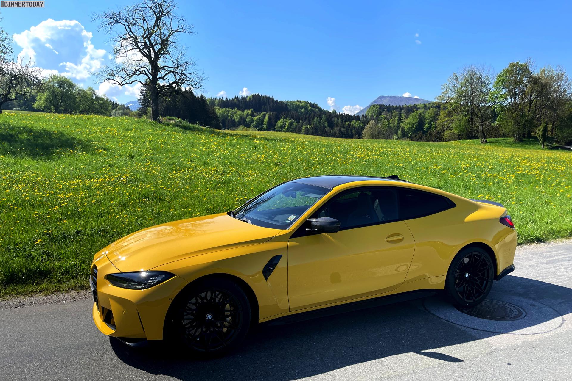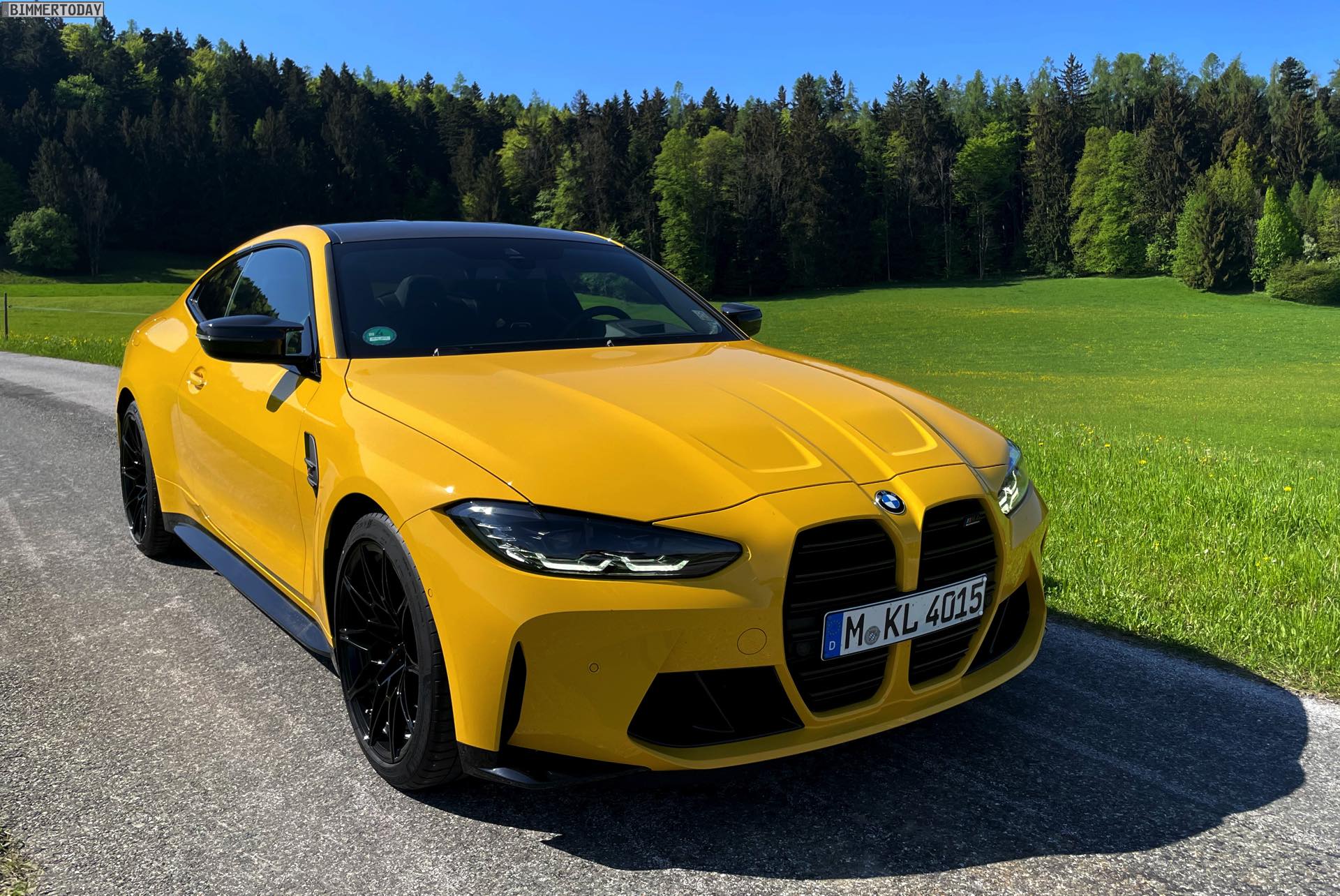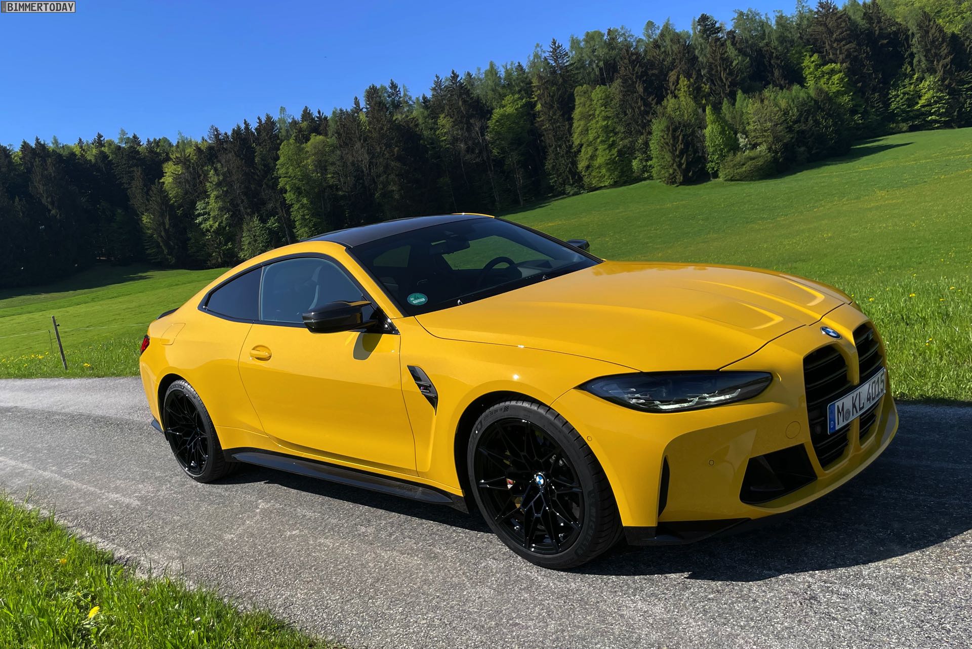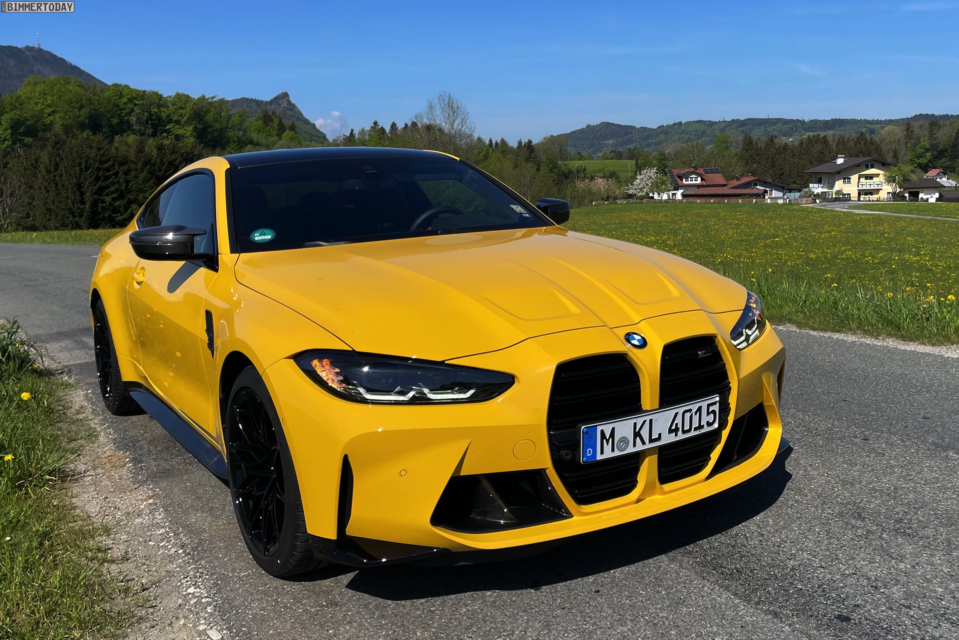 Es gibt nur wenige Lackierungen, die selbst einem ausgesprochen präsenten Fahrzeug wie dem BMW M4 Competition (G82) zu noch mehr Präsenz verhelfen können. Die ursprünglich von Porsche populär gemachte Farbe Speed Gelb, die seit einiger Zeit auch fester Bestandteil des BMW Individual-Programms ist, zählt aber ganz offensichtlich dazu: Wie unsere Fotos zeigen, steht dem Mittelklasse-Coupé aus Garching das traditionell dem Spitzenreiter vorbehaltene Gelbe Trikot ganz ausgezeichnet. In Verbindung mit den dunklen Umfängen der serienmäßigen Shadow Line des Competition-Modells, dem ebenfalls serienmäßigen Carbon-Dach und dem optionalen Carbon-Paket Exterieur ergibt sich ein Auftritt, der aus praktisch jeder Ansammlung von Fahrzeugen noch herausragt.