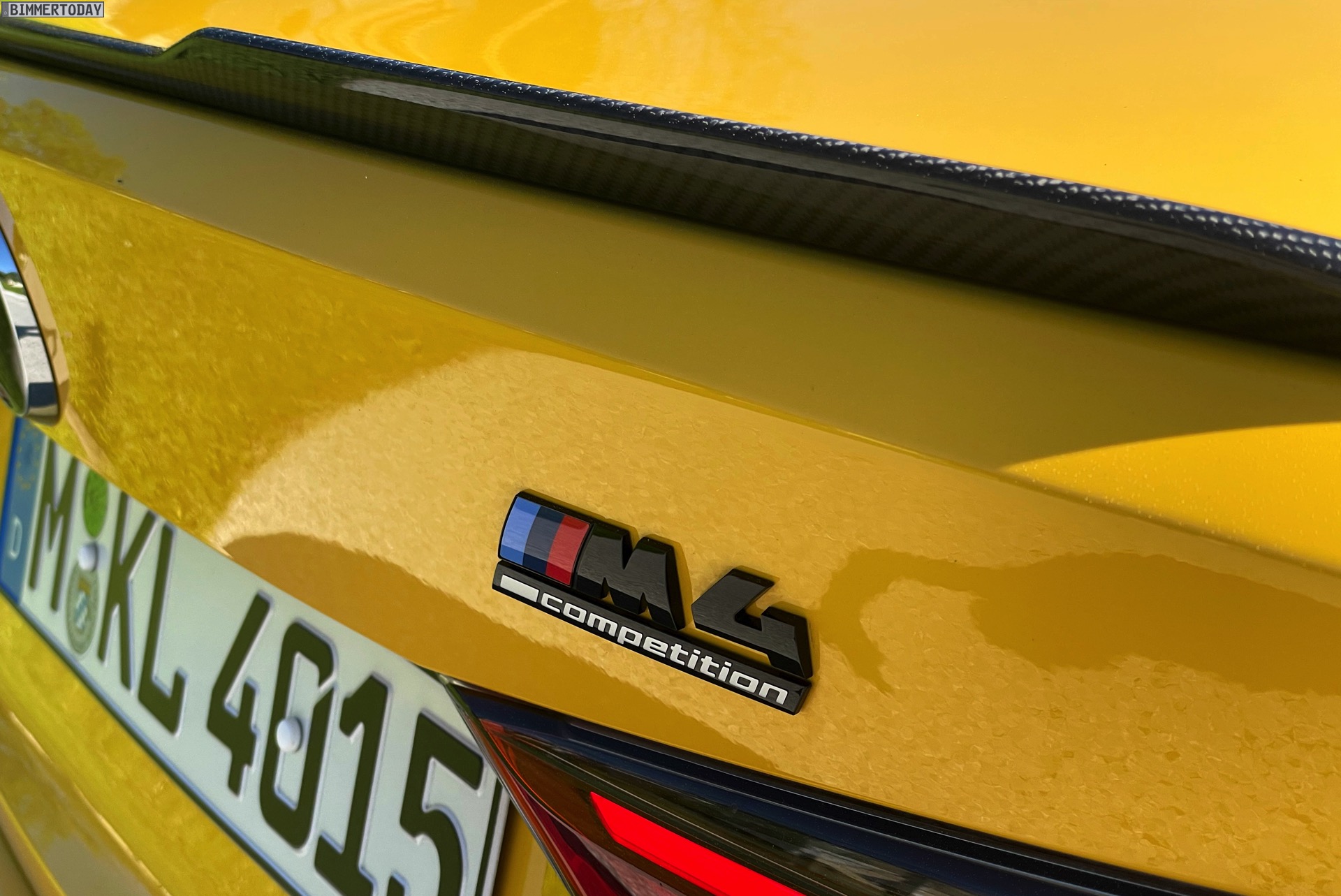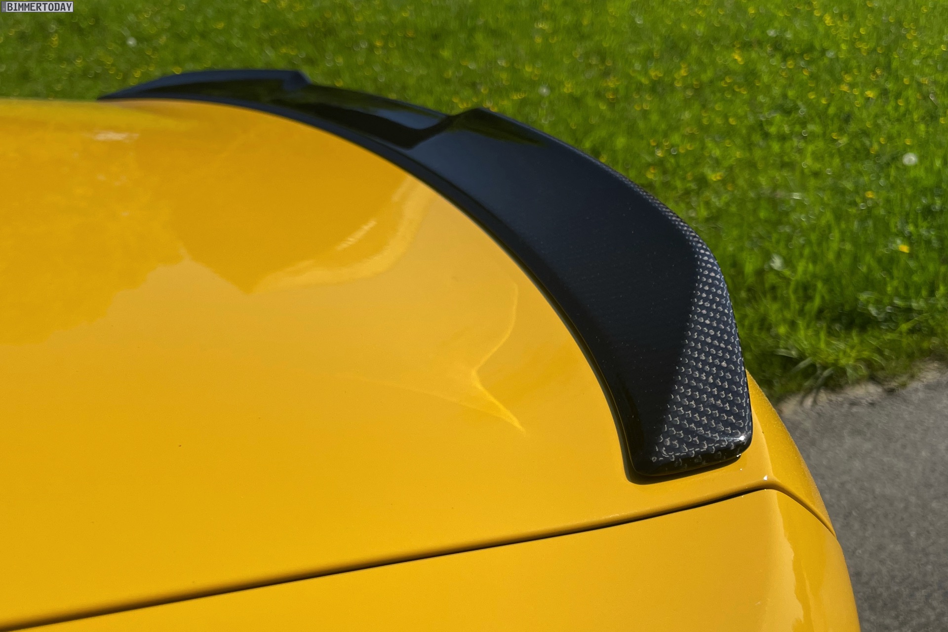 Für Motorsport-Flair sorgen dabei nicht nur das klar von allen anderen aktuellen BMW-Modellen abgegrenzte Nieren-Design oder Details wie die vier mächtigen Endrohre, sondern auch der charakteristische Look des an vielen Stellen verbauten kohlefaserverstärkten Kunststoffs: Dank Carbon-Paket verfügen nicht nur die Lufteinlässe seitlich der Nieren über Carbon-Blenden, auch die Außenspiegel, die Spoiler-Lippe und der Diffusor-Einsatz rund um die vier Endrohre stehen unübersehbar für sportlichen Leichtbau. Abgerundet wird der schwarz-gelbe Bicolor-Look mit den tiefschwarzen Schmiederädern im Design Doppelspeiche 826 M, hinter denen die gelben Sättel der Carbon-Keramik-Bremsanlage zu sehen sind.