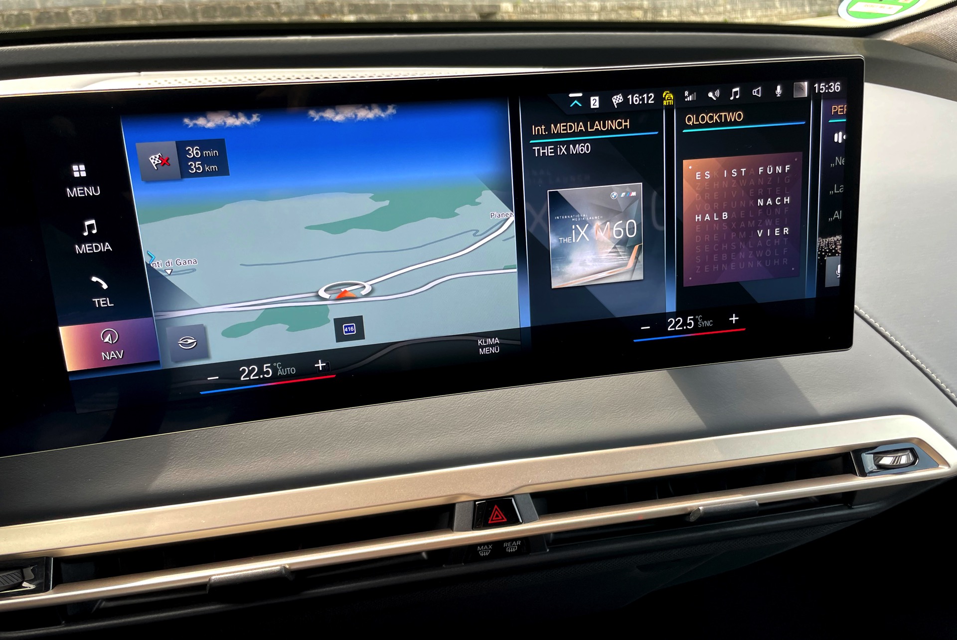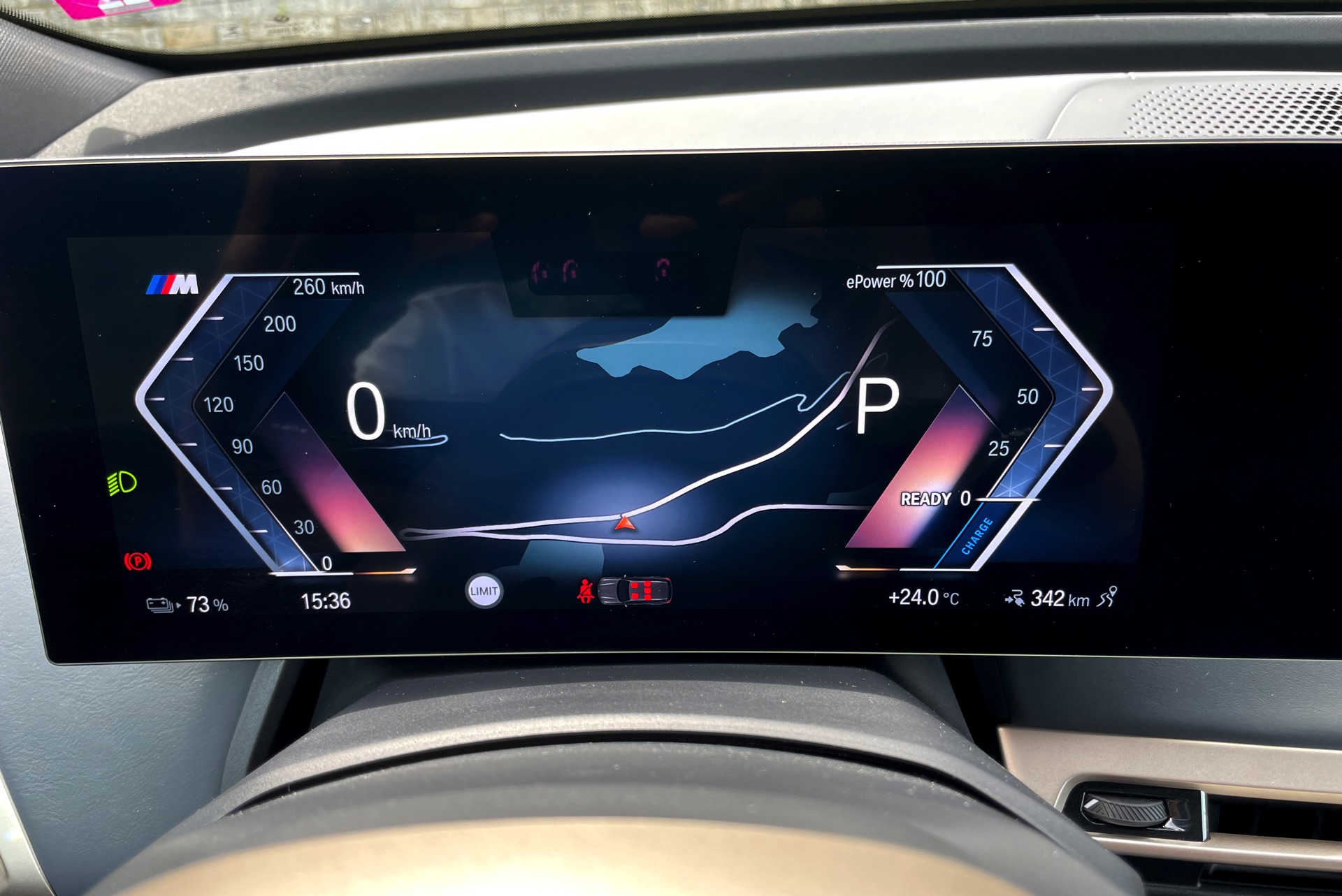 Die Kombination von enormer Kraft und Lautlosigkeit verlangt danach, die Geschwindigkeit wirklich immer im Blick zu behalten: Wer einen Moment nicht aufpasst, fährt sehr schnell und fast unmerklich “zu schnell”. Nicht nur in dieser Situation leisten die Fahrerassistenzsysteme mit ihrer Limit-Funktion gute Dienste, auch sonst erlauben sie dem Fahrer ein sehr entspanntes Fahren: Bei aktiviertem Assisted Driving übernimmt der BMW iX M60 neben der Geschwindigkeitsregelung auch die Spurführung, was selbst auf kurvigen Landstraßen gut funktioniert – auf eher anspruchslosen Strecken fasst man schnell Vertrauen und kann dem Auto die Fahraufgabe weitgehend überlassen, auch wenn man dabei natürlich bei der Sache und bereit für spontane Eingriffe bleiben sollte. Da der iX erkannte Tempolimits selbständig übernimmt, kann er prinzipiell sehr lange ohne tatsächlichen Eingriff autonom fahren, wenn der Fahrer mit einer Hand oder zumindest zwei Fingern am Lenkrad seine Anwesenheit unter Beweis stellt.
