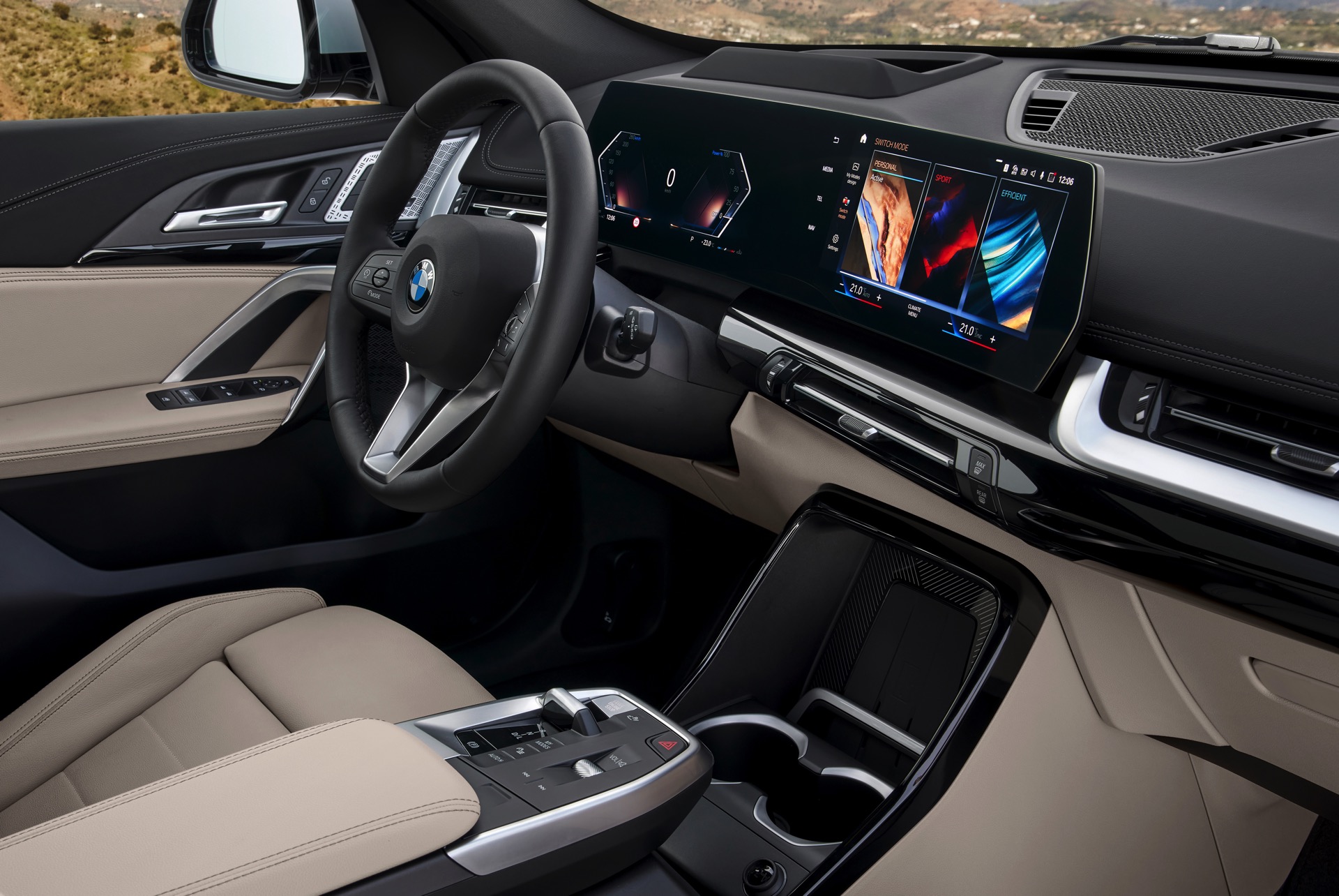 Unabhängig vom gewählten Antrieb bietet der neue BMW X1 eine umfassende Serienausstattung, die vom Curved-Display inklusive Navigationssystem über die 2-Zonen-Klimaautomatik und eine Geschwindigkeitsregelung mit Bremsfunktion bis hin zum Parkassistent samt Rückfahrkamera und Rückfahrassistent reicht. Auf Wunsch stehen selbstverständlich weitere Assistenzsysteme zur Verfügung, darunter ein Lenk- und Spurführungsassistent, eine aktive Geschwindigkeitsregelung samt Stop & Go-Funktion oder auch die aktive Navigationsführung, die auch aus Sicht der Routenplanung notwendige Spurwechsel vorbereitet und auf Wunsch durchführt.