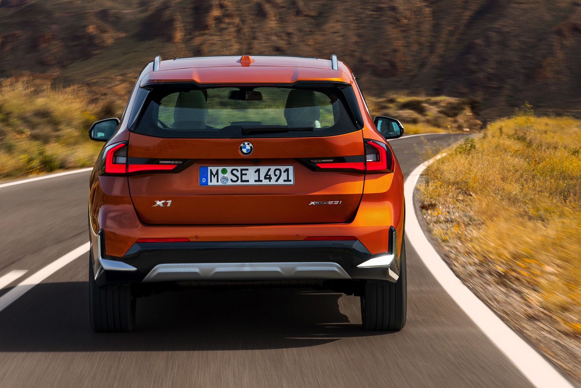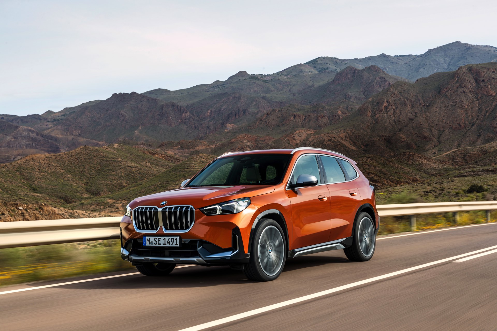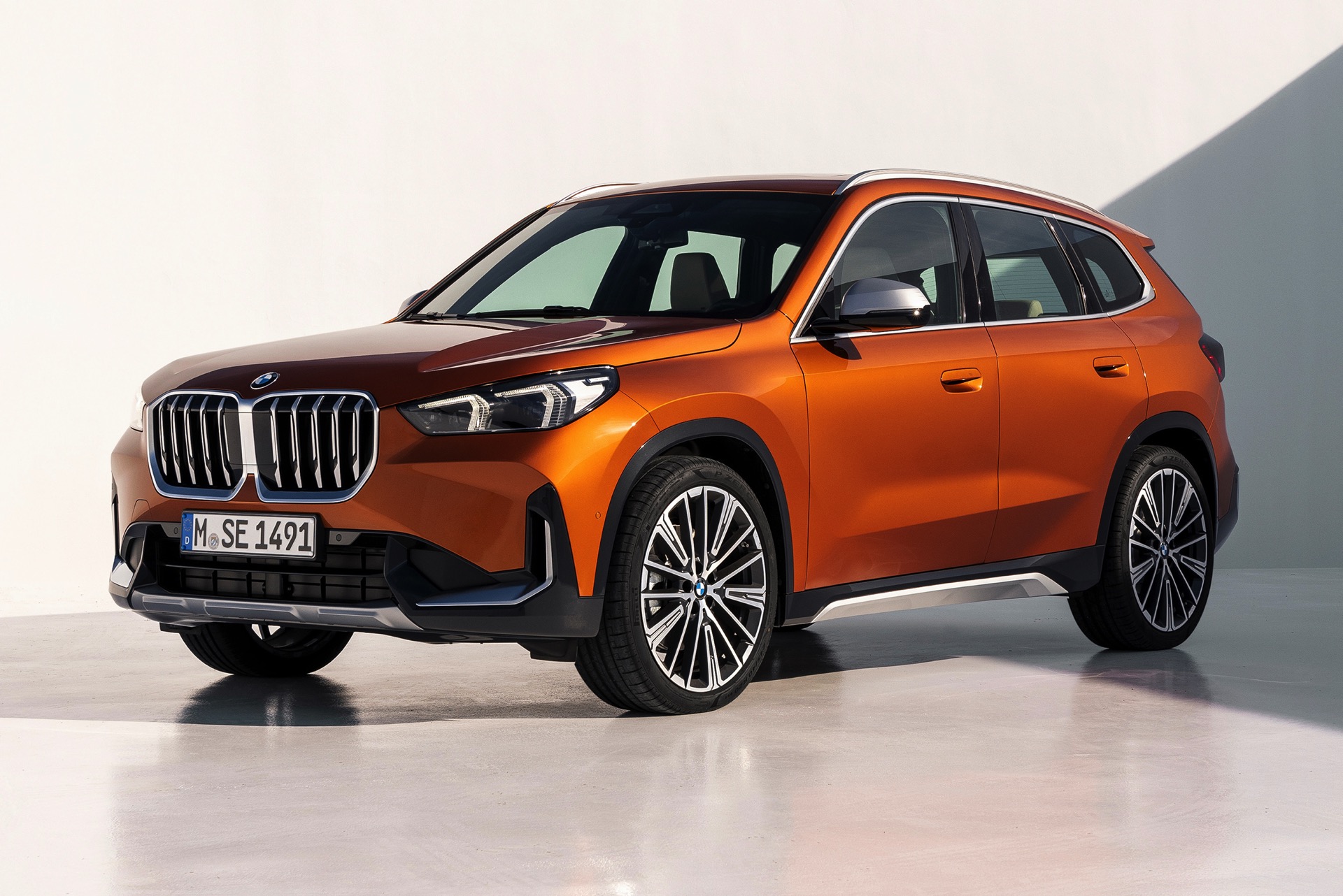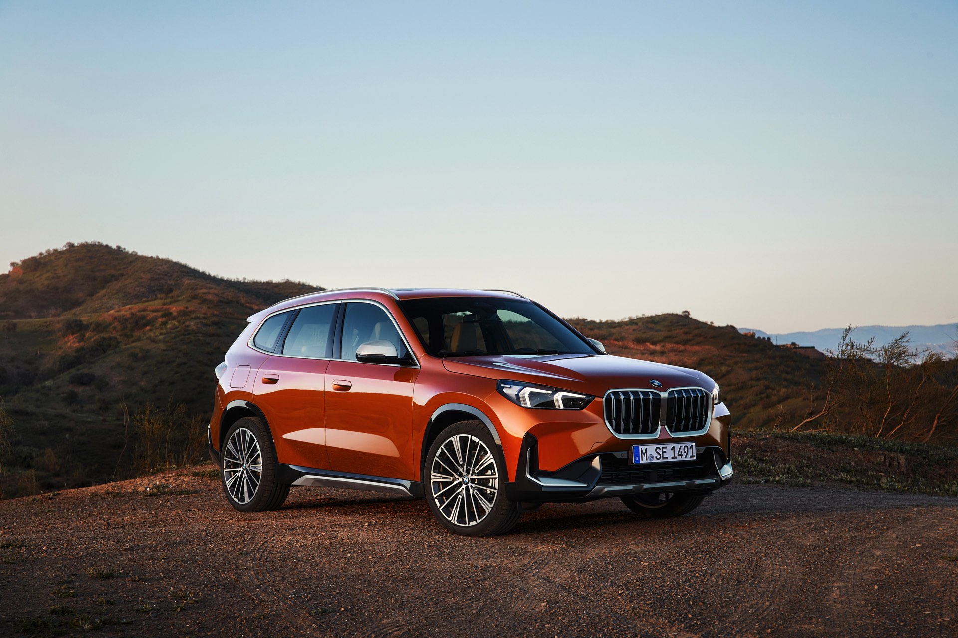 Trotz des kantigeren Auftritts konnten die aerodynamischen Eigenschaften deutlich verbessert werden, wovon neben der Effizienz natürlich auch der Geräuschkomfort profitiert. Mit einem cW-Wert von minimal 0,26 ist der BMW X1 (U11) deutlich besser als sein Vorgänger, der mit mindestens 0,28 angegeben war. Größter Hingucker auf den offiziellen Fotos zum dritten X1 ist aber die neue Farb-Option Utah Orange Metallic, die in die farbenfrohen Fußstapfen von Valencia Orange beim ersten und Sunset Orange beim zweiten X1 tritt. In Verbindung mit der rustikalen xLine samt angedeutetem Unterfahrschutz legt auch der neue BMW X1 einen Auftritt hin, dem es gewiss nicht an Selbstbewusstsein mangelt.