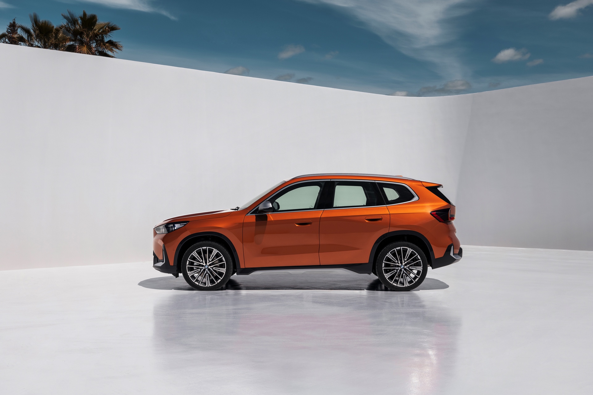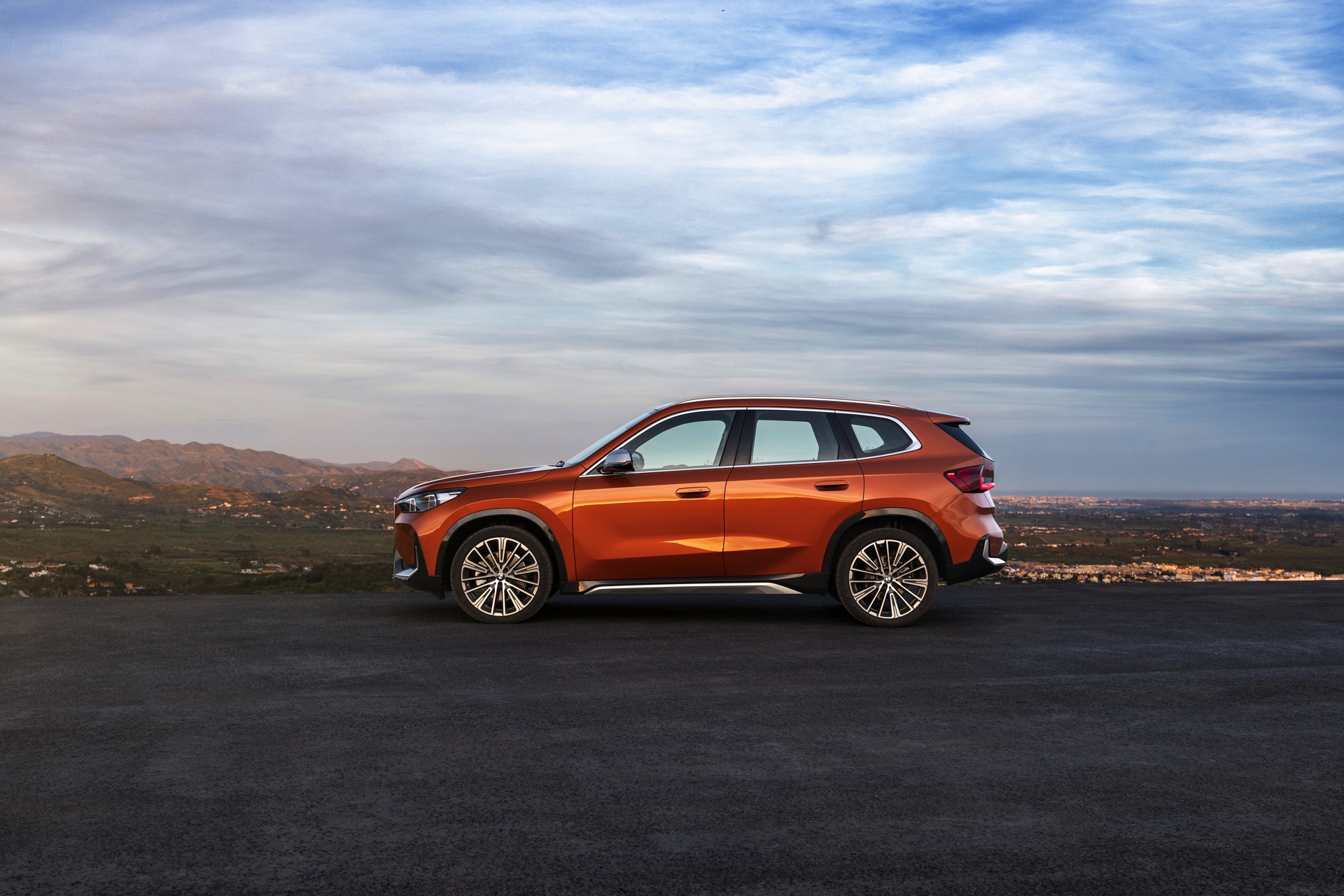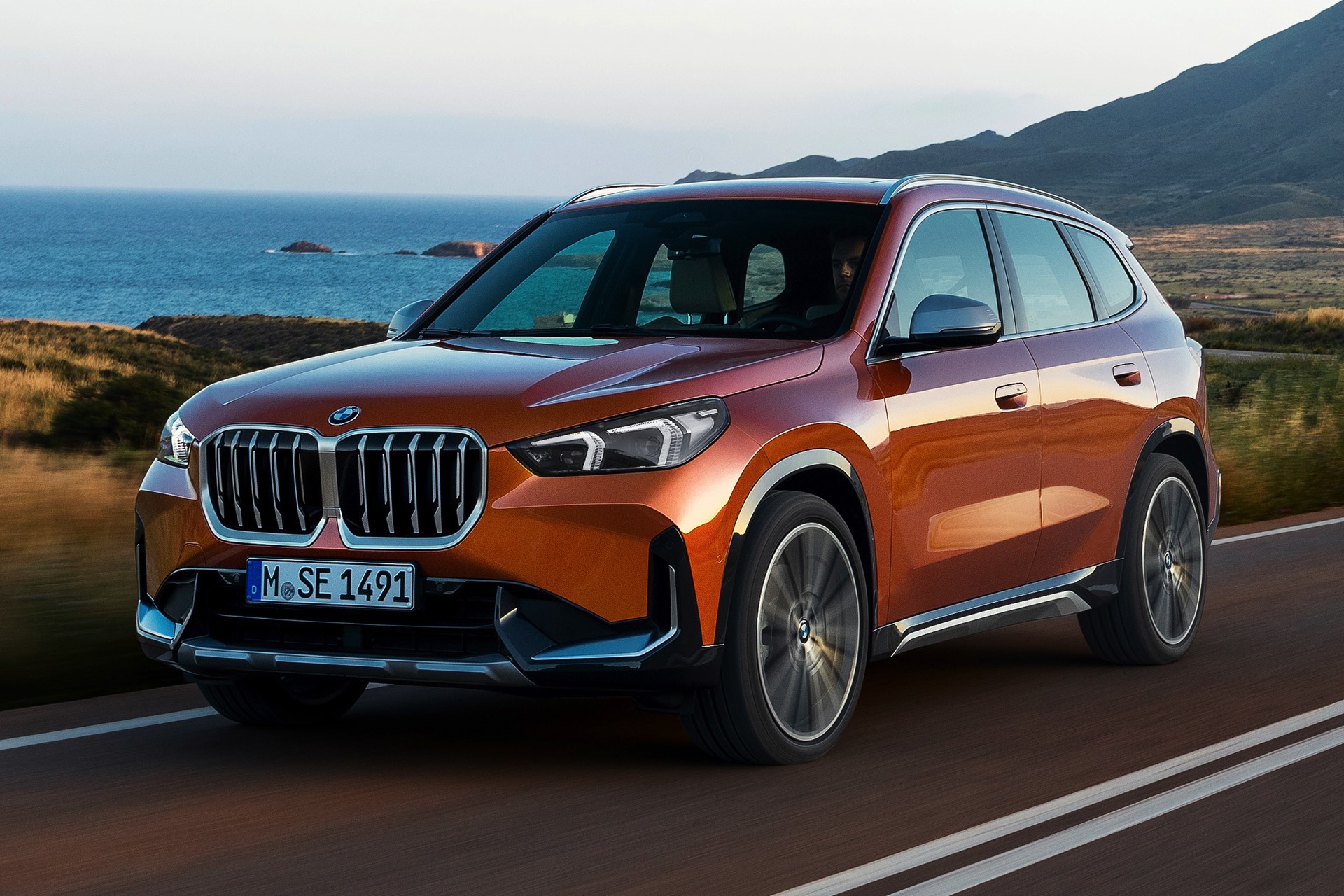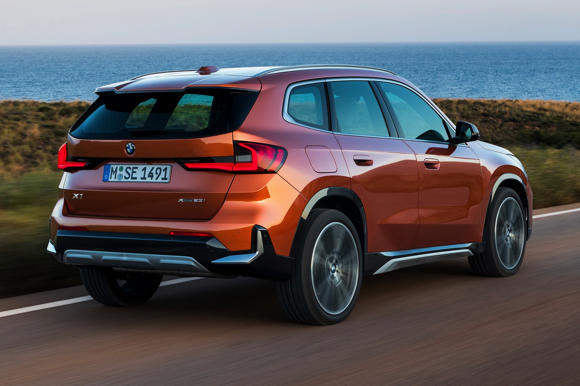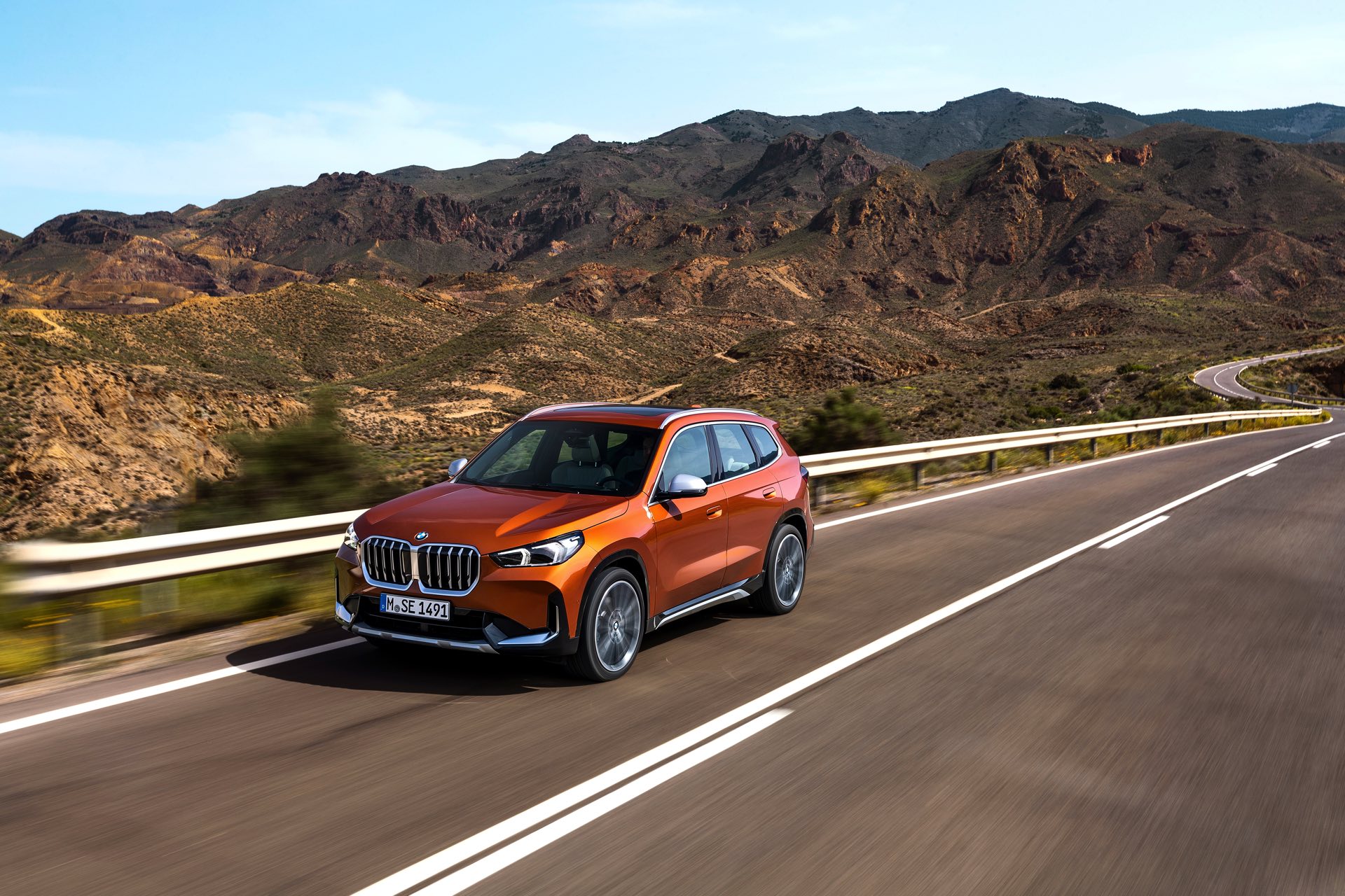 Trotz des kantigeren Auftritts konnten die aerodynamischen Eigenschaften deutlich verbessert werden, wovon neben der Effizienz natürlich auch der Geräuschkomfort profitiert. Mit einem cW-Wert von minimal 0,26 ist der BMW X1 (U11) deutlich besser als sein Vorgänger, der mit mindestens 0,28 angegeben war. Größter Hingucker auf den offiziellen Fotos zum dritten X1 ist aber die neue Farb-Option Utah Orange Metallic, die in die farbenfrohen Fußstapfen von Valencia Orange beim ersten und Sunset Orange beim zweiten X1 tritt. In Verbindung mit der rustikalen xLine samt angedeutetem Unterfahrschutz legt auch der neue BMW X1 einen Auftritt hin, dem es gewiss nicht an Selbstbewusstsein mangelt.