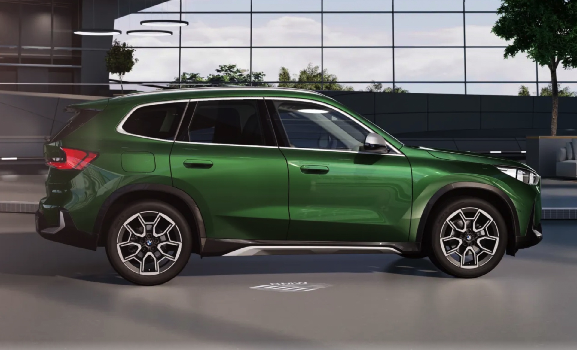 In der realistisch umgesetzten Umgebung der BMW Welt München zeigt der Online-Konfigurator den neuen BMW X1 (U11) auf bmw.de. Besonders spannend ist dabei ein Blick auf die unterschiedliche Wirkung der Farben, denn je nach Blickrichtung sieht man das Kompakt-SUV entweder im hellen Tageslicht, das durch die großen Glas-Fassaden des Gebäudes nach innen scheint, oder in einer eher schattigen Umgebung. So deutet der Konfigurator bereits relativ realistisch an, wie unterschiedlich eine Lackierung wie Utah Orange oder Cape York Grün je nach Lichteinfall wirken kann.