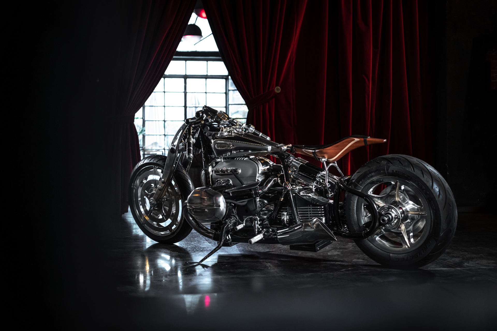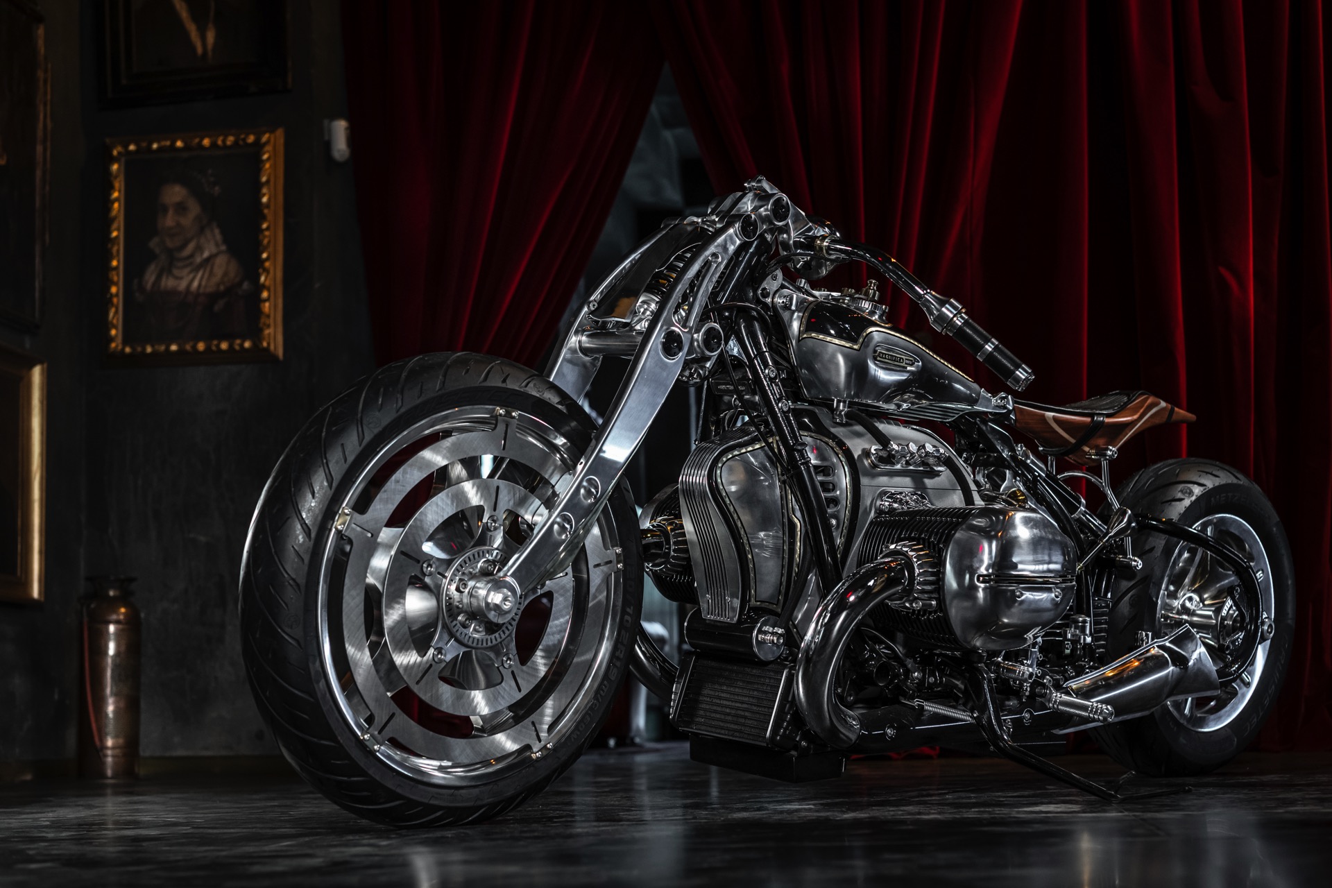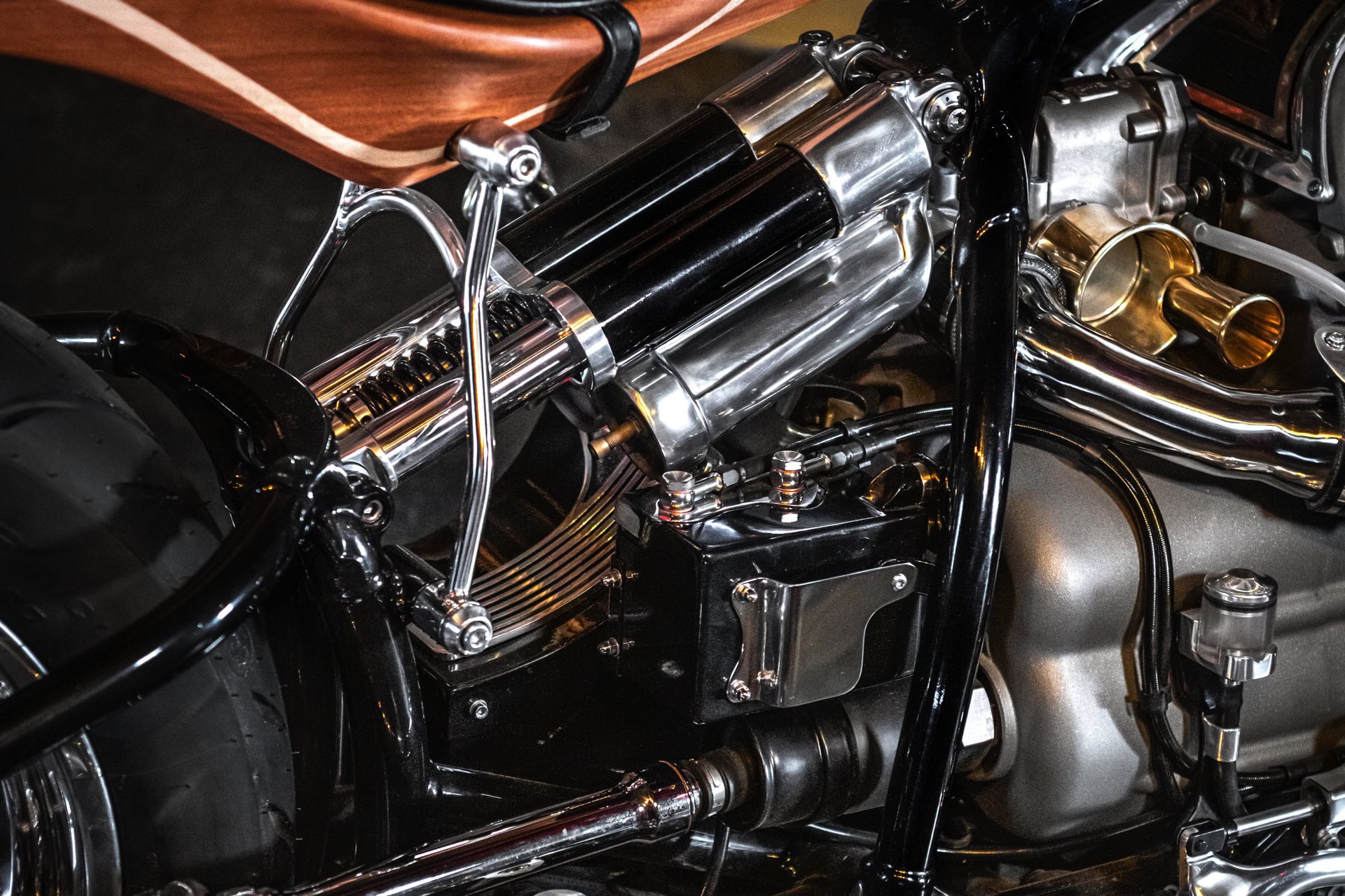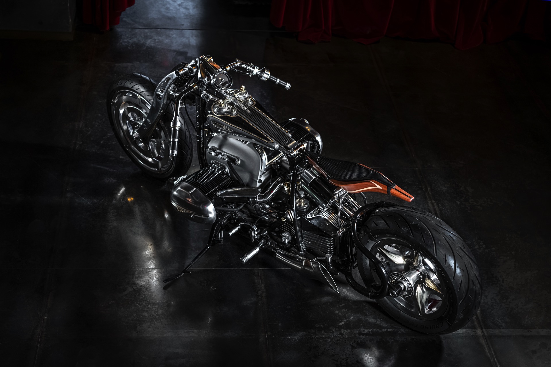 Herzstück der BMW R 18 Magnifica ist der Big Boxer-Motor von BMW, der mit seinen 1,8 Liter Hubraum für ein ganz besonderes Fahrgefühl verantwortlich ist. Feinste Materialien machen das Custom Bike schon auf den ersten Blick zu einem faszinierenden Hingucker, bei genauerem Hinsehen zeigt sich die Handwerkskunst bei der Verarbeitung von Aluminium, Messing, Holz und anderen zeitlosen Materialien. Das Ergebnis unzähliger Stunden ist ein radikal modifizierter Chopper, der zumindest optisch nur noch entfernt mit seiner Ausgangsbasis verwandt ist.