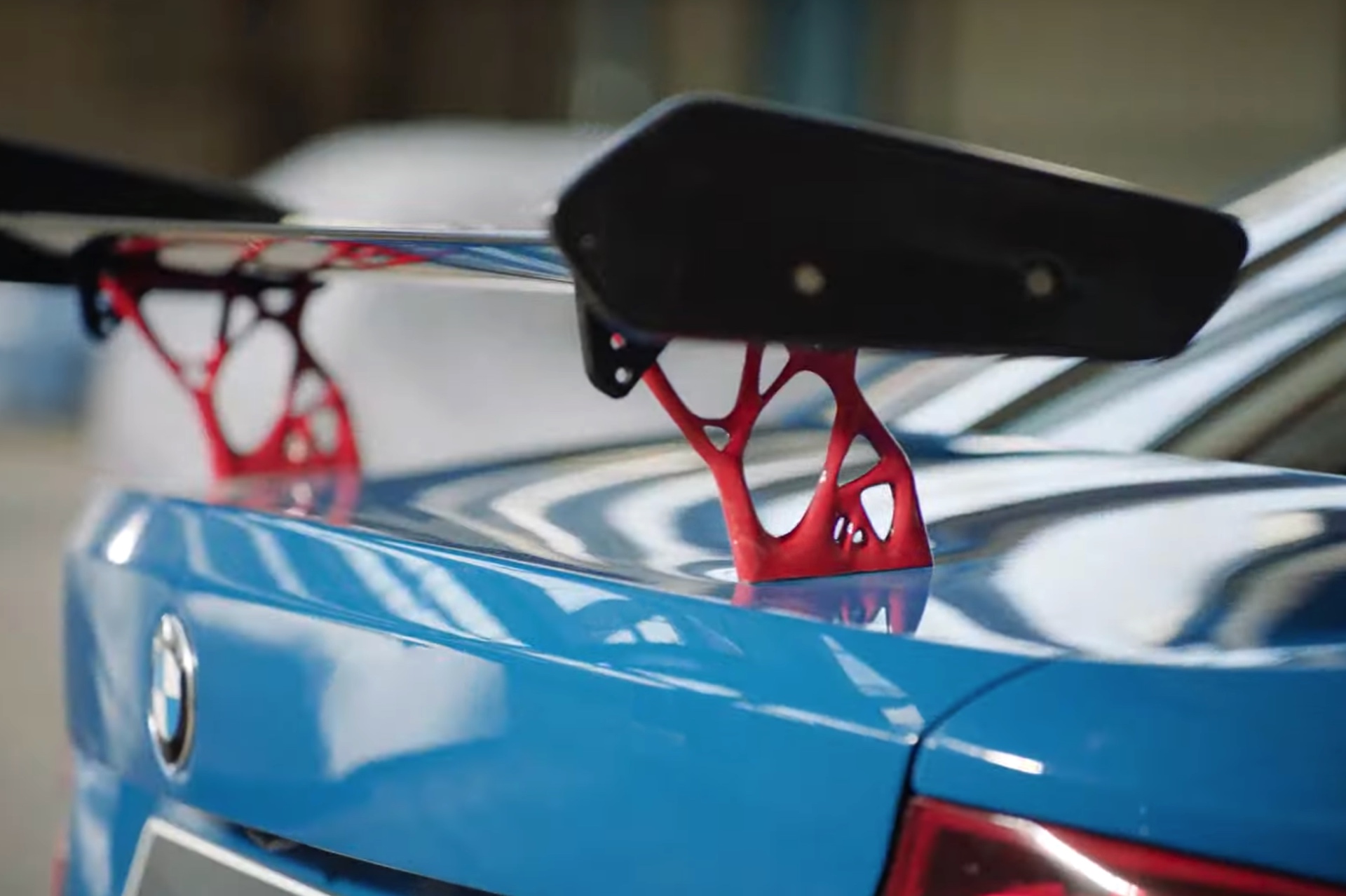Im zweiten Video aus der CSL-Garage erklären wird der BMW M2 CSL auch auf deutsch in allen Details vorgestellt: Die Performance-Krönung der Generation F87 hätte mit rot betonten Aerodynamik-Bauteilen glänzen dürfen, wobei der Frontsplitter vorn und der große Heckflügel hinten für eine gleichmäßige Erhöhung des Anpressdrucks an beiden Achsen gesorgt hätten. Einen genauen Blick verdienen die filigran gestalteten Träger des Heckflügels, denn diese haben eine sichtbar bionische Gestaltung mit Anlehnungen an die Tierwelt, die an vielen Stellen ganz ähnlich wie die M GmbH nach maximaler Stabilität bei minimalem Materialeinsatz strebt. Die Träger sind im Rapid Prototyping entstanden und stammen genau wie einige Bauteile heutiger Serienfahrzeuge aus dem 3D-Drucker.