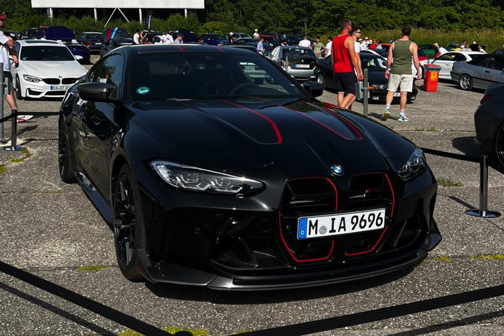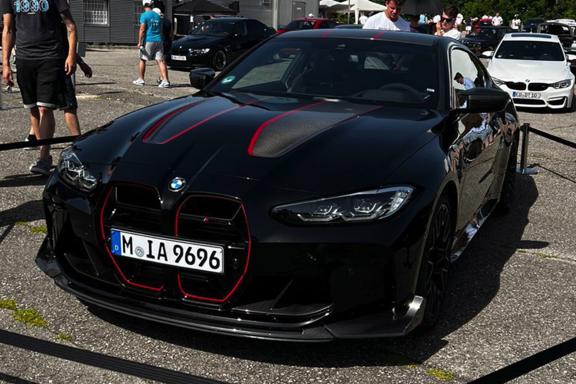 Ganze drei Farben gibt es ab Werk für den neuen BMW M4 CSL (G82), aber in Schwarz war das Topmodell der M4-Familie bisher nicht zu sehen: Bei seiner Weltpremiere im Rahmen des Concorso d’Eleganza Villa d’Este stand die exklusive Lackierung in Frozen Brooklyn Grey im Fokus. Nun feiert der BMW Club Munich sein Treffen 2022 und darf sich dabei auch über einige automobile Gäste aus Garching feiern, die anlässlich des 50. Geburtstags der BMW M GmbH mit vor Ort in Aschheim sein. Unumstrittenes Highlight ist dabei ein BMW M4 CSL in Saphirschwarz, denn hier kommen die CSL-typischen Design-Aspekte noch einmal ganz anders zur Geltung als in Verbindung mit mattem Grau. Unser Leser Tobias hat uns sofort einige Fotos geschickt, die wir Euch nicht vorenthalten und ebenfalls teilen wollen.