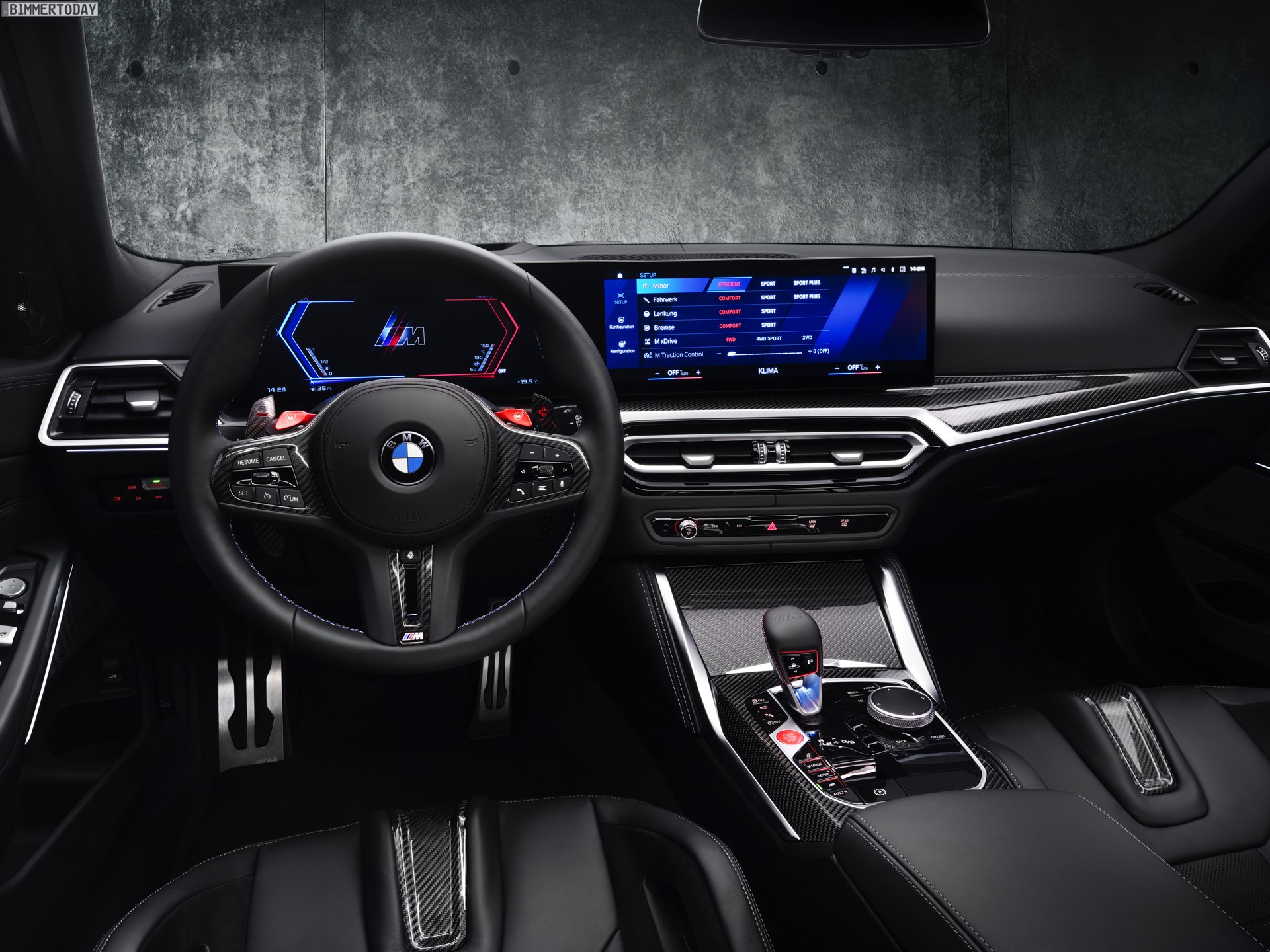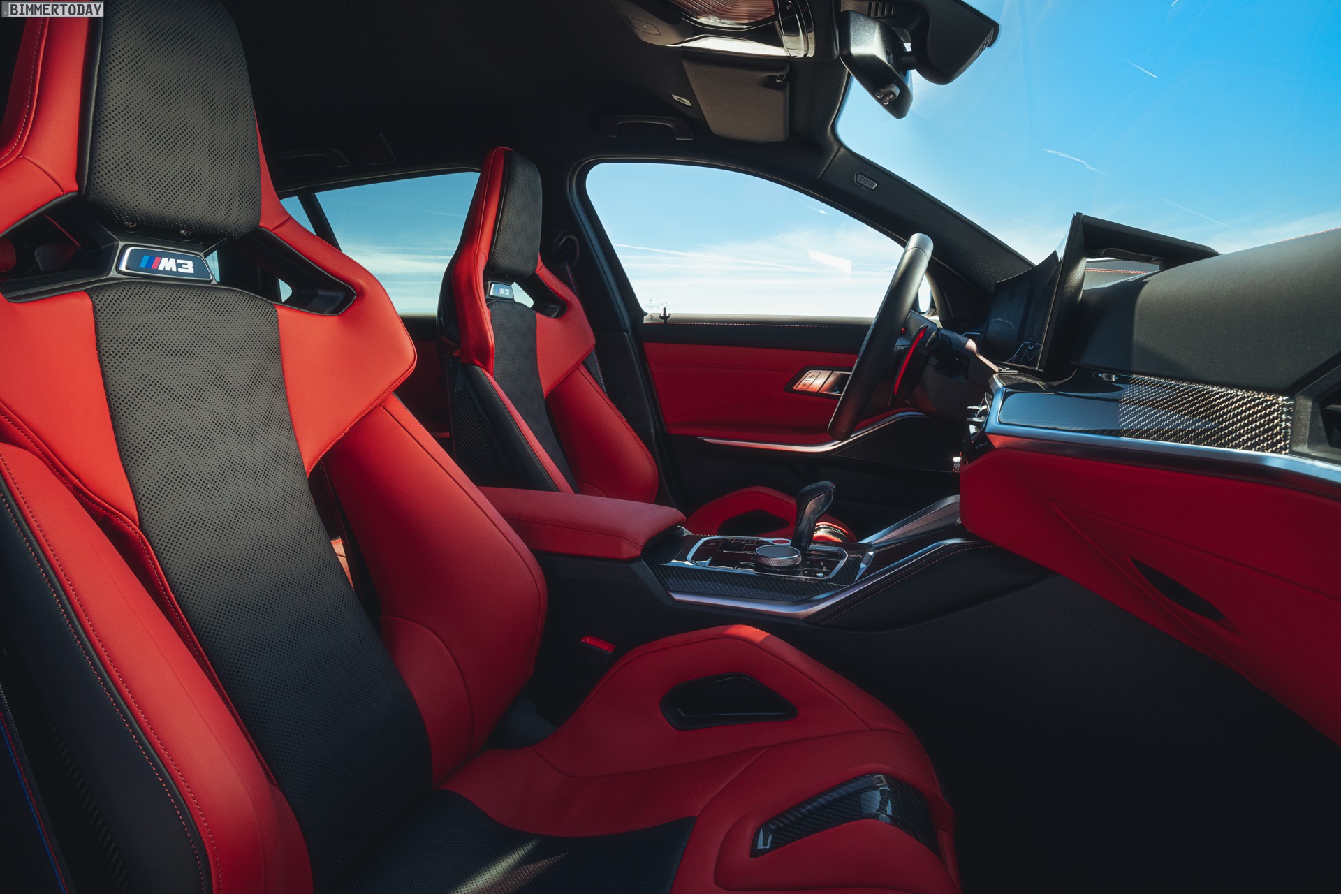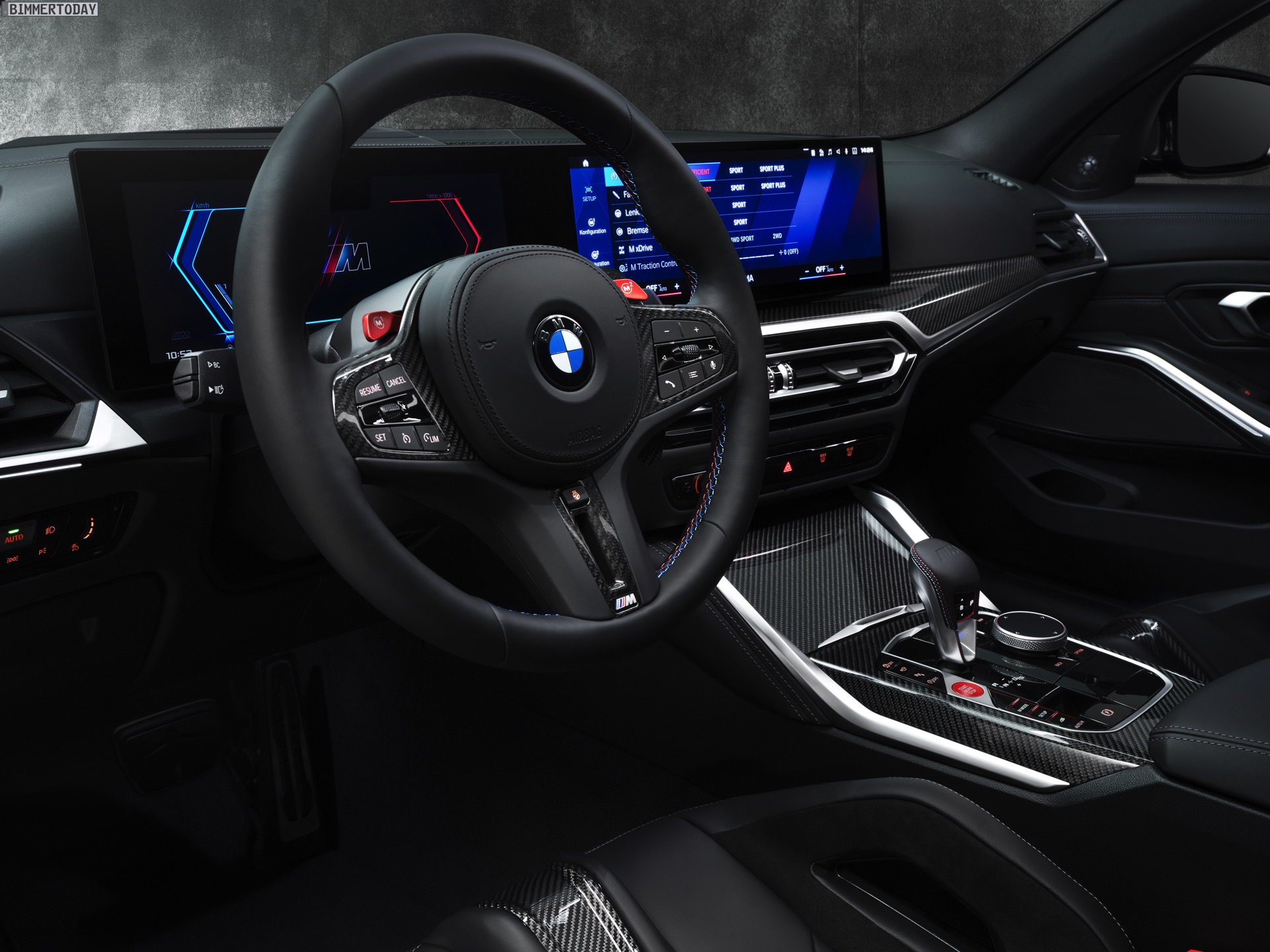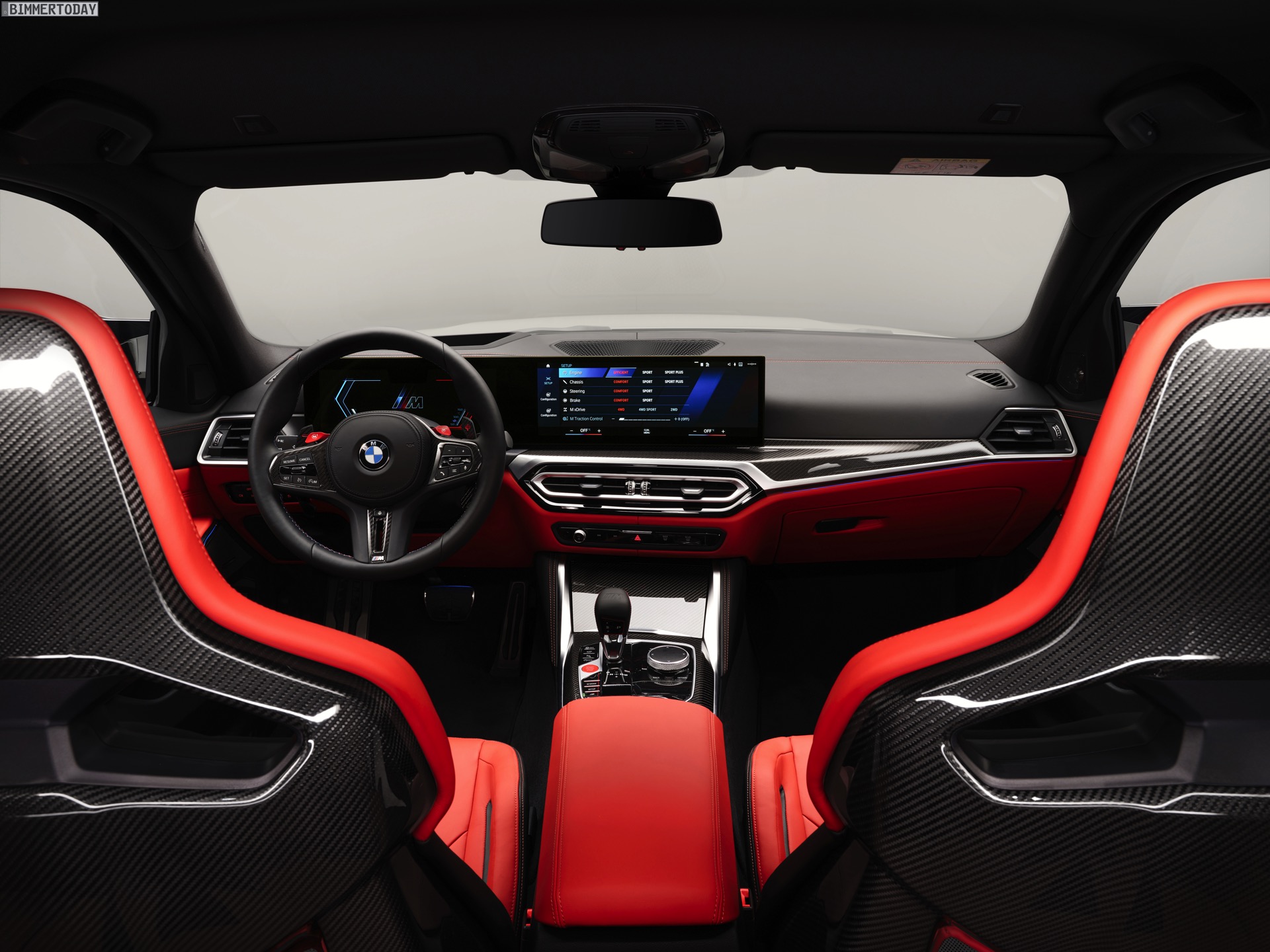 Highlight im Innenraum ist nicht nur der bis zu 1.500 Liter große Kofferraum, der jeden bisherigen M3 klar in den Schatten stellt, sondern natürlich auch das neue Curved Display mit M-spezifischen Anzeigen. Wie in jedem anderen M3 sind auch für den Touring die M Carbon-Schalensitze erhältlich, die schon auf den ersten Blick auf die sportlichen Ambitionen des Fahrzeugs hinweisen. Viel Carbon, roter Lack für Startknopf und M1- und M2-Knöpfe am Lenkrad sowie der M-Wählhebel für die Achtgang-Automatik runden den Look stilsicher ab.