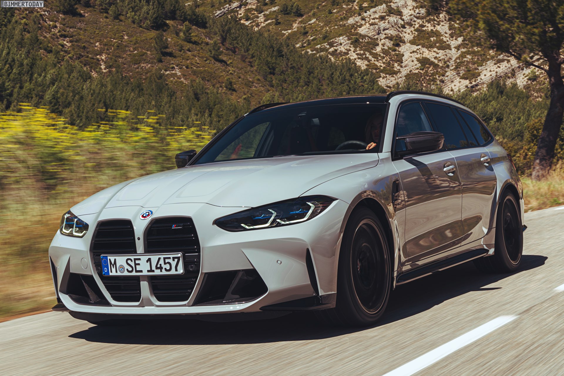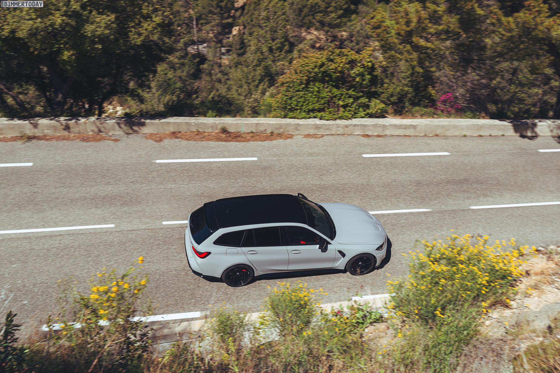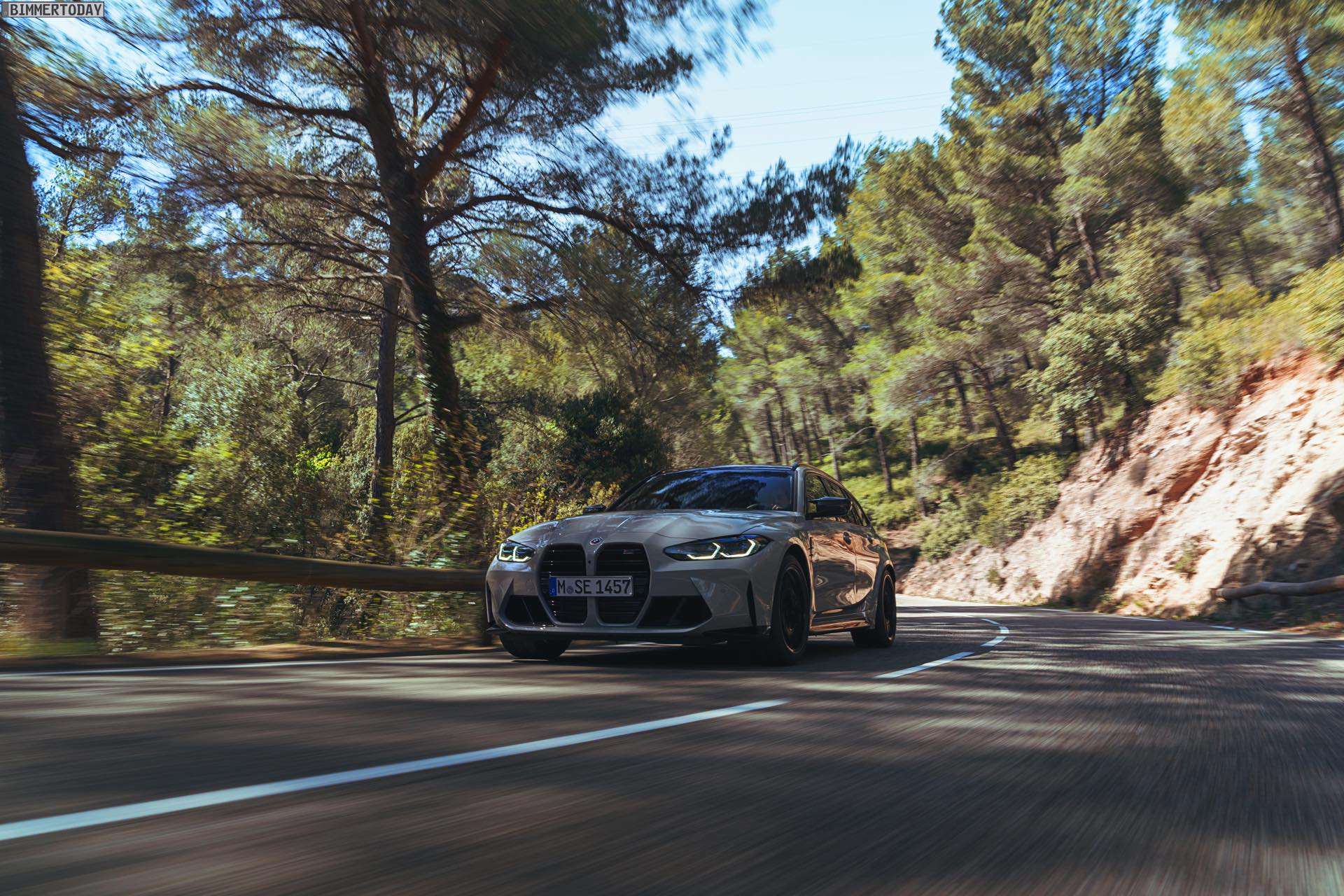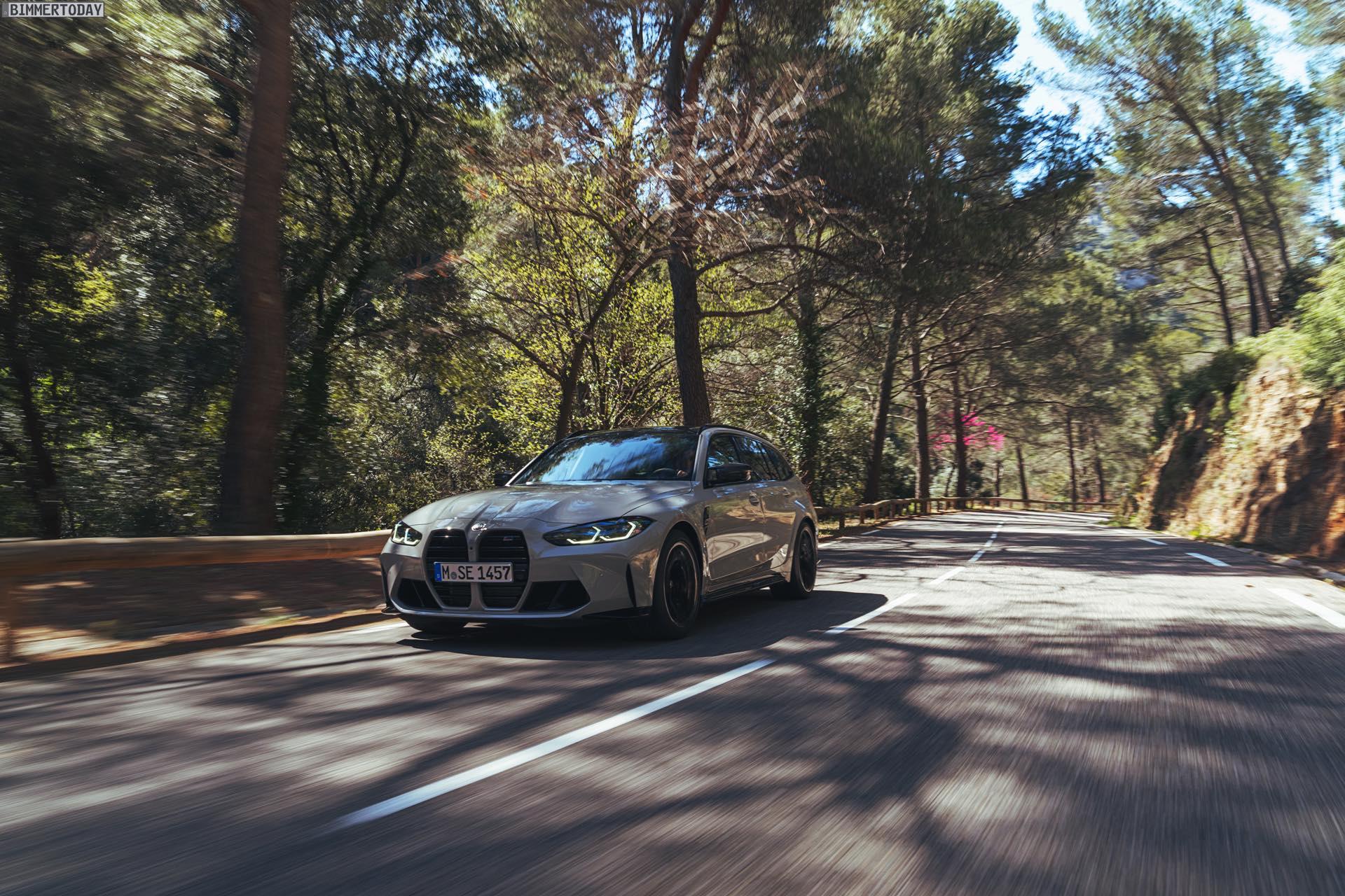 Nicht erhältlich ist hingegen das Carbon-Dach von Limousine und Coupé, der BMW M3 Touring kommt stattdessen lediglich mit einem wahlweise in Hochglanzschwarz oder Wagenfarbe lackierten Metall-Dach. Im Vergleich zum regulären 3er fällt außerdem auf, dass sich in der Preisliste des G81 weder ein Panorama-Glasdach noch eine Anhängerkupplung finden. Wo der Fokus stattdessen liegt, zeigt das Angebot des Racetrack-Pakets inklusive Cup-Bereifung, denn der Touring hat in Sachen Performance den gleichen hohen Anspruch wie jeder andere M3. Dass dieses Ziel erreicht wurde, macht die bereits vor ein paar Tagen kommunizierte Nürburgring-Rundenzeit von 7:35 Minuten mehr als deutlich: Kein bisher auf der Nordschleife offiziell gemessener Kombi fährt schneller durch die Grüne Hölle als der erste M3 Touring.