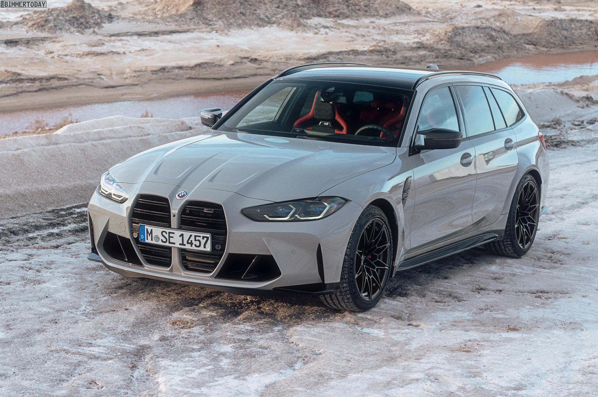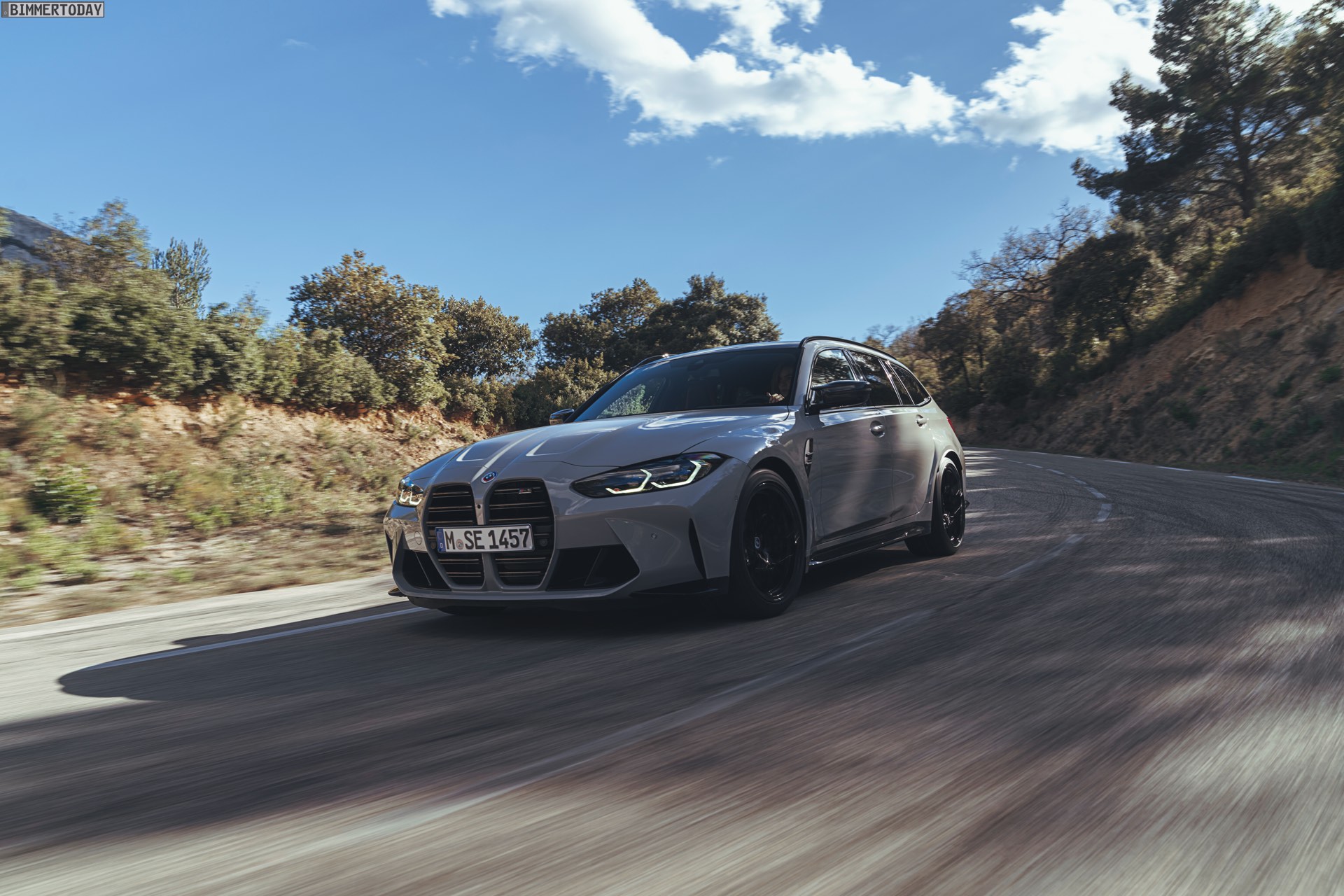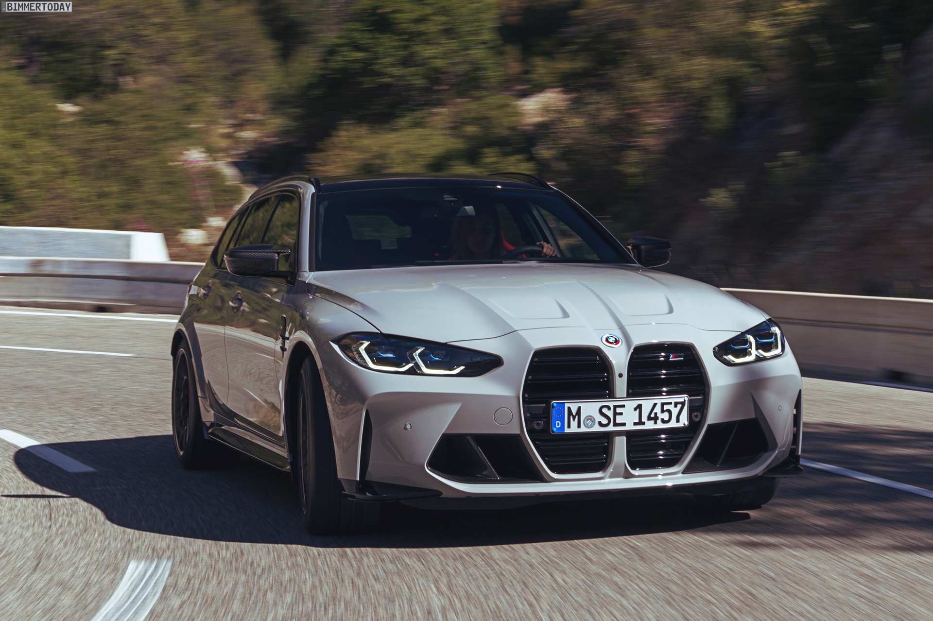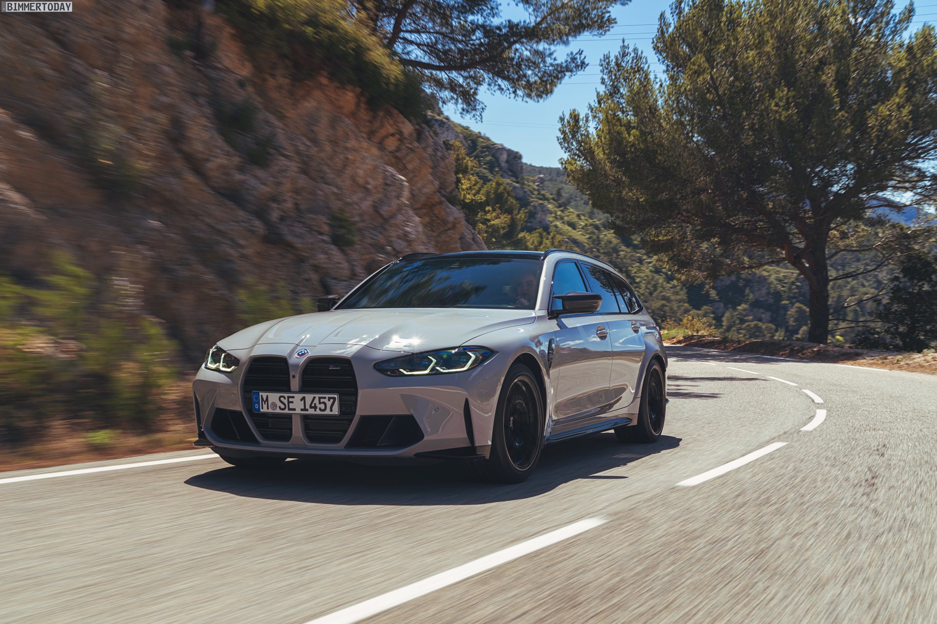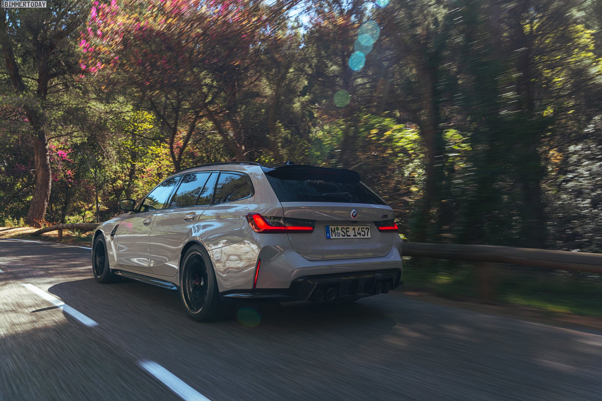 Nicht erhältlich ist hingegen das Carbon-Dach von Limousine und Coupé, der BMW M3 Touring kommt stattdessen lediglich mit einem wahlweise in Hochglanzschwarz oder Wagenfarbe lackierten Metall-Dach. Im Vergleich zum regulären 3er fällt außerdem auf, dass sich in der Preisliste des G81 weder ein Panorama-Glasdach noch eine Anhängerkupplung finden. Wo der Fokus stattdessen liegt, zeigt das Angebot des Racetrack-Pakets inklusive Cup-Bereifung, denn der Touring hat in Sachen Performance den gleichen hohen Anspruch wie jeder andere M3. Dass dieses Ziel erreicht wurde, macht die bereits vor ein paar Tagen kommunizierte Nürburgring-Rundenzeit von 7:35 Minuten mehr als deutlich: Kein bisher auf der Nordschleife offiziell gemessener Kombi fährt schneller durch die Grüne Hölle als der erste M3 Touring.