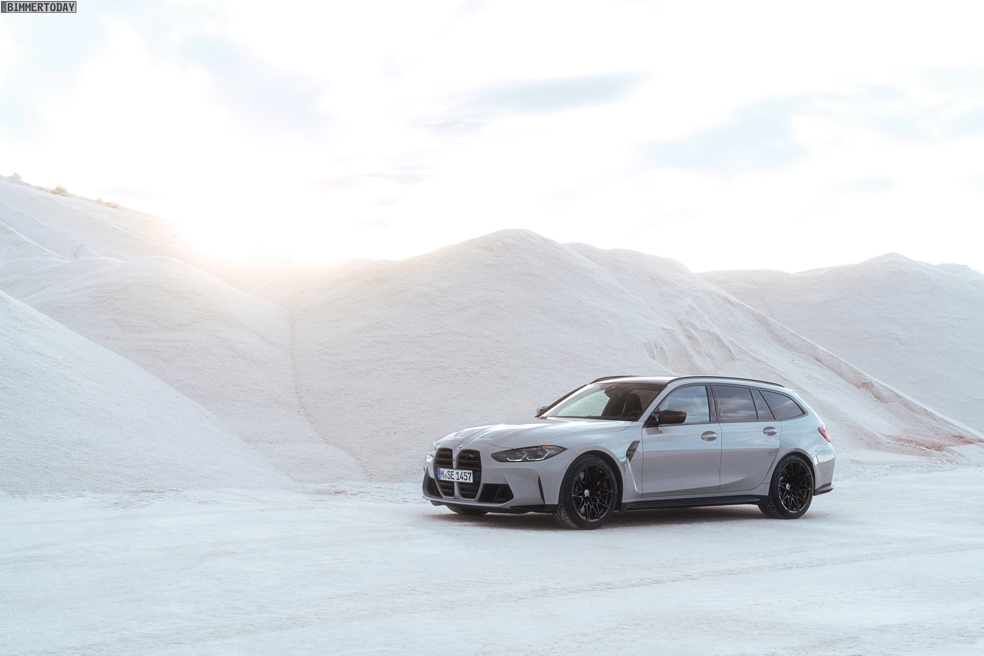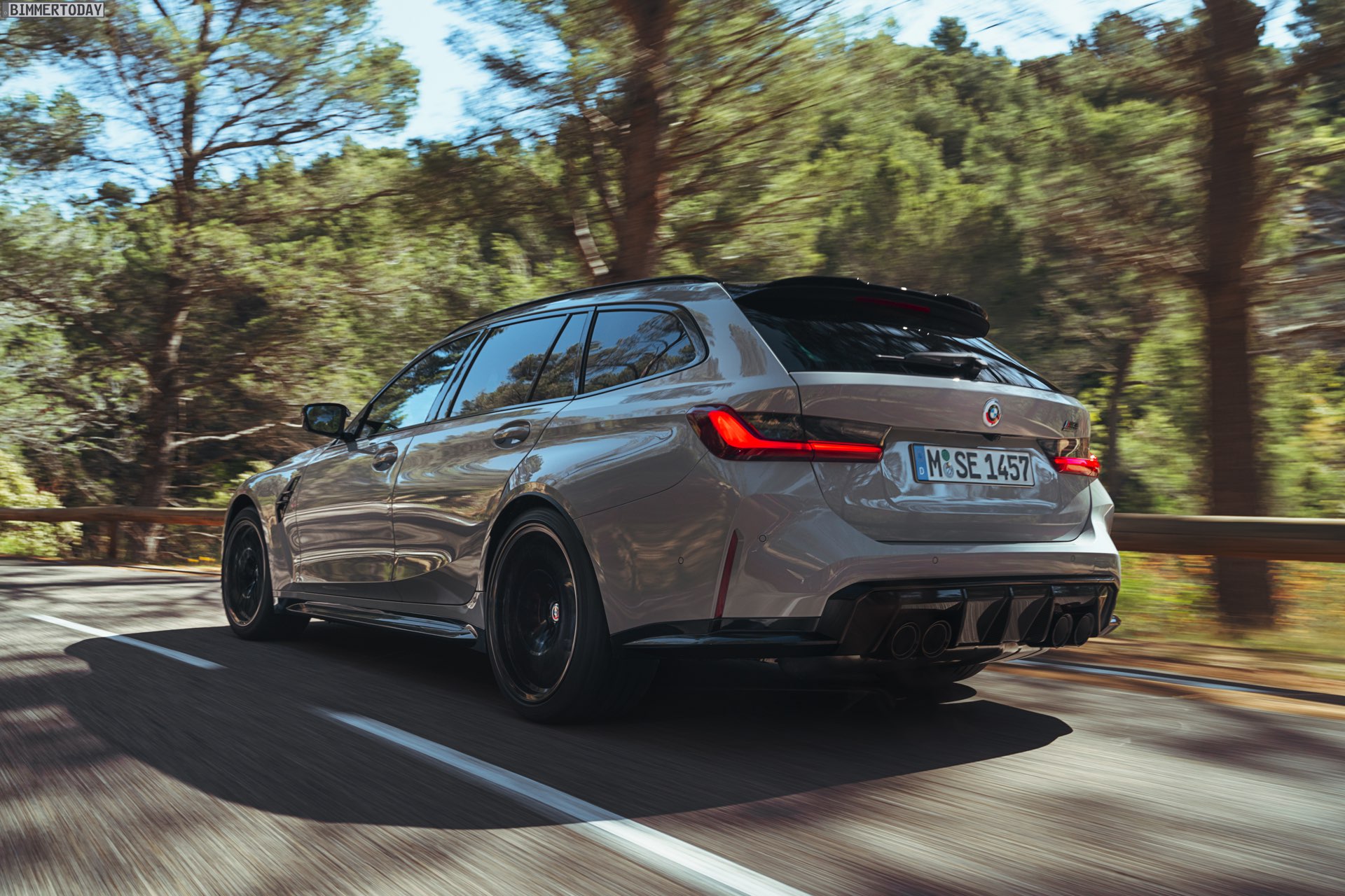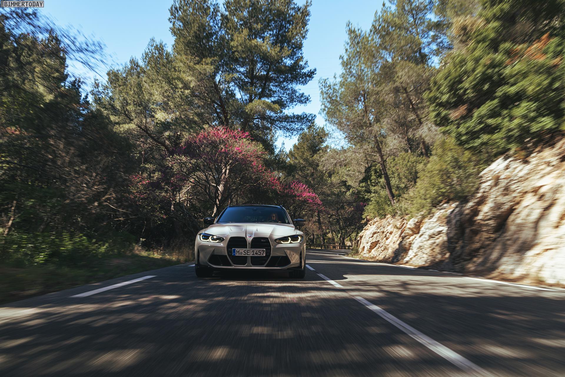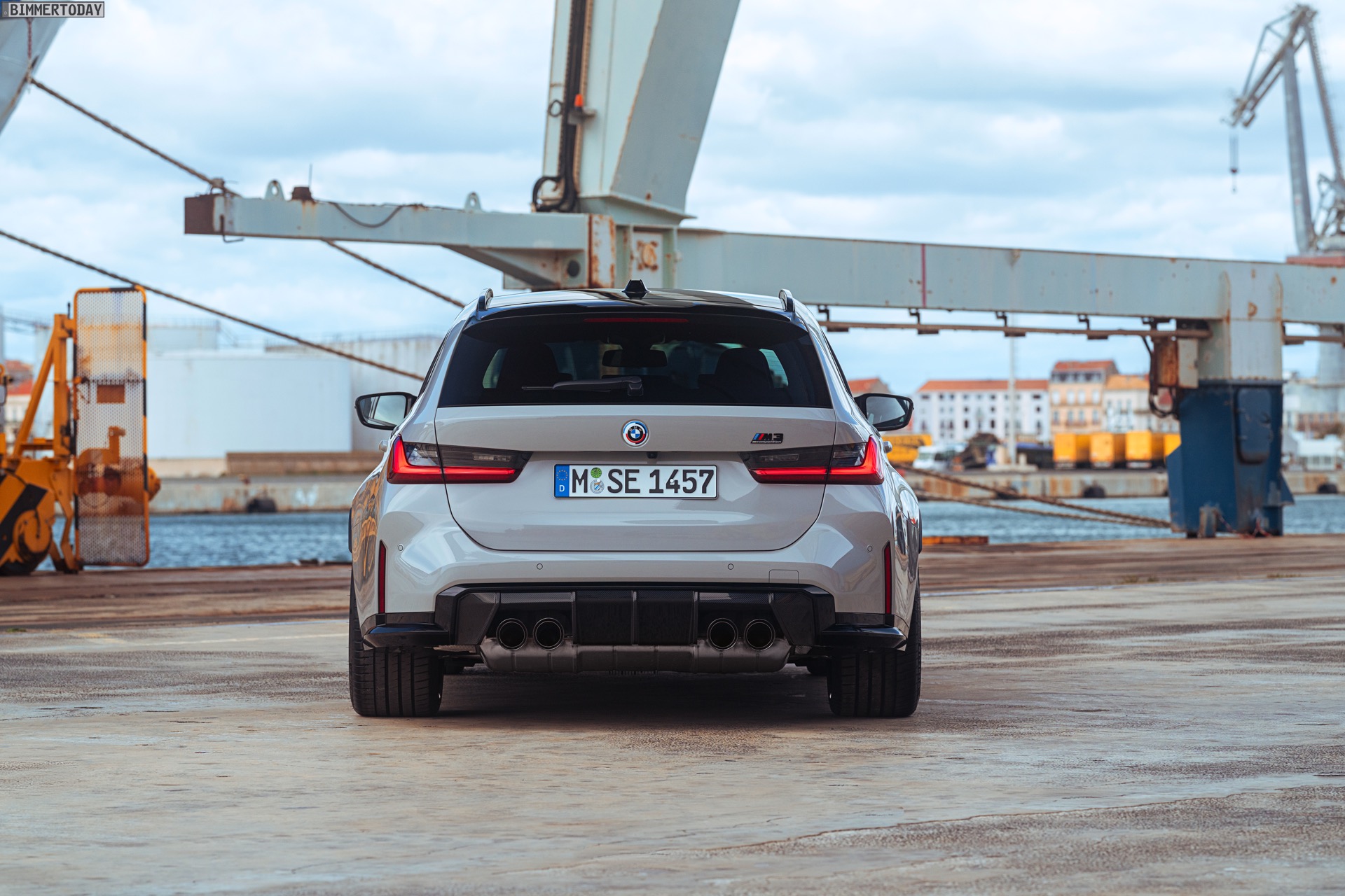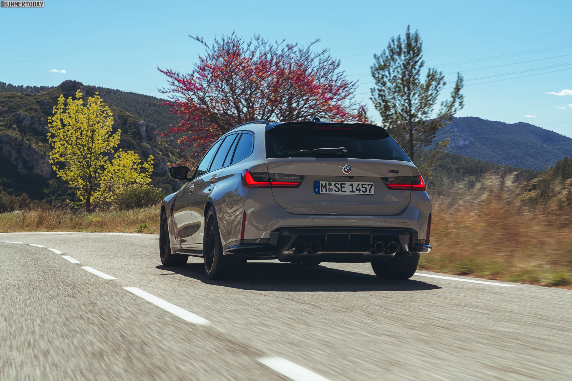 Anders sieht es beim Design des Power-Kombis aus, denn jetzt gibt es endlich offizielle Bilder zum BMW M3 Touring (G81). Auf den ersten Fotos sehen wir die Garchinger Interpretation des aktuellen 3er Touring (G21 LCI) mit Individual-Lackierung in Kreide, aber spannender als die Farbe ist in diesem Fall natürlich das Heck – und dessen Anblick überzeugt auf ganzer Linie: Die deutlich verbreiterten Kotflügel harmonieren perfekt mit dem Kombi-Heck, auch der dunkel abgesetzte Diffusor und die vier mächtigen Endrohre sind erstklassig integriert. Eher dezent fällt die zusätzliche Spoilerlippe auf dem Dachkanten-Spoiler aus, die den Abtrieb an der Hinterachse im Hochgeschwindigkeits-Bereich noch ein wenig erhöht. An der Front gleicht der BMW M3 Touring wie erwartet der M3 Limousine (G80).