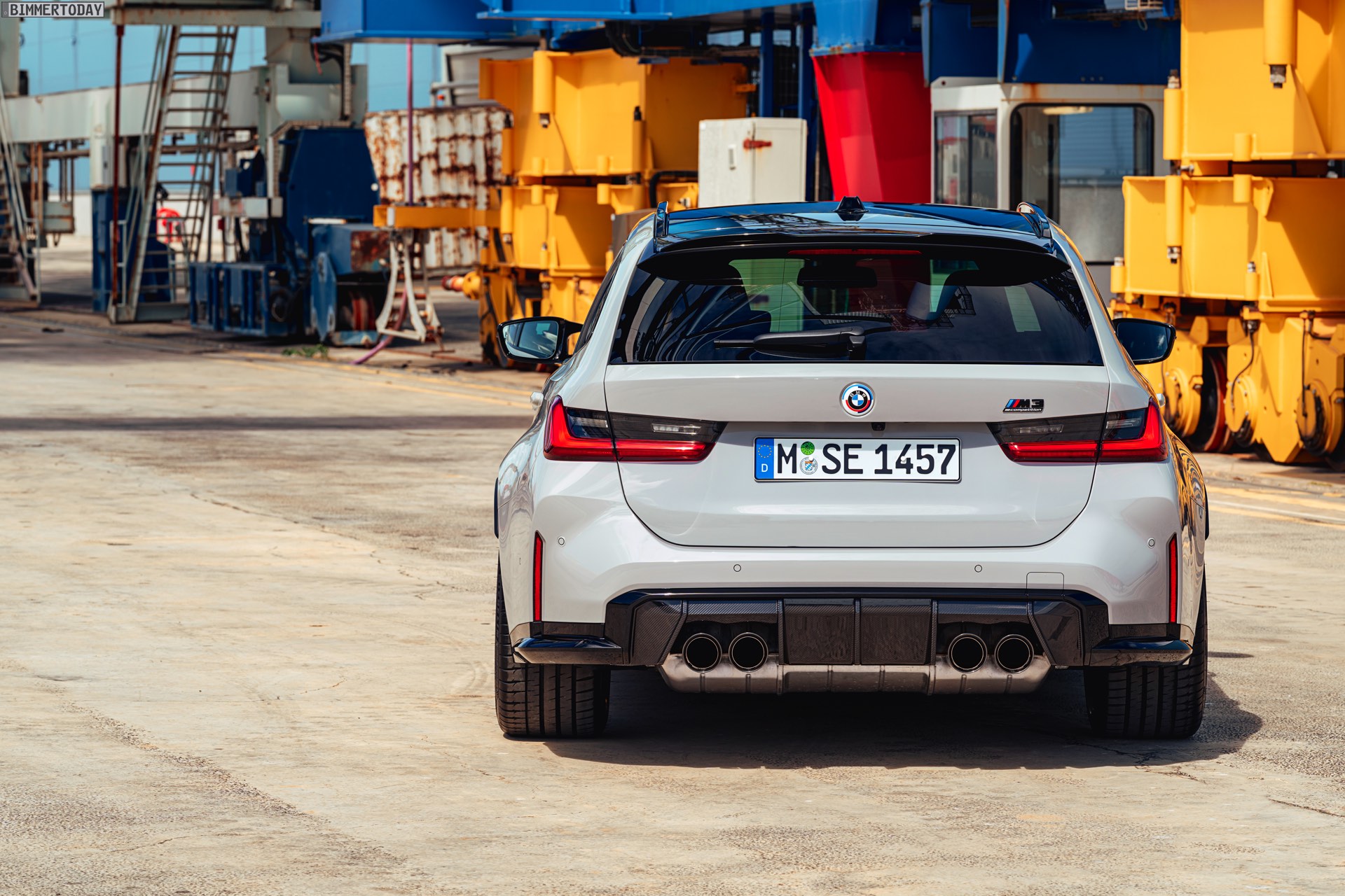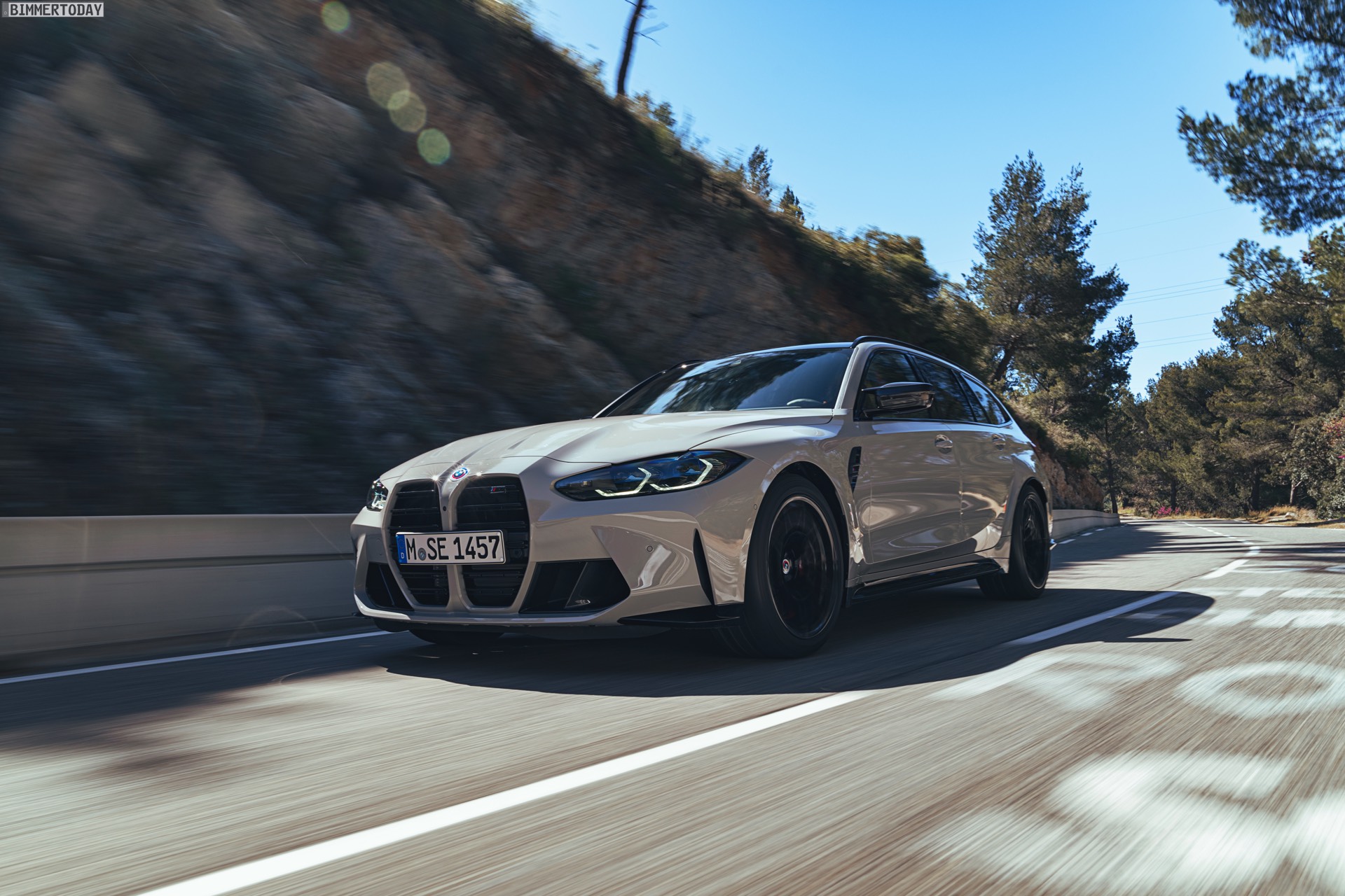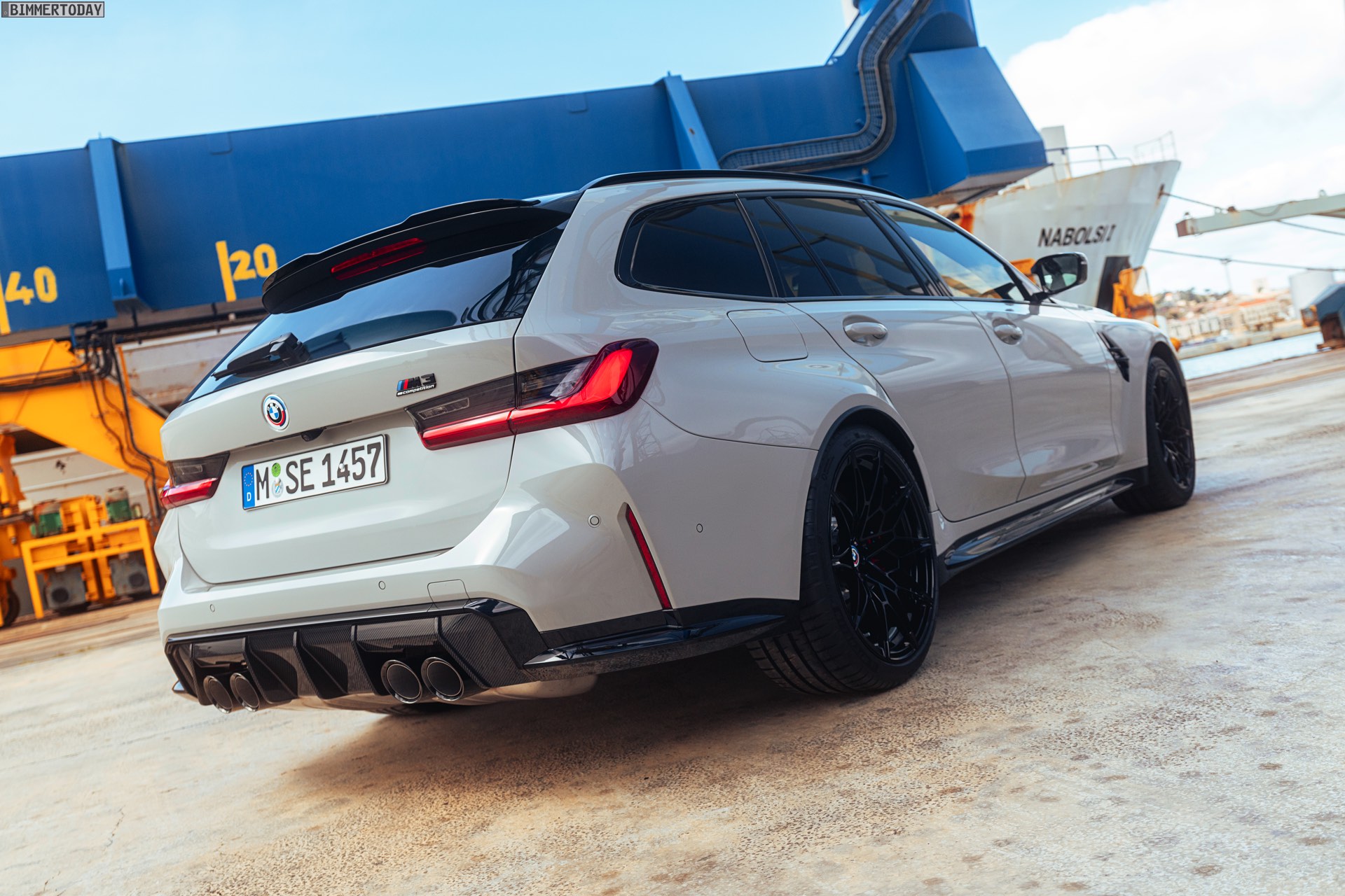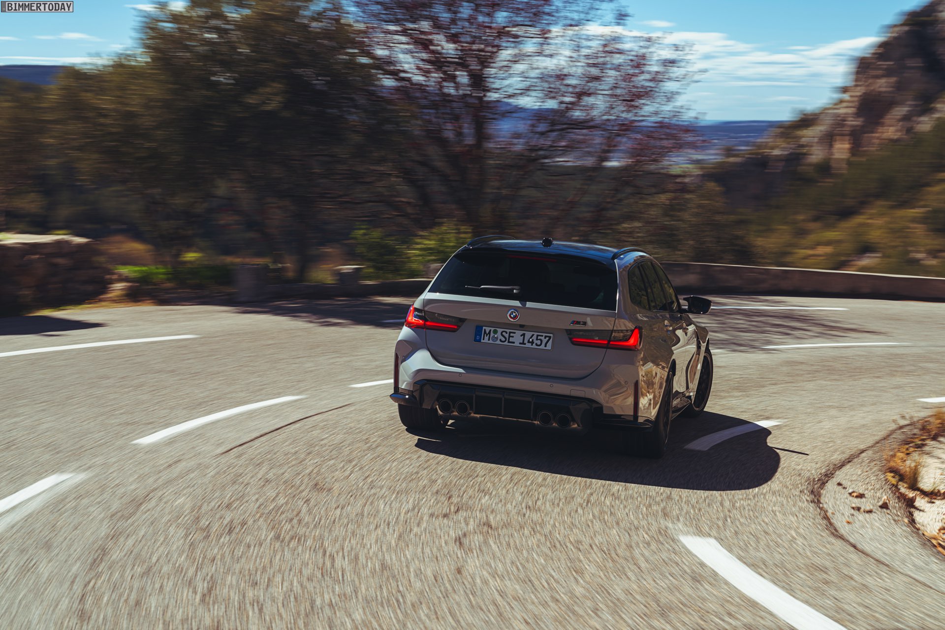 Anders sieht es beim Design des Power-Kombis aus, denn jetzt gibt es endlich offizielle Bilder zum BMW M3 Touring (G81). Auf den ersten Fotos sehen wir die Garchinger Interpretation des aktuellen 3er Touring (G21 LCI) mit Individual-Lackierung in Kreide, aber spannender als die Farbe ist in diesem Fall natürlich das Heck – und dessen Anblick überzeugt auf ganzer Linie: Die deutlich verbreiterten Kotflügel harmonieren perfekt mit dem Kombi-Heck, auch der dunkel abgesetzte Diffusor und die vier mächtigen Endrohre sind erstklassig integriert. Eher dezent fällt die zusätzliche Spoilerlippe auf dem Dachkanten-Spoiler aus, die den Abtrieb an der Hinterachse im Hochgeschwindigkeits-Bereich noch ein wenig erhöht. An der Front gleicht der BMW M3 Touring wie erwartet der M3 Limousine (G80).