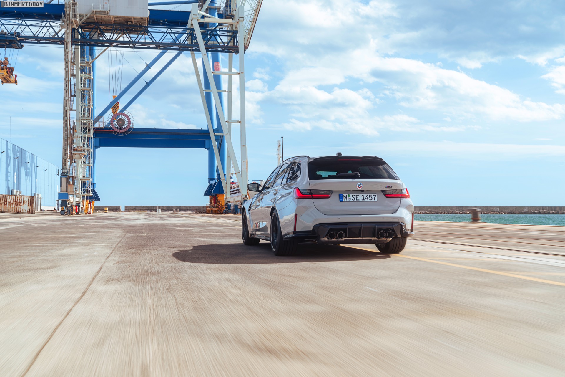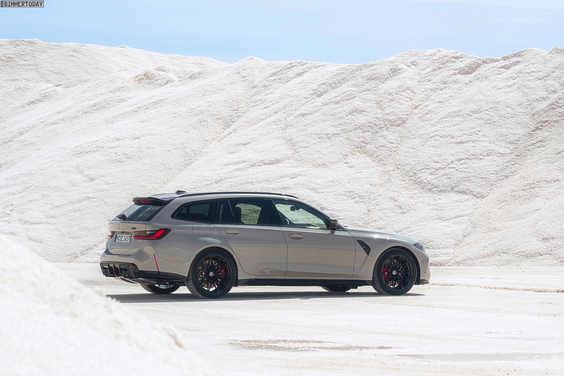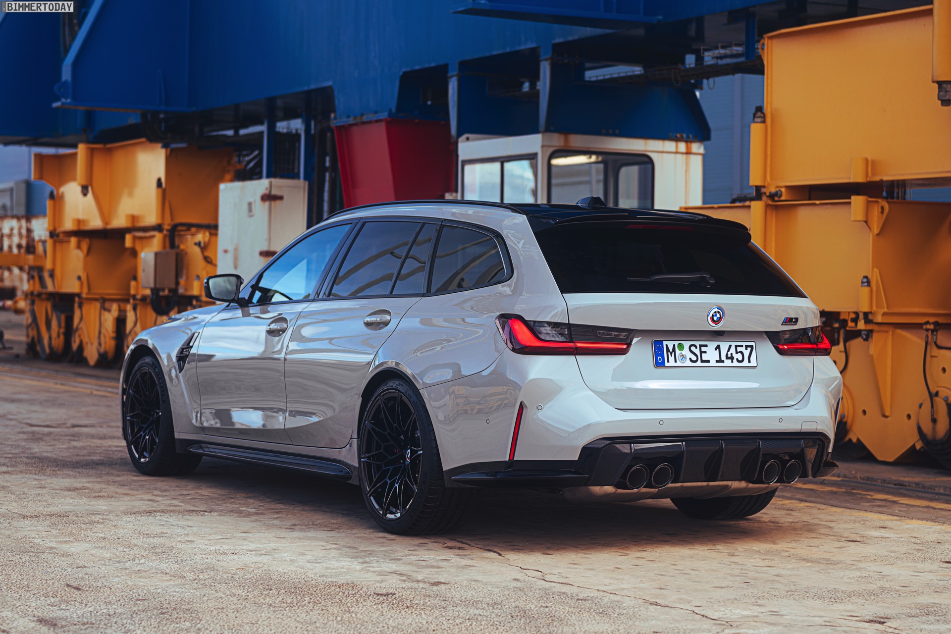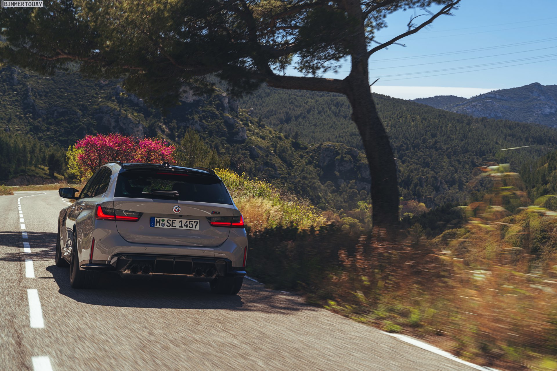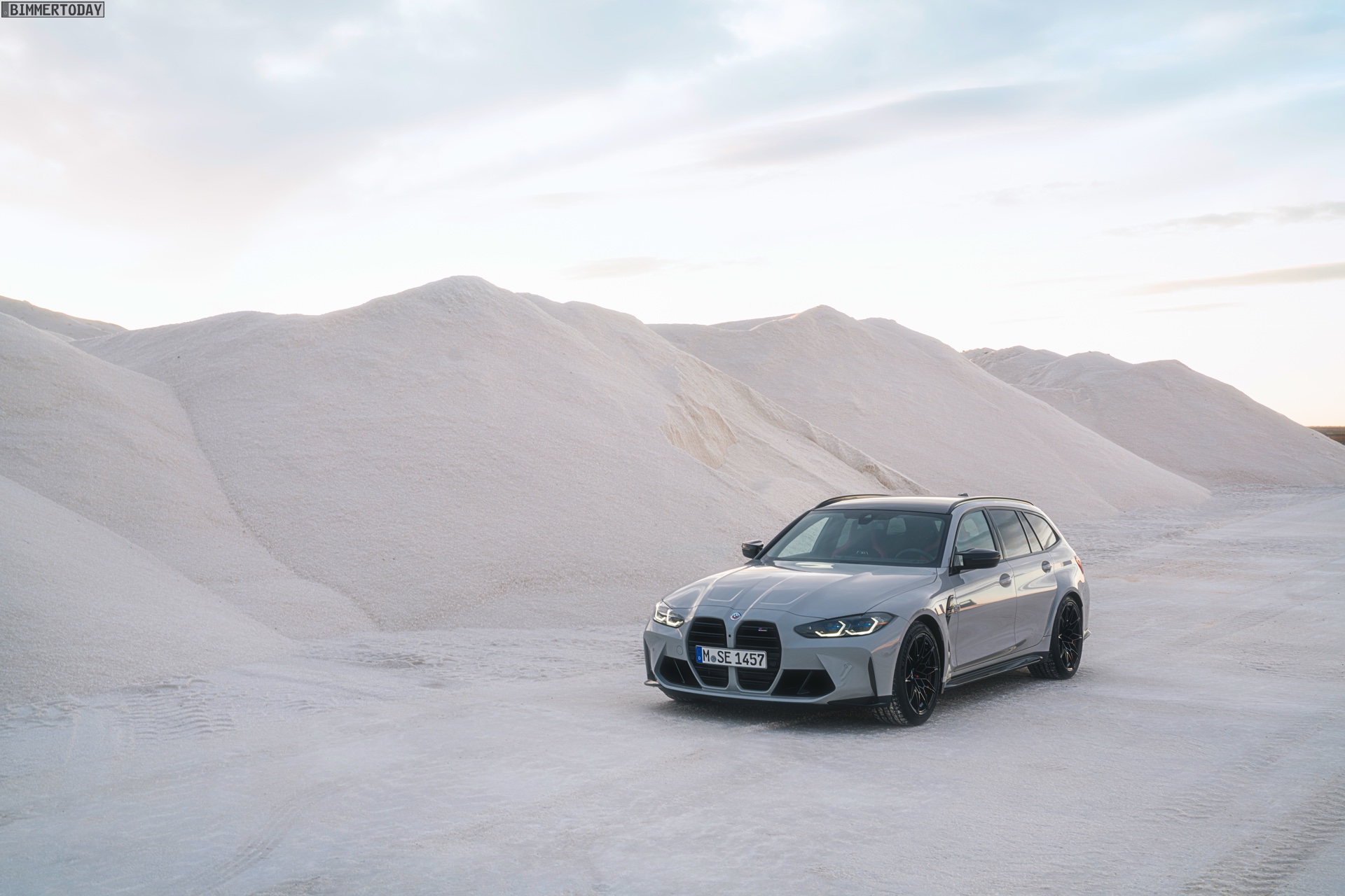 Anders sieht es beim Design des Power-Kombis aus, denn jetzt gibt es endlich offizielle Bilder zum BMW M3 Touring (G81). Auf den ersten Fotos sehen wir die Garchinger Interpretation des aktuellen 3er Touring (G21 LCI) mit Individual-Lackierung in Kreide, aber spannender als die Farbe ist in diesem Fall natürlich das Heck – und dessen Anblick überzeugt auf ganzer Linie: Die deutlich verbreiterten Kotflügel harmonieren perfekt mit dem Kombi-Heck, auch der dunkel abgesetzte Diffusor und die vier mächtigen Endrohre sind erstklassig integriert. Eher dezent fällt die zusätzliche Spoilerlippe auf dem Dachkanten-Spoiler aus, die den Abtrieb an der Hinterachse im Hochgeschwindigkeits-Bereich noch ein wenig erhöht. An der Front gleicht der BMW M3 Touring wie erwartet der M3 Limousine (G80).