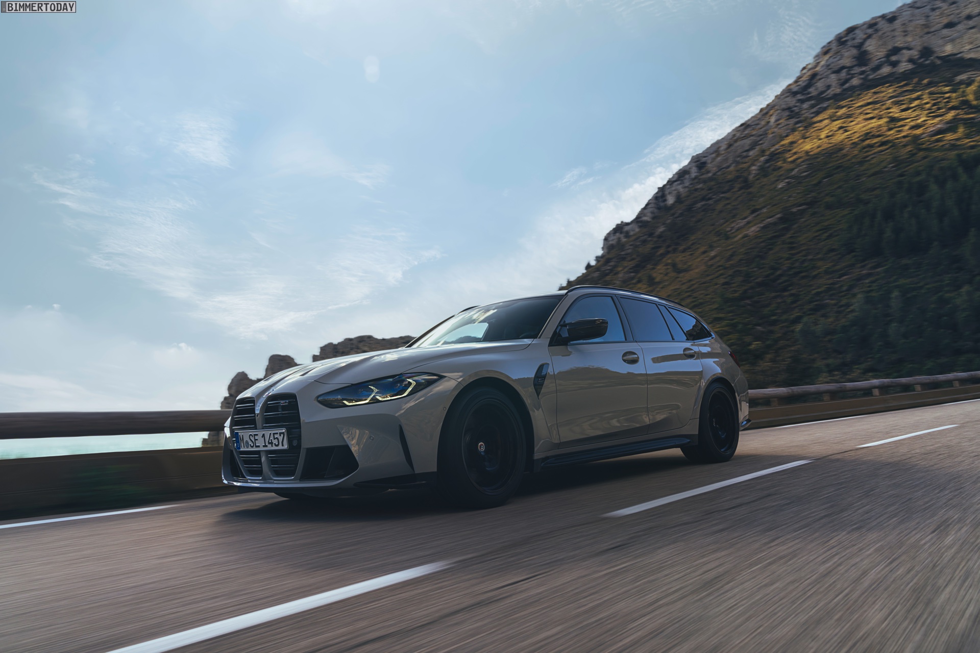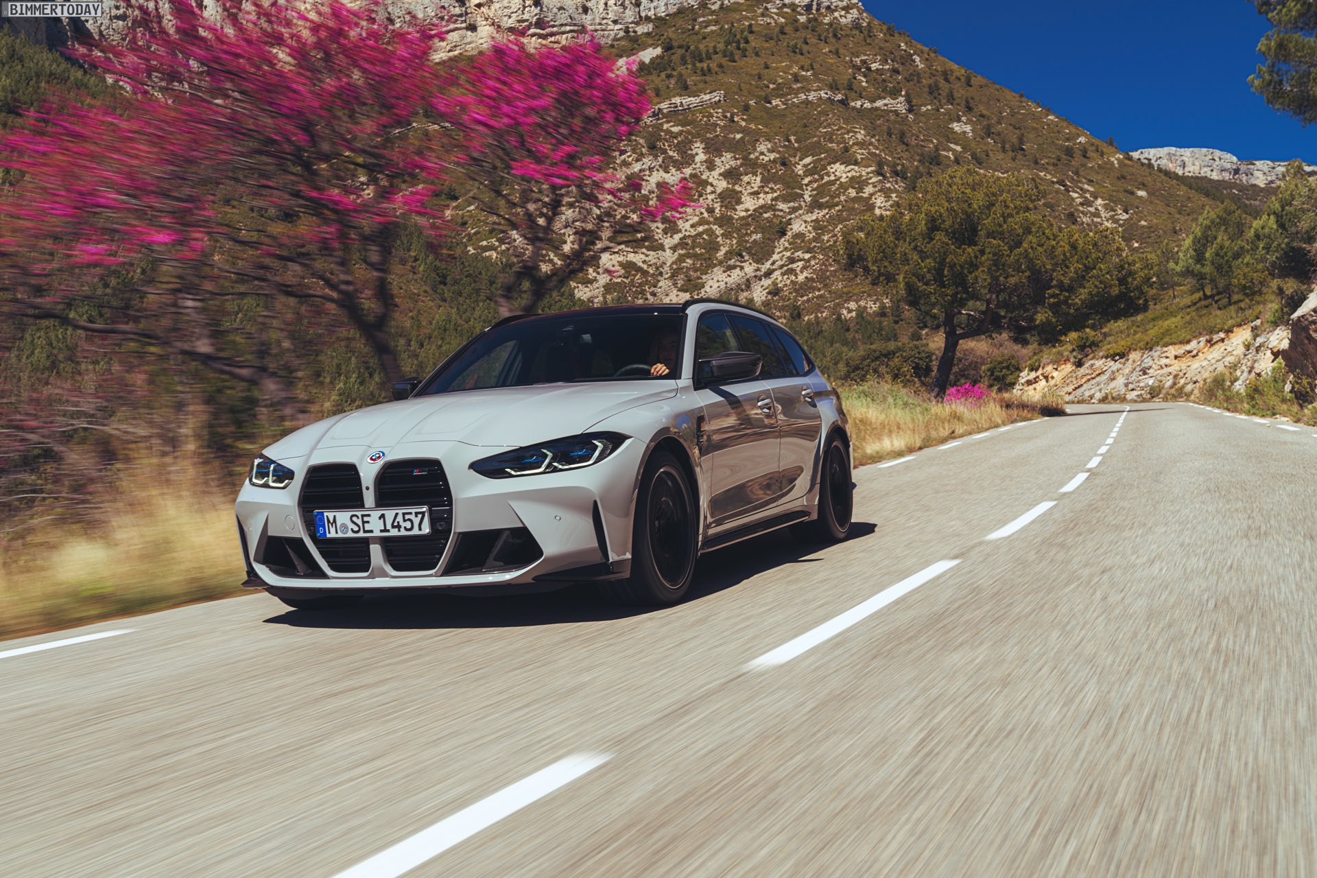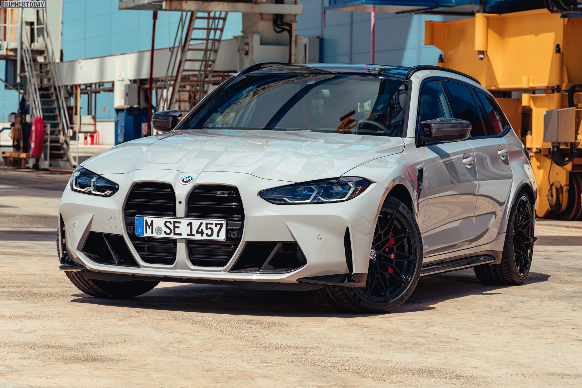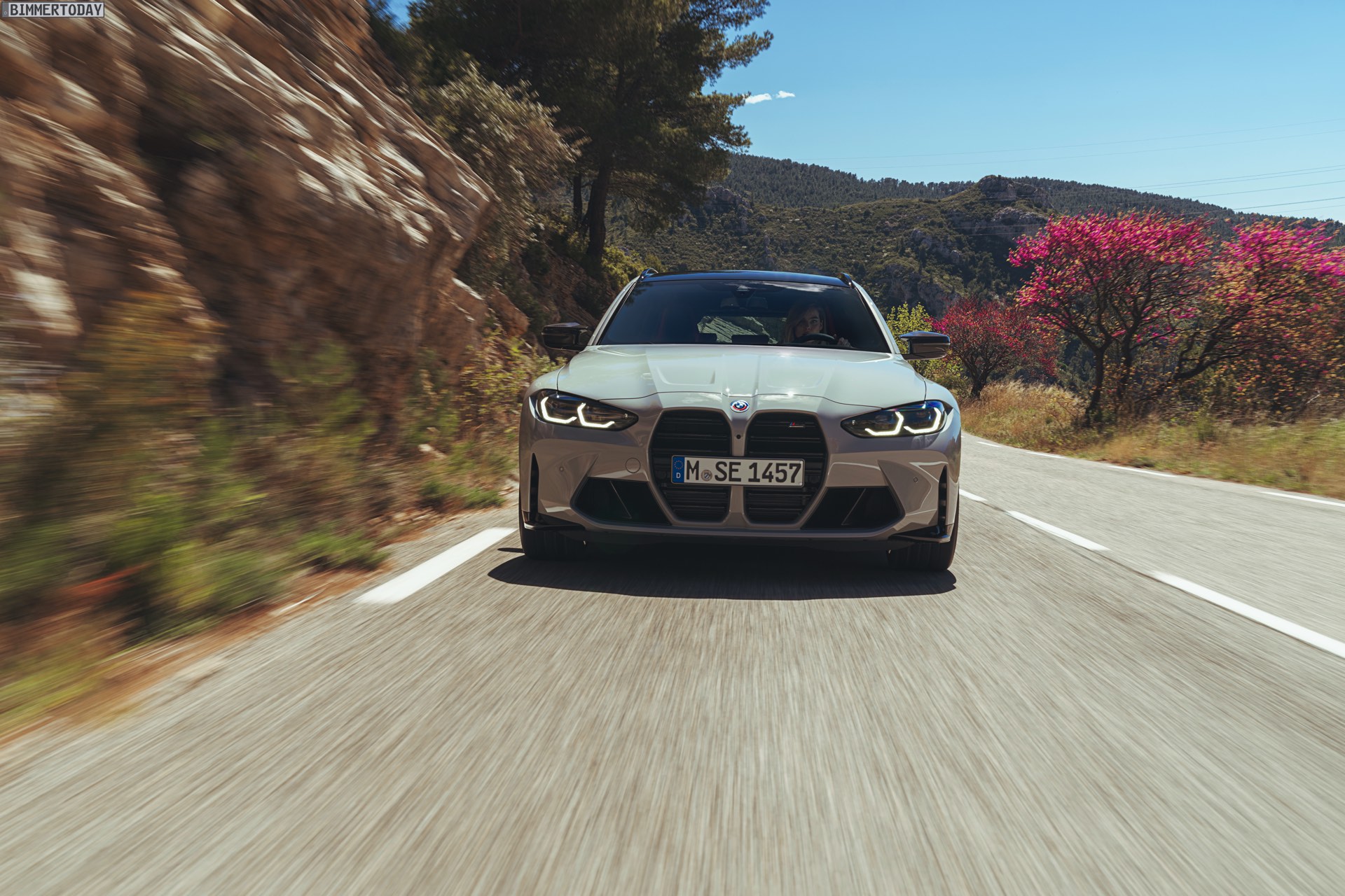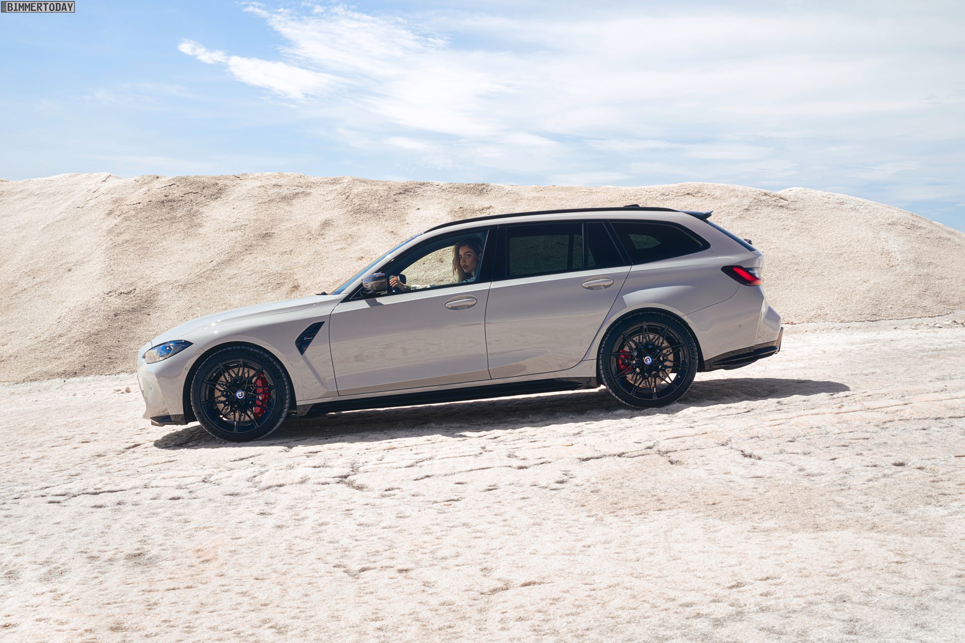 Anders sieht es beim Design des Power-Kombis aus, denn jetzt gibt es endlich offizielle Bilder zum BMW M3 Touring (G81). Auf den ersten Fotos sehen wir die Garchinger Interpretation des aktuellen 3er Touring (G21 LCI) mit Individual-Lackierung in Kreide, aber spannender als die Farbe ist in diesem Fall natürlich das Heck – und dessen Anblick überzeugt auf ganzer Linie: Die deutlich verbreiterten Kotflügel harmonieren perfekt mit dem Kombi-Heck, auch der dunkel abgesetzte Diffusor und die vier mächtigen Endrohre sind erstklassig integriert. Eher dezent fällt die zusätzliche Spoilerlippe auf dem Dachkanten-Spoiler aus, die den Abtrieb an der Hinterachse im Hochgeschwindigkeits-Bereich noch ein wenig erhöht. An der Front gleicht der BMW M3 Touring wie erwartet der M3 Limousine (G80).