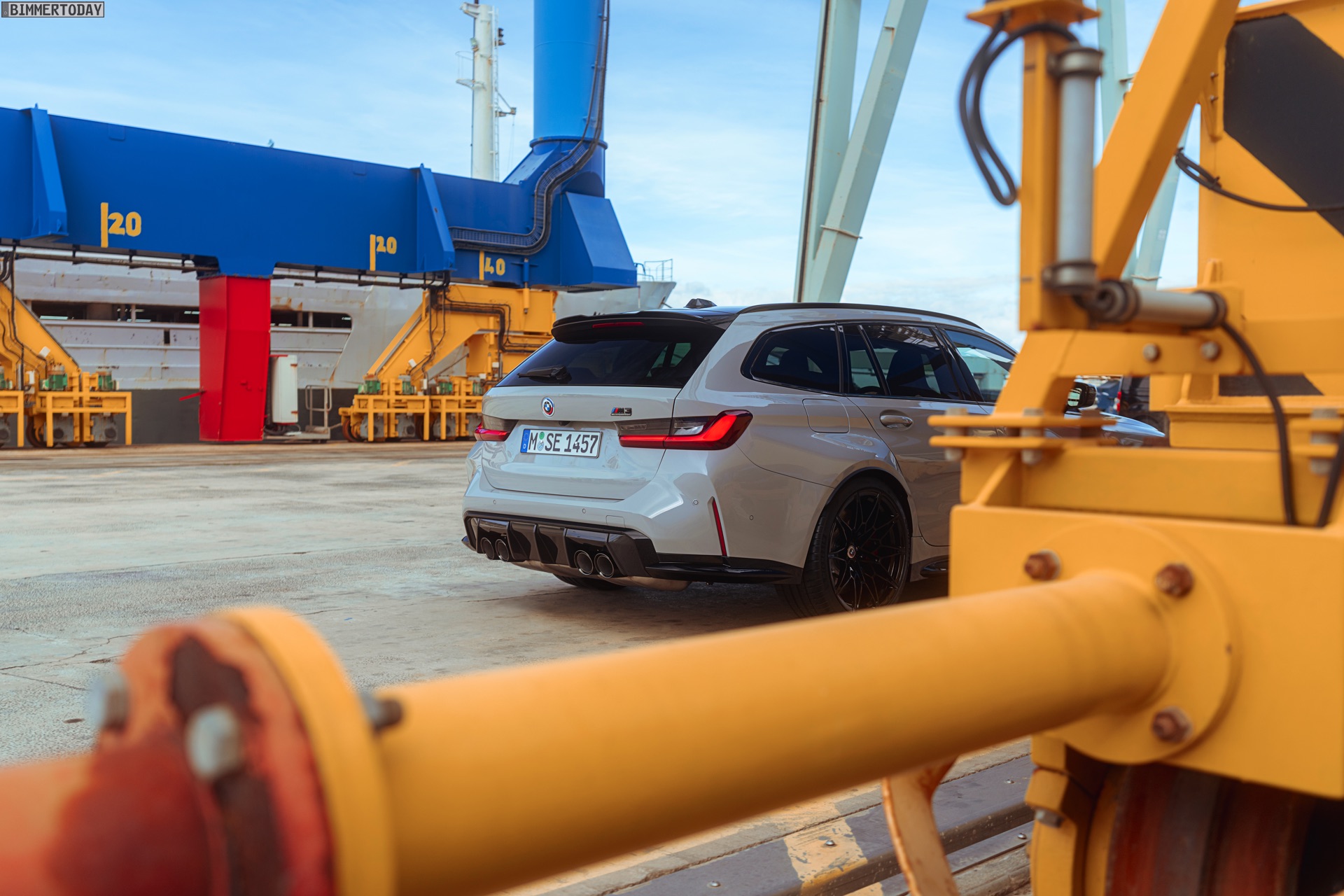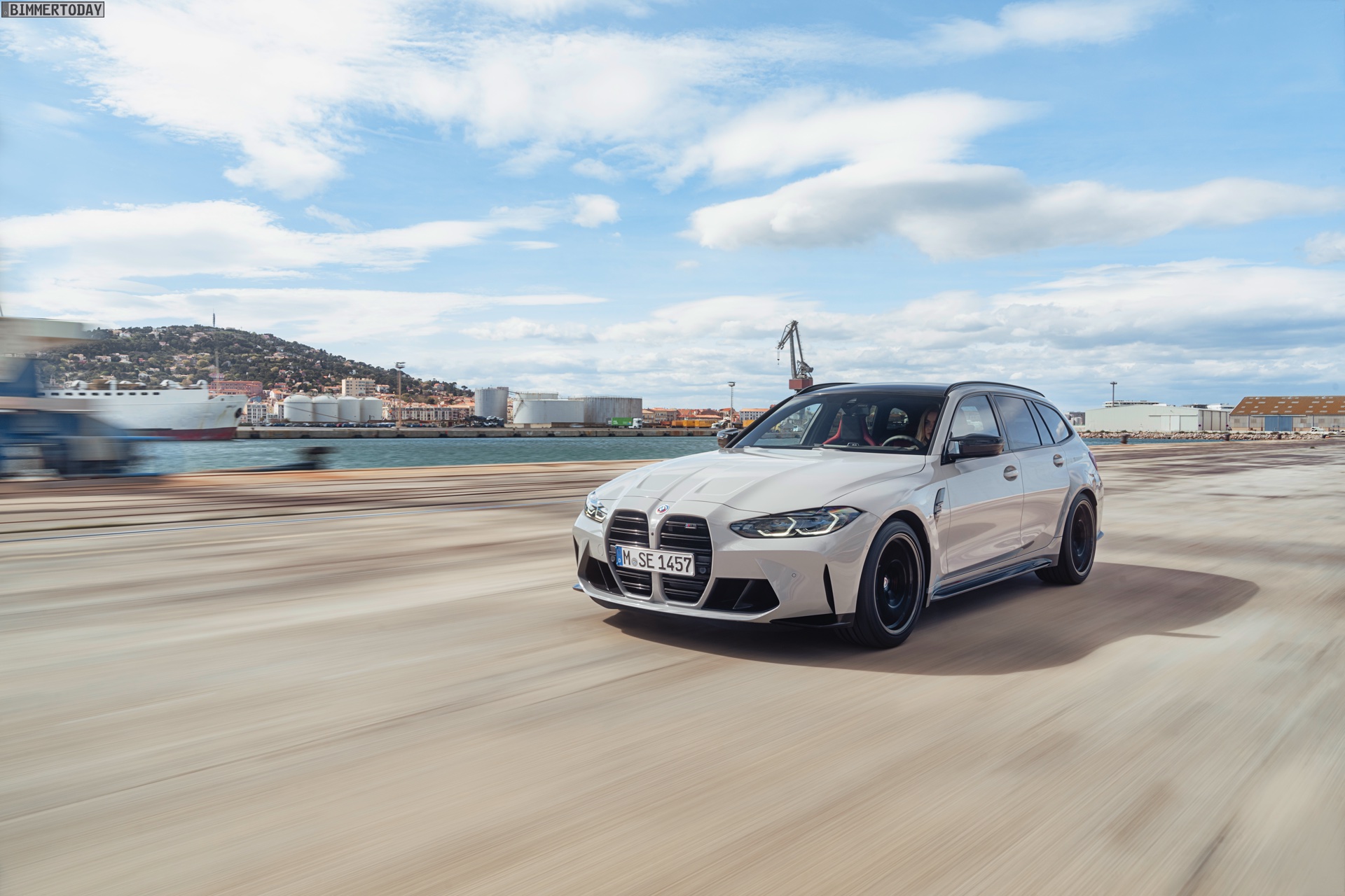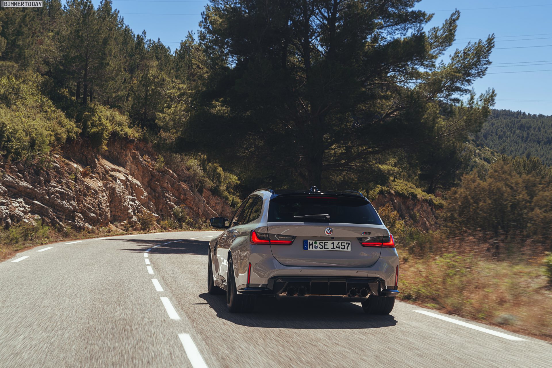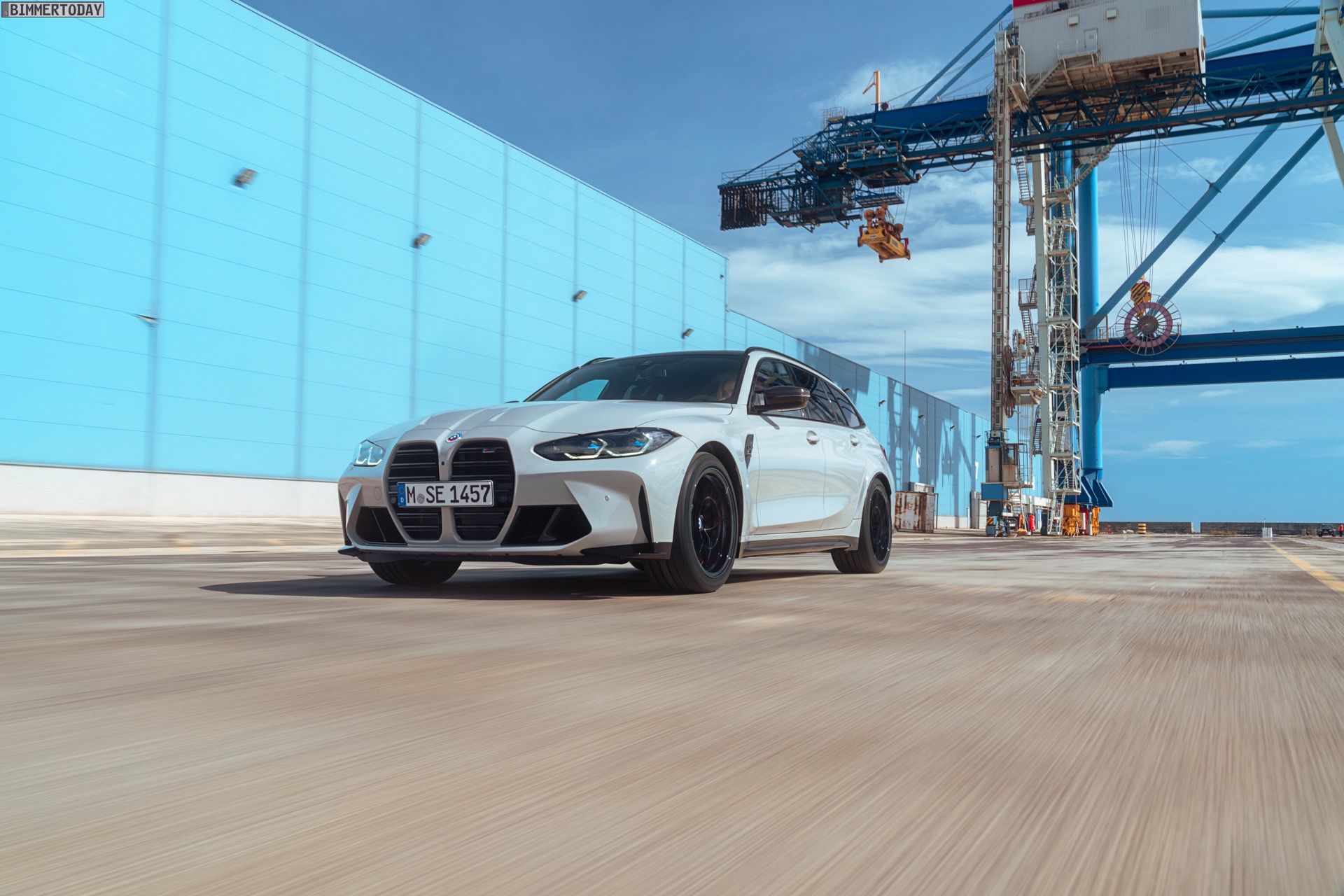 Anders sieht es beim Design des Power-Kombis aus, denn jetzt gibt es endlich offizielle Bilder zum BMW M3 Touring (G81). Auf den ersten Fotos sehen wir die Garchinger Interpretation des aktuellen 3er Touring (G21 LCI) mit Individual-Lackierung in Kreide, aber spannender als die Farbe ist in diesem Fall natürlich das Heck – und dessen Anblick überzeugt auf ganzer Linie: Die deutlich verbreiterten Kotflügel harmonieren perfekt mit dem Kombi-Heck, auch der dunkel abgesetzte Diffusor und die vier mächtigen Endrohre sind erstklassig integriert. Eher dezent fällt die zusätzliche Spoilerlippe auf dem Dachkanten-Spoiler aus, die den Abtrieb an der Hinterachse im Hochgeschwindigkeits-Bereich noch ein wenig erhöht. An der Front gleicht der BMW M3 Touring wie erwartet der M3 Limousine (G80).