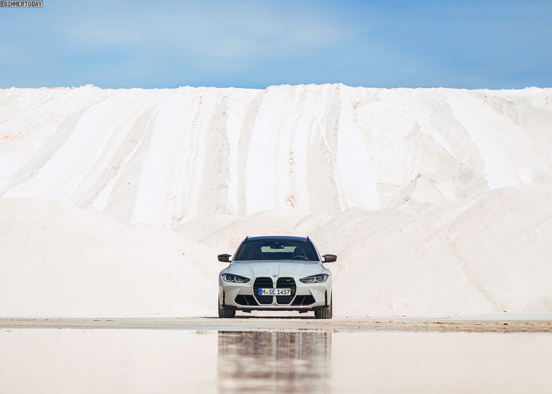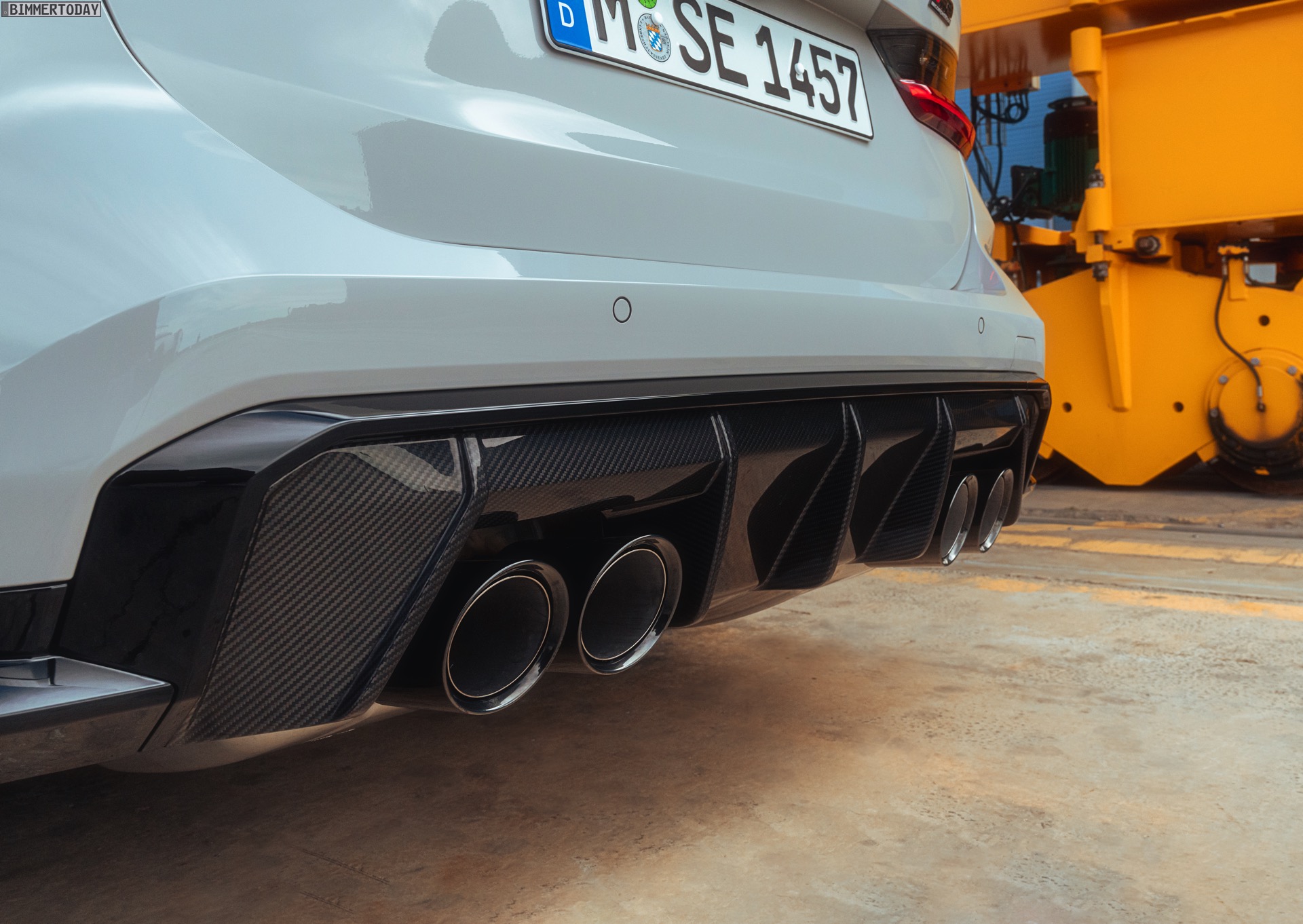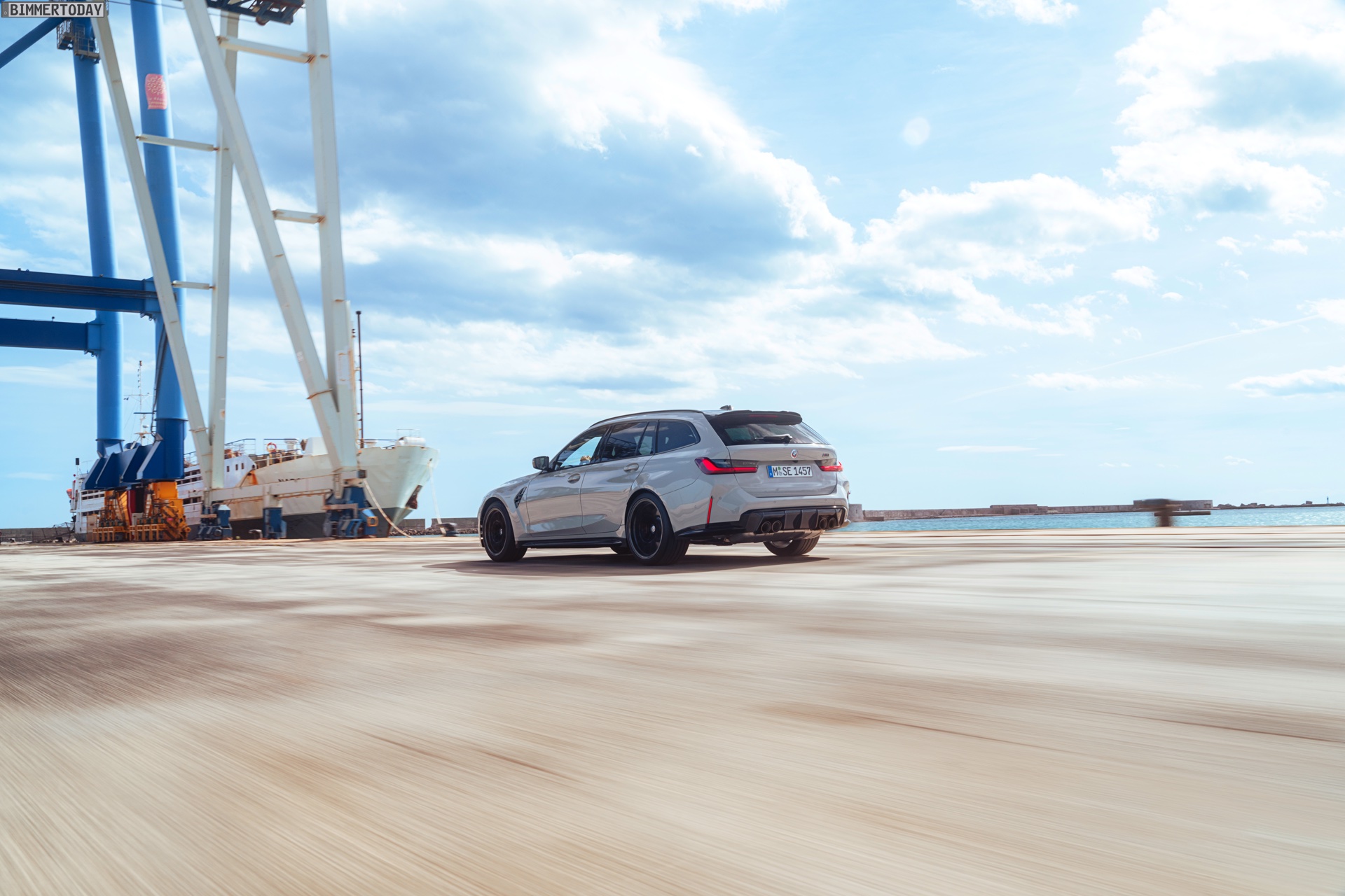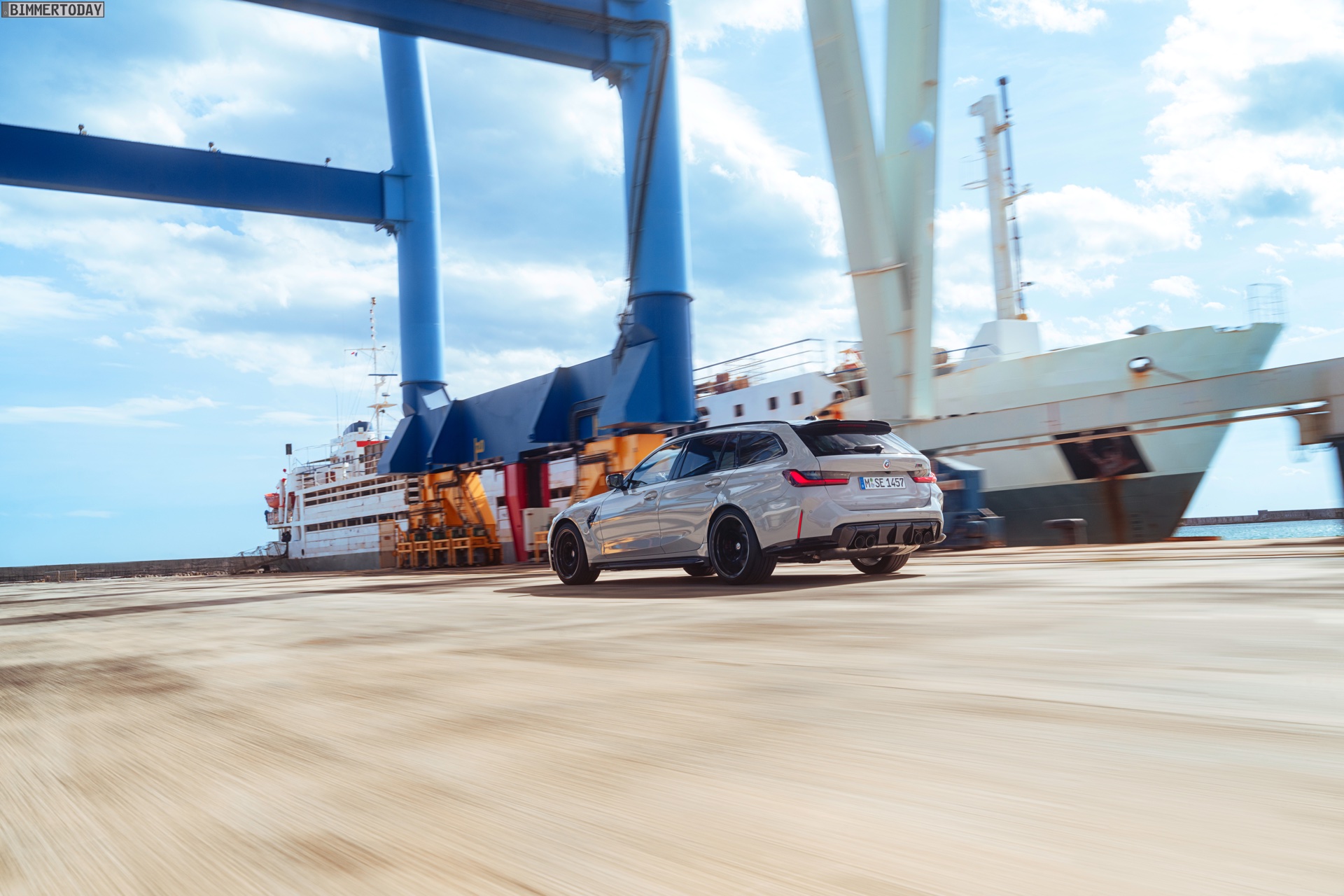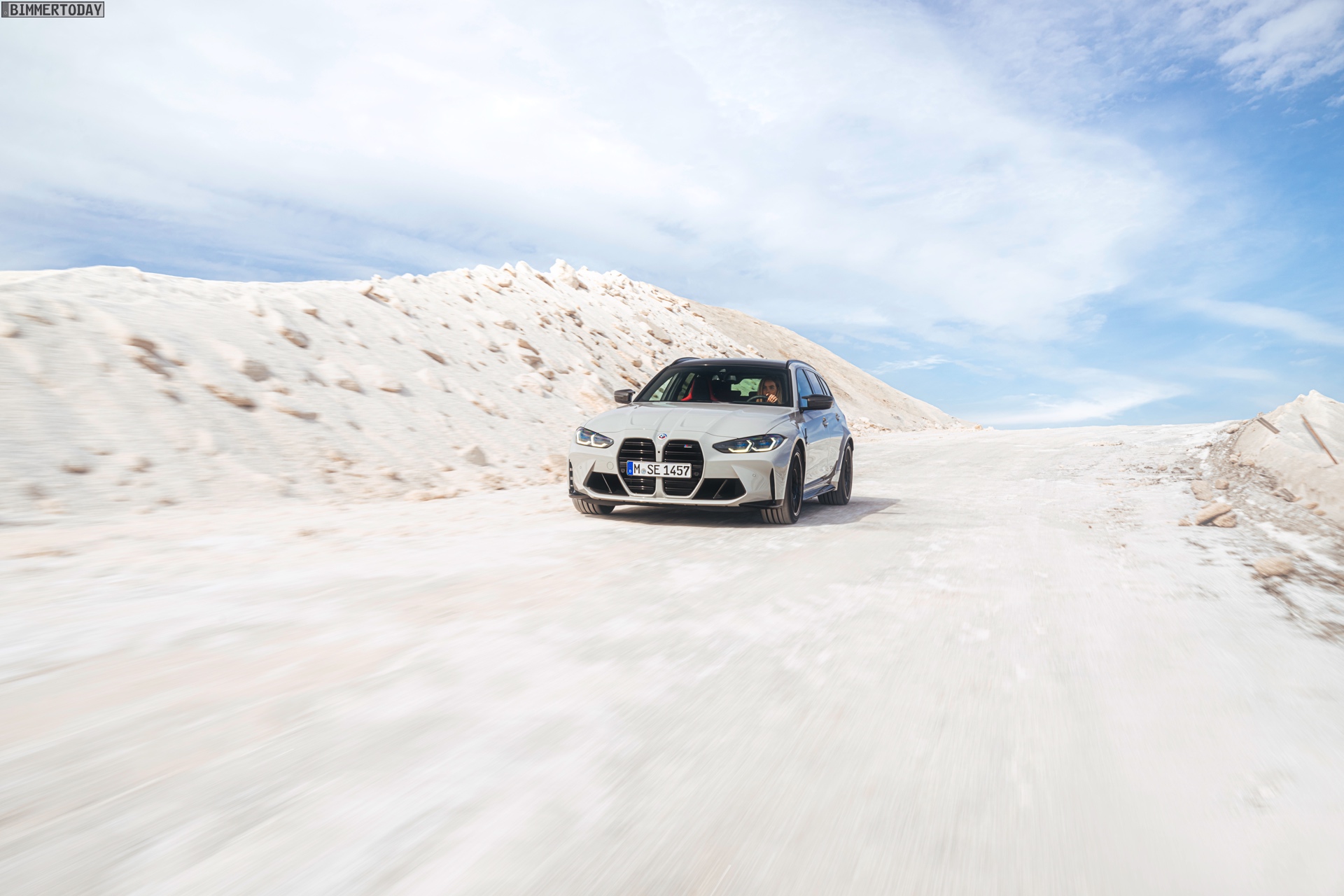 Anders sieht es beim Design des Power-Kombis aus, denn jetzt gibt es endlich offizielle Bilder zum BMW M3 Touring (G81). Auf den ersten Fotos sehen wir die Garchinger Interpretation des aktuellen 3er Touring (G21 LCI) mit Individual-Lackierung in Kreide, aber spannender als die Farbe ist in diesem Fall natürlich das Heck – und dessen Anblick überzeugt auf ganzer Linie: Die deutlich verbreiterten Kotflügel harmonieren perfekt mit dem Kombi-Heck, auch der dunkel abgesetzte Diffusor und die vier mächtigen Endrohre sind erstklassig integriert. Eher dezent fällt die zusätzliche Spoilerlippe auf dem Dachkanten-Spoiler aus, die den Abtrieb an der Hinterachse im Hochgeschwindigkeits-Bereich noch ein wenig erhöht. An der Front gleicht der BMW M3 Touring wie erwartet der M3 Limousine (G80).