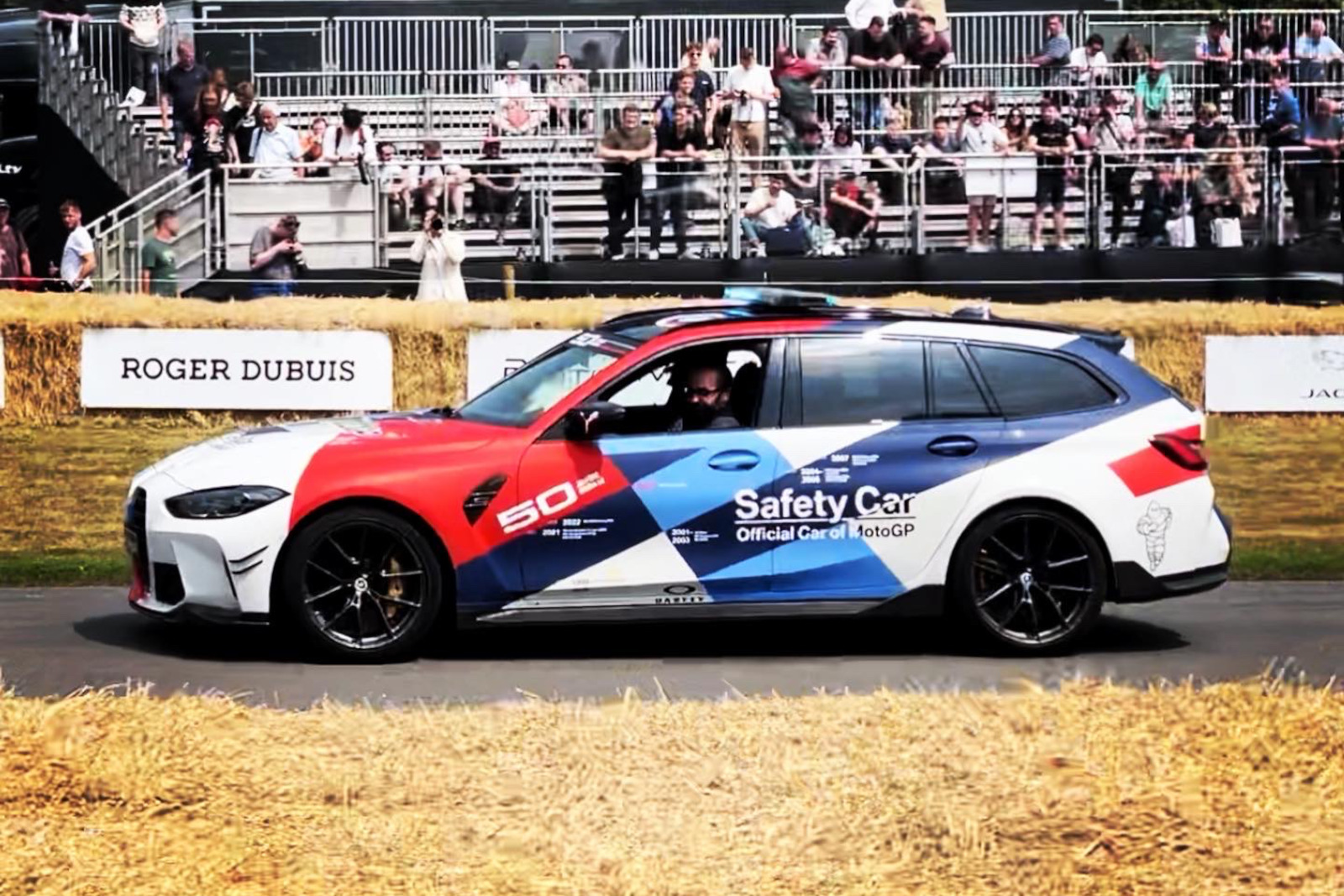 Franciscus van Meel (Geschäftsführer der BMW M GmbH): “Die Weltpremiere des neuen BMW M3 Touring ist ein weiteres Highlight in unserem Jubiläumsjahr, denn zum allerersten Mal in unserer 50-jährigen Geschichte präsentieren wir einen BMW M3 als Touring Modell. Da ist es für uns naheliegend, dieses neue High-Performance-Automobil auch in unsere Flotte von MotoGP Safety Cars aufzunehmen. In unserer jahrzehntelangen Partnerschaft mit MotoGP-Rechteinhaber Dorna Sports war es für uns immer von größter Bedeutung, die neuesten BMW M Modelle in den Dienst der Sicherheit an der Rennstrecke zu stellen, und mit dem BMW M3 Touring MotoGP Safety Car setzen wir diese Tradition fort. Wir freuen uns schon sehr darauf, seine Performance beim legendären Hillclimb in Goodwood zu erleben und dann später im Rennstrecken-Einsatz in der Königsklasse des Motorradrennsports.”