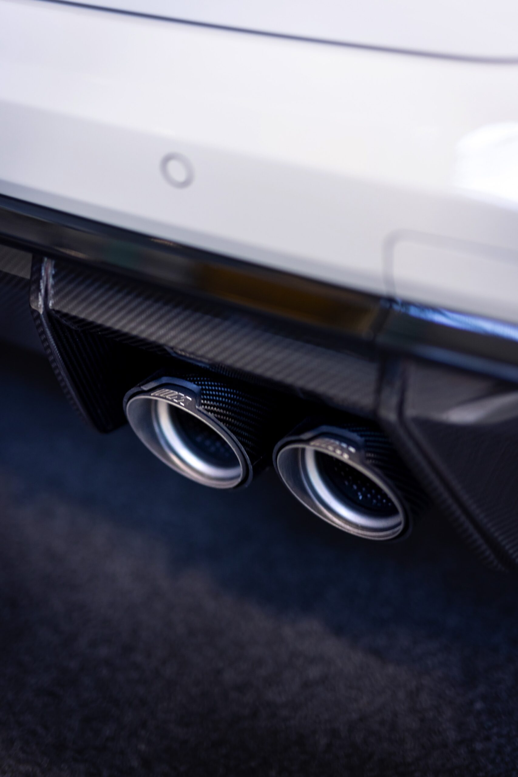 Hinzu kommen eine Vielzahl von Anbauteilen aus Carbon, die sich auch auf die Aerodynamik des Kombis auswirken: Angefangen mit Aufsätzen für Frontspoiler und Seitenschweller über kleine Finnen vor den Vorderrädern bis hin zu den seitlichen Finnen am äußersten Rand der Heckscheibe gibt es diverse Optionen, um die Sportlichkeit des BMW M3 Touring zusätzlich zu betonen. Carbon-Blenden für die vier Endrohre dürfen dabei natürlich ebenfalls nicht fehlen – und wer es noch krasser mag, kann auch die bereits am MotoGP G81 Safety Car präsentierte M Performance Abgasanlage mit trapezförmiger Endrohr-Anordnung für den Kombi bestellen.