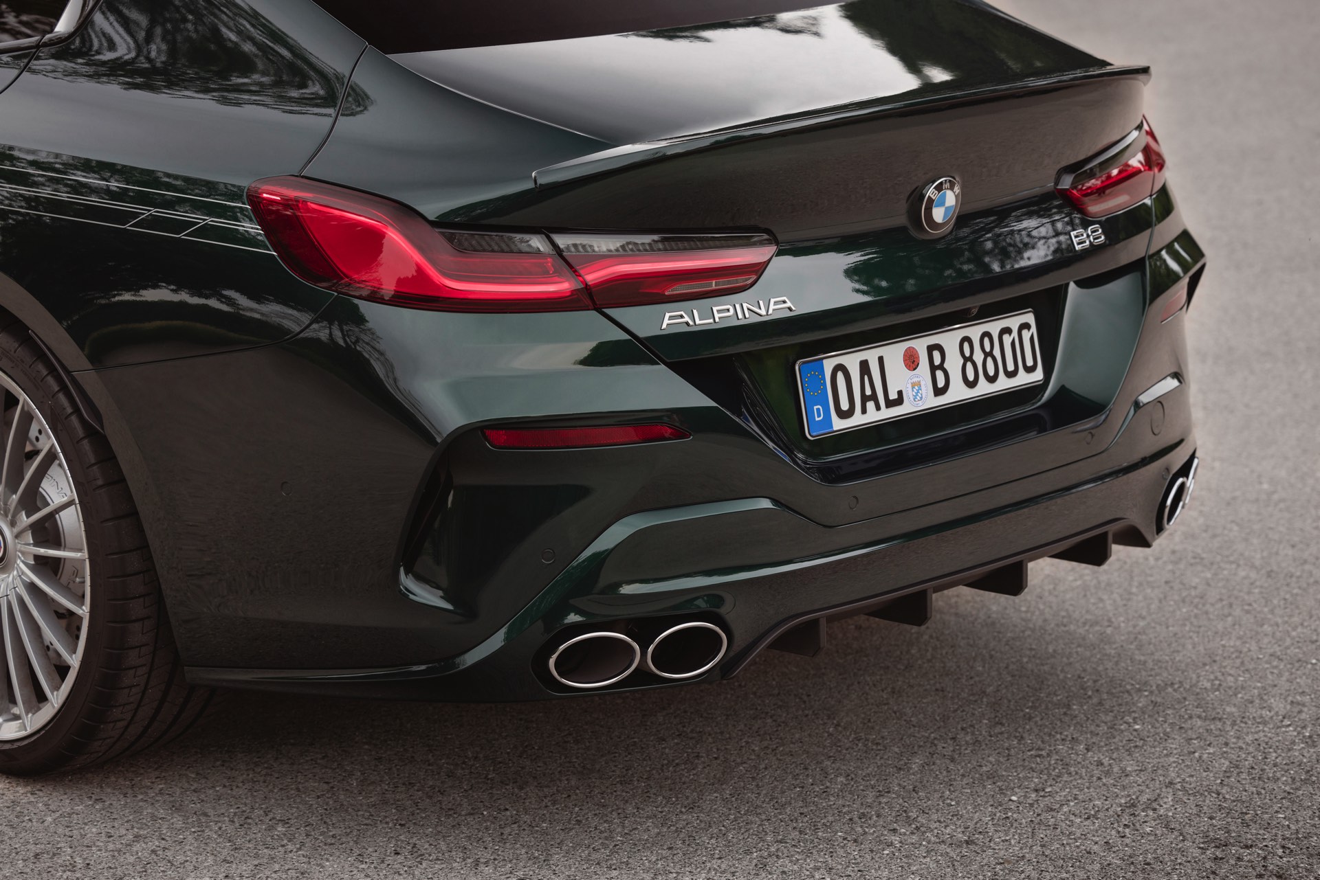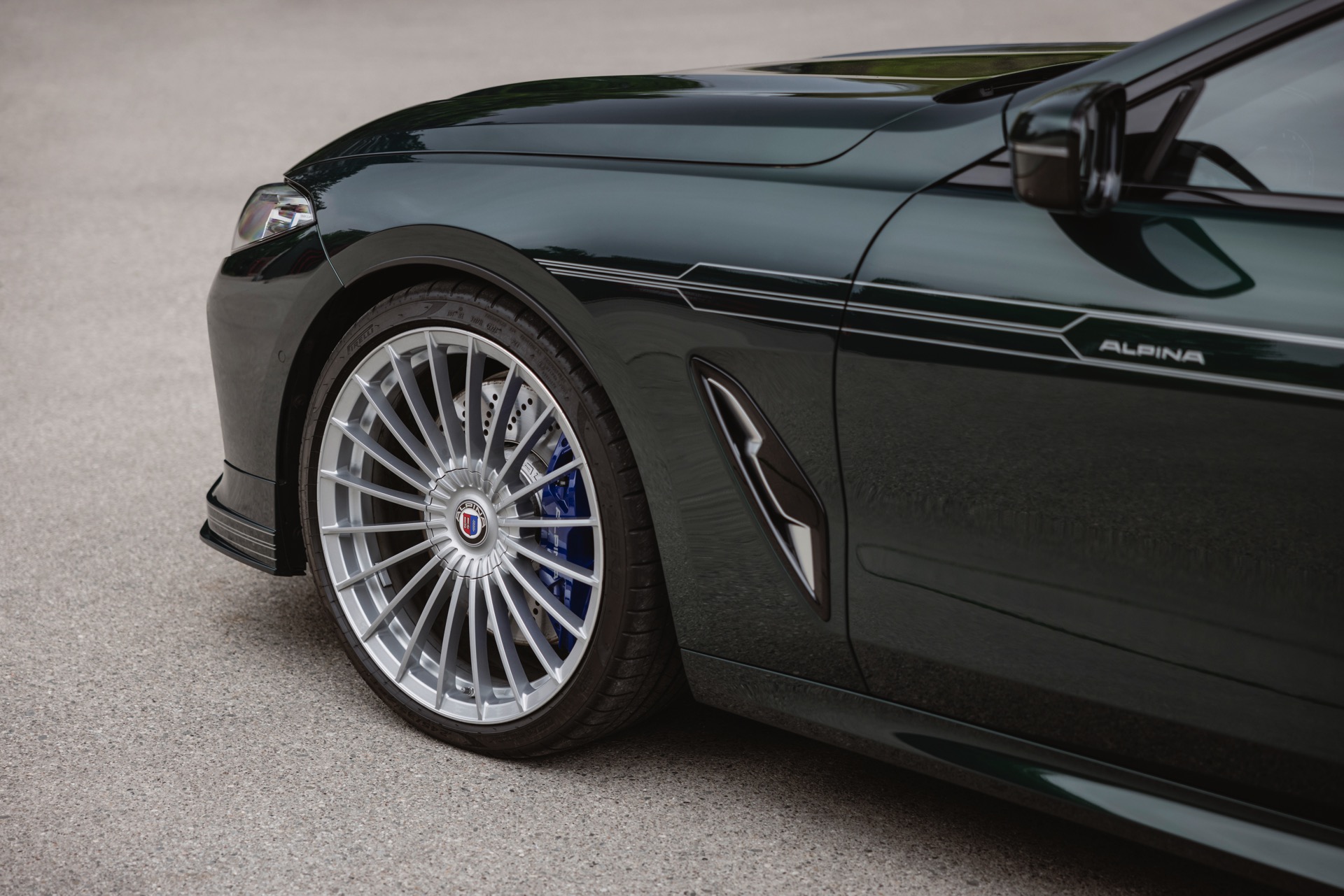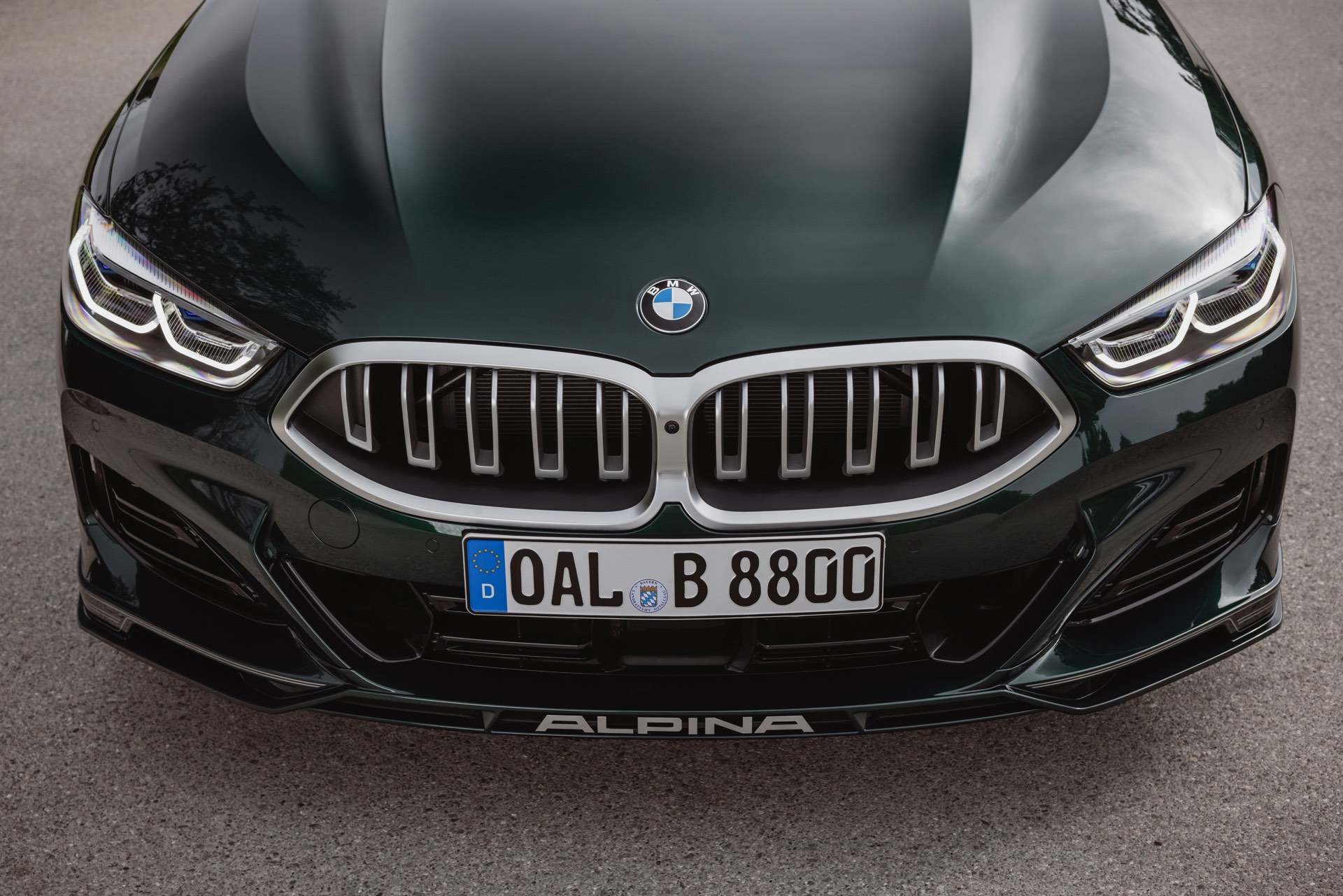 Genau wie alle anderen 8er profitiert auch das BMW Alpina B8 Gran Coupé 2022 von einem Facelift, aber Bilder des aufgefrischten B8 waren bisher Mangelware. Nun legt Alpina nach und liefert einige Fotos des viertürigen Luxus-Coupés mit Lackierung in zeitlosem Alpinagrün, unumstrittener Hingucker ist aber die deutlich veränderte Doppel-Niere: Die senkrechten Streben im Inneren der verchromten Niere sind zu jeweils fünf Zweier-Paaren verbunden und sorgen für einen deutlich veränderten Look als mit den bisher verbauten Einzel-Streben. Ihre volle Wirkung entfalten die neuen Nieren aber erst bei Nacht, denn dank integrierter LEDs am oberen Rand sind die Streben dezent beleuchtet – der von einigen BMW bekannte “Iconic Glow”-Auftritt kommt nun also auch zu Alpina.