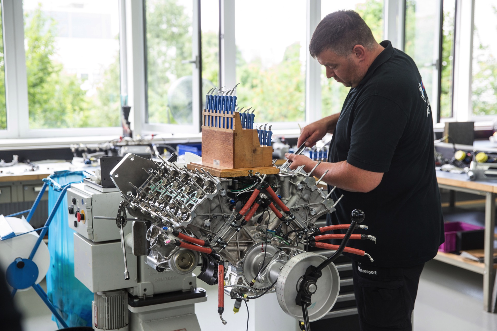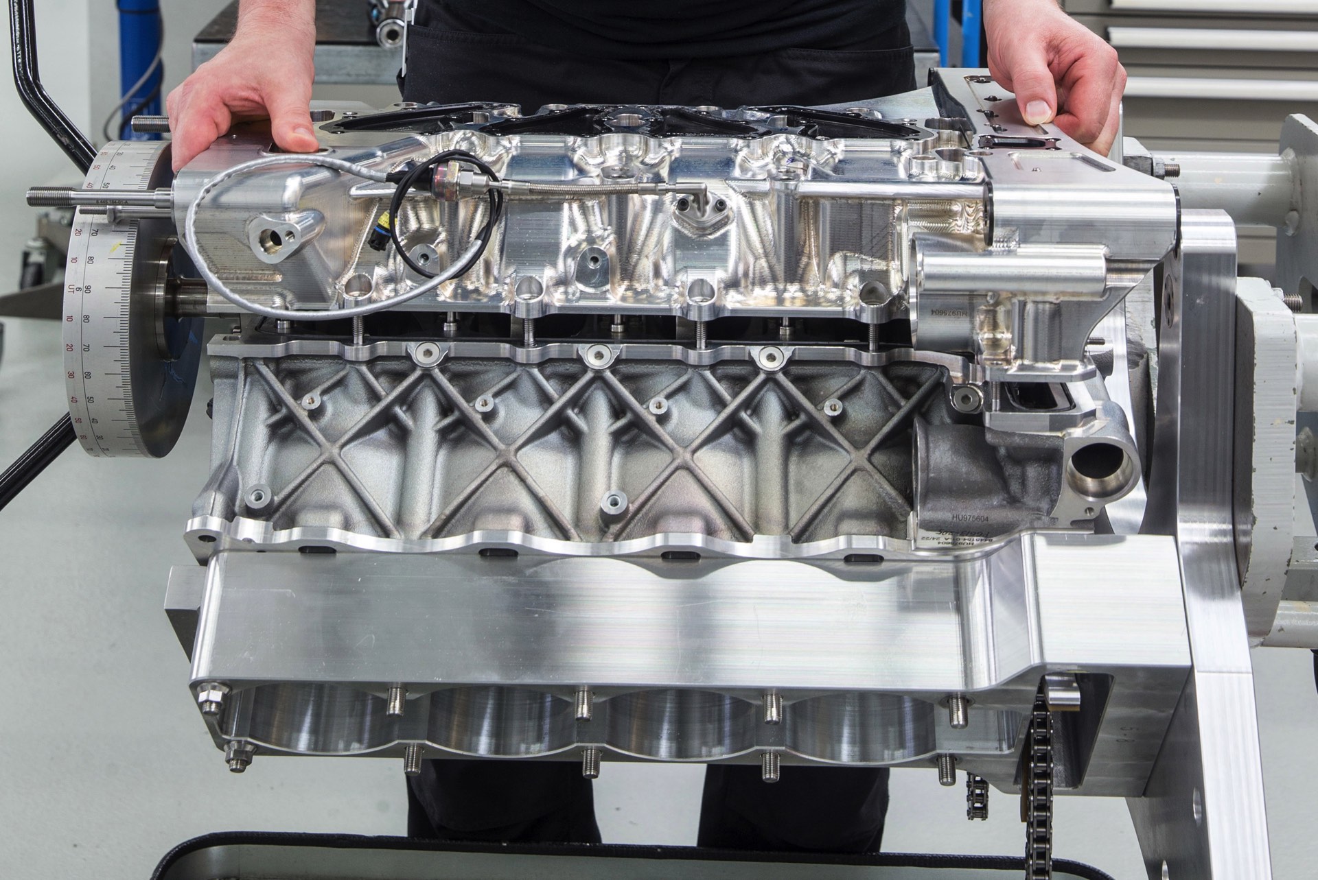 Die Entwicklung eines völlig neuen Triebwerks kam aus mehreren Gründen nicht in Frage: Sowohl die Zeit zwischen der Entscheidung zum LMDh-Projekt und dem geplanten ersten Rollout als auch der angepeilte Kostenrahmen machten eine Neuentwicklung unmöglich. Folglich war die Nutzung eines vorhandenen Triebwerks alternativlos, wobei natürlich auch die standfest zu erzielende und für eine erfolgreiche Teilnahme erforderliche Leistung eine wichtige Rolle spielte. Nach Abwägen aller Vor- und Nachteile fiel die Entscheidung gegen den Turbo-Vierzylinder P48 der Class 1-DTM von 2019/20 und auch gegen den Achtzylinder P63, der im M8 GTE zum Einsatz kam. Stattdessen wurde beschlossen, den V8-Sauger P66/1 in ein Hybrid-Triebwerk mit Direkteinspritzung und Turbo-Aufladung umzubauen.