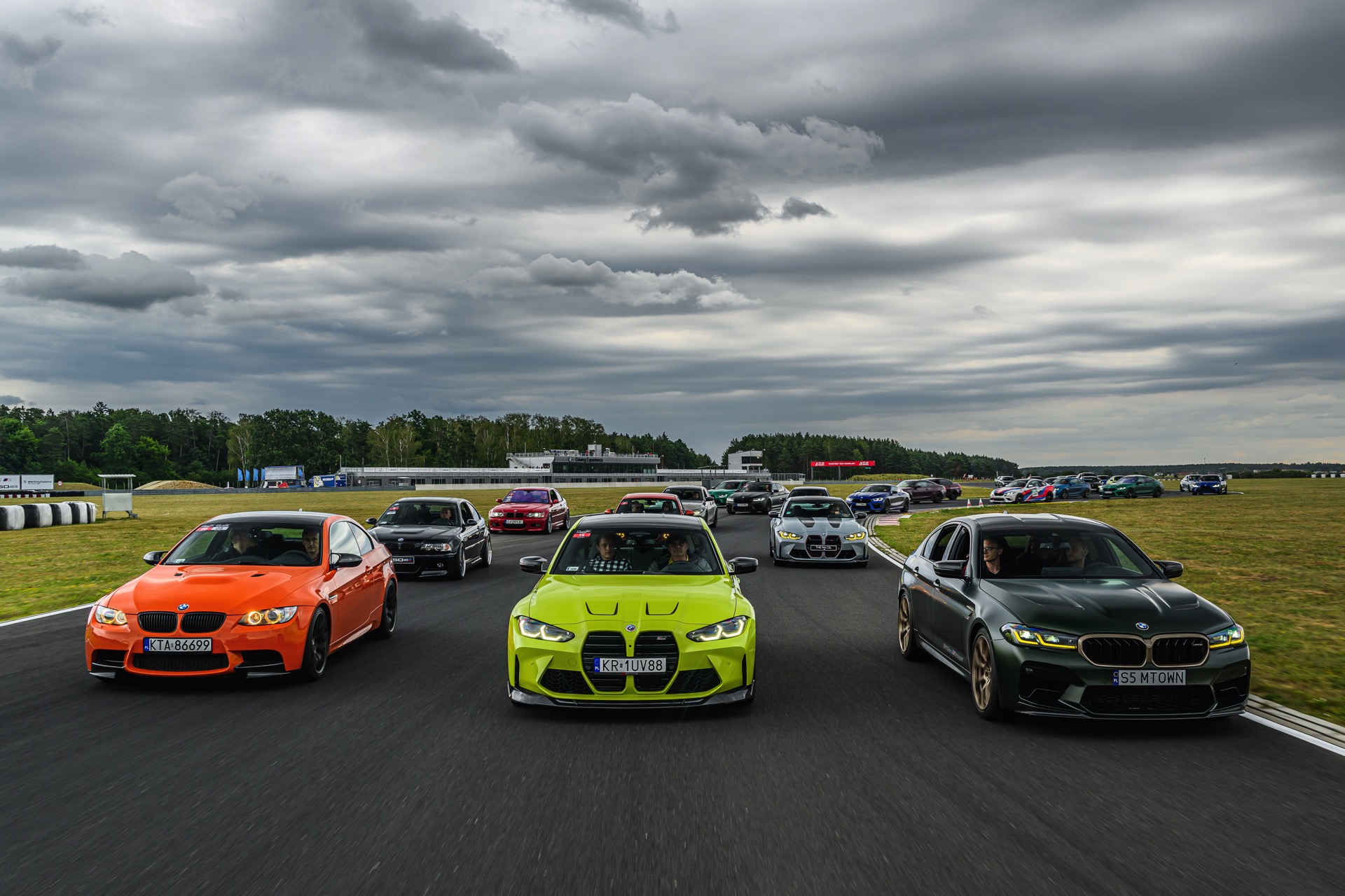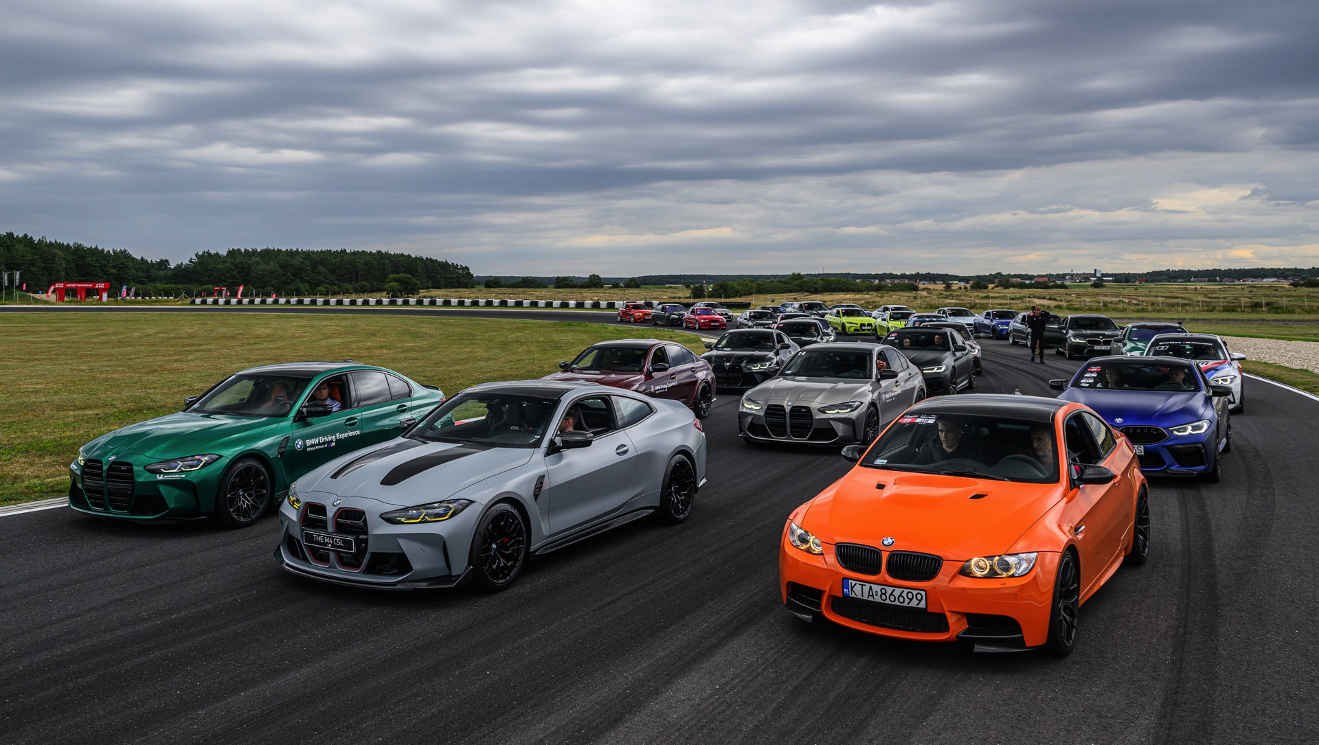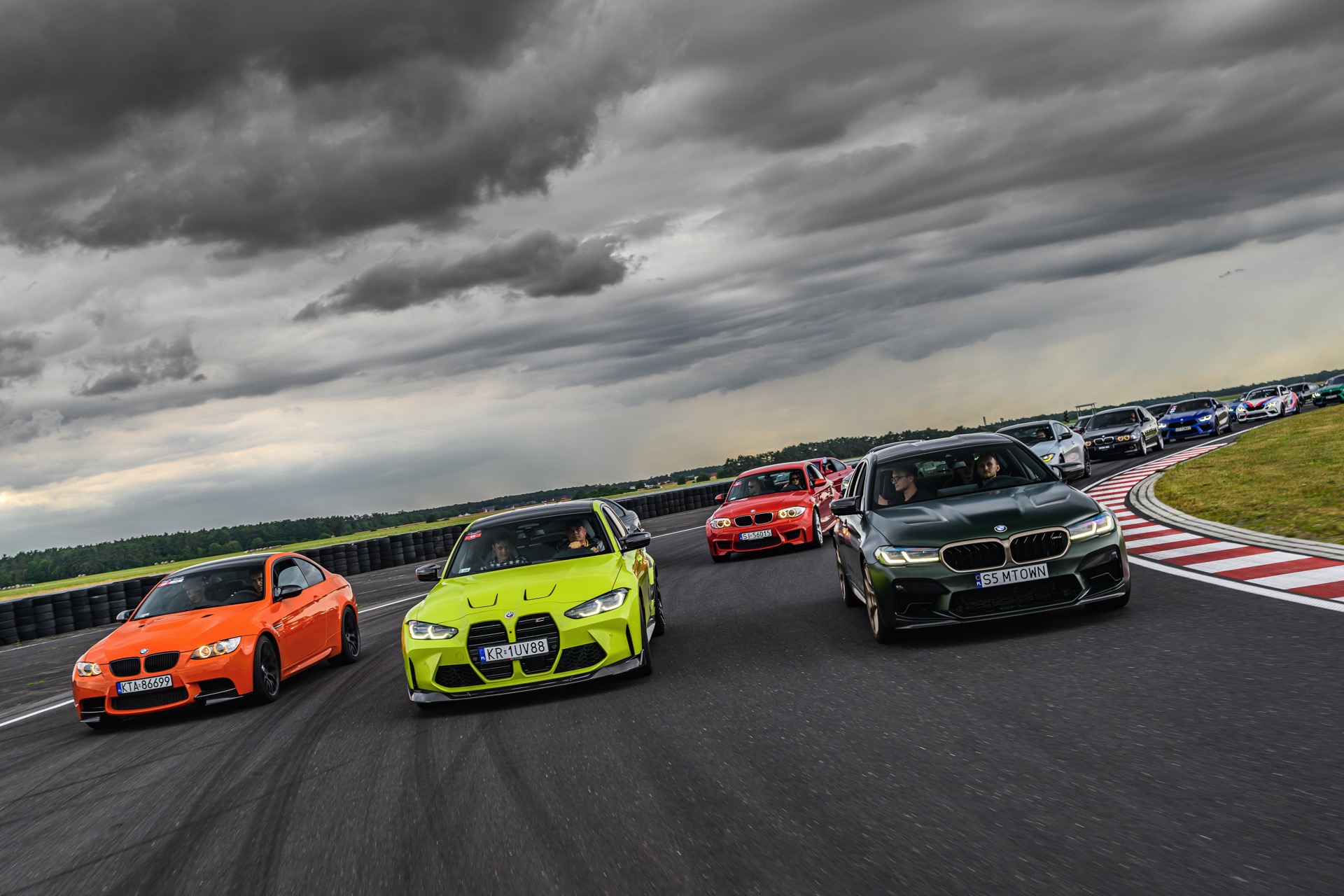 Optisch herausragend sind dabei natürlich die Fahrzeuge mit einer besonders auffälligen Lackierung, wobei sich in Polen gleich mehrere echte Highlights versammelt haben: Nur ausgesprochen selten sieht man Farben wie Feueroange, Frozen Portimao Blau, Speed Gelb, Java Green, Lichtgrün oder auch das charakteristische Frozen Deep Green des BMW M5 CS (F90 LCI) Seite an Seite. Perfekt zur Rennstrecke passt auch ein M2 Coupé mit Beklebung in den Farben von BMW Motorsport.