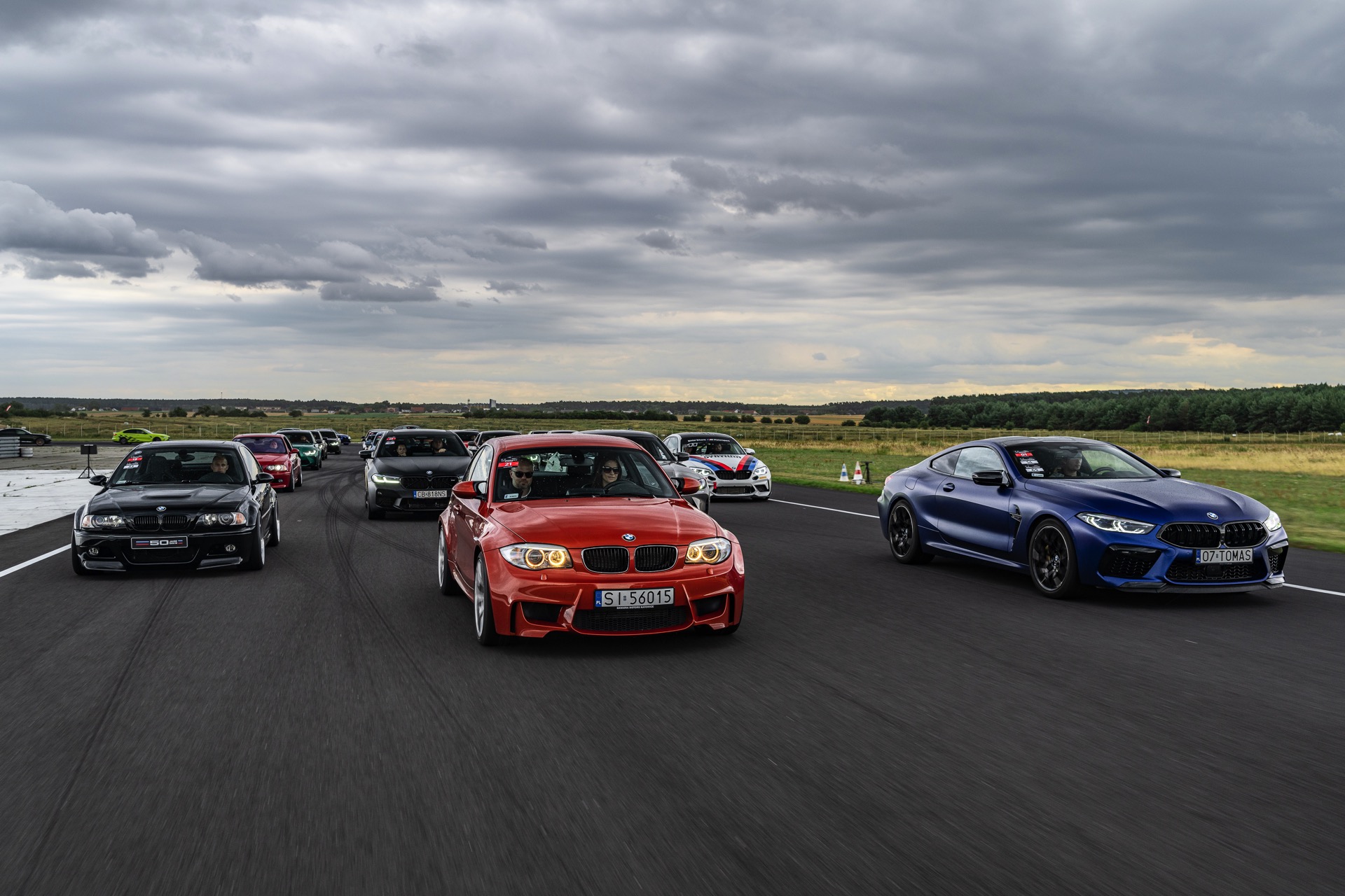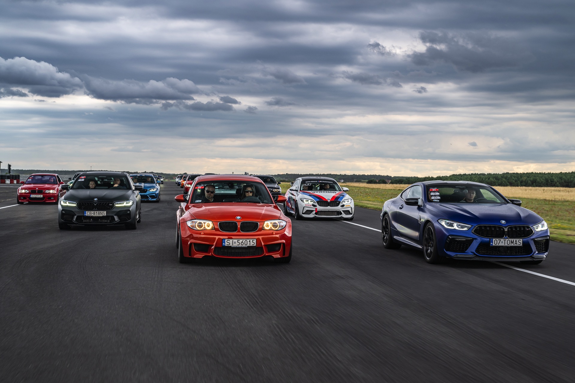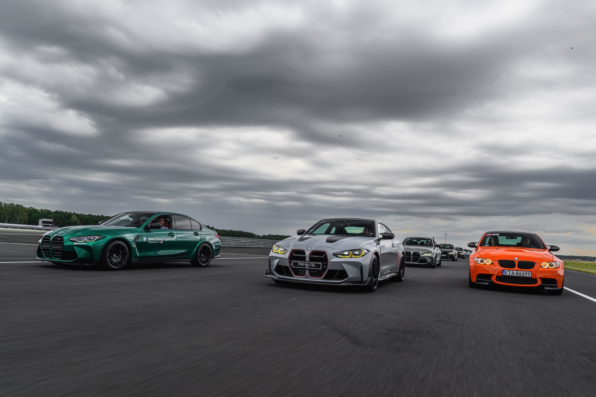 Optisch herausragend sind dabei natürlich die Fahrzeuge mit einer besonders auffälligen Lackierung, wobei sich in Polen gleich mehrere echte Highlights versammelt haben: Nur ausgesprochen selten sieht man Farben wie Feueroange, Frozen Portimao Blau, Speed Gelb, Java Green, Lichtgrün oder auch das charakteristische Frozen Deep Green des BMW M5 CS (F90 LCI) Seite an Seite. Perfekt zur Rennstrecke passt auch ein M2 Coupé mit Beklebung in den Farben von BMW Motorsport.
