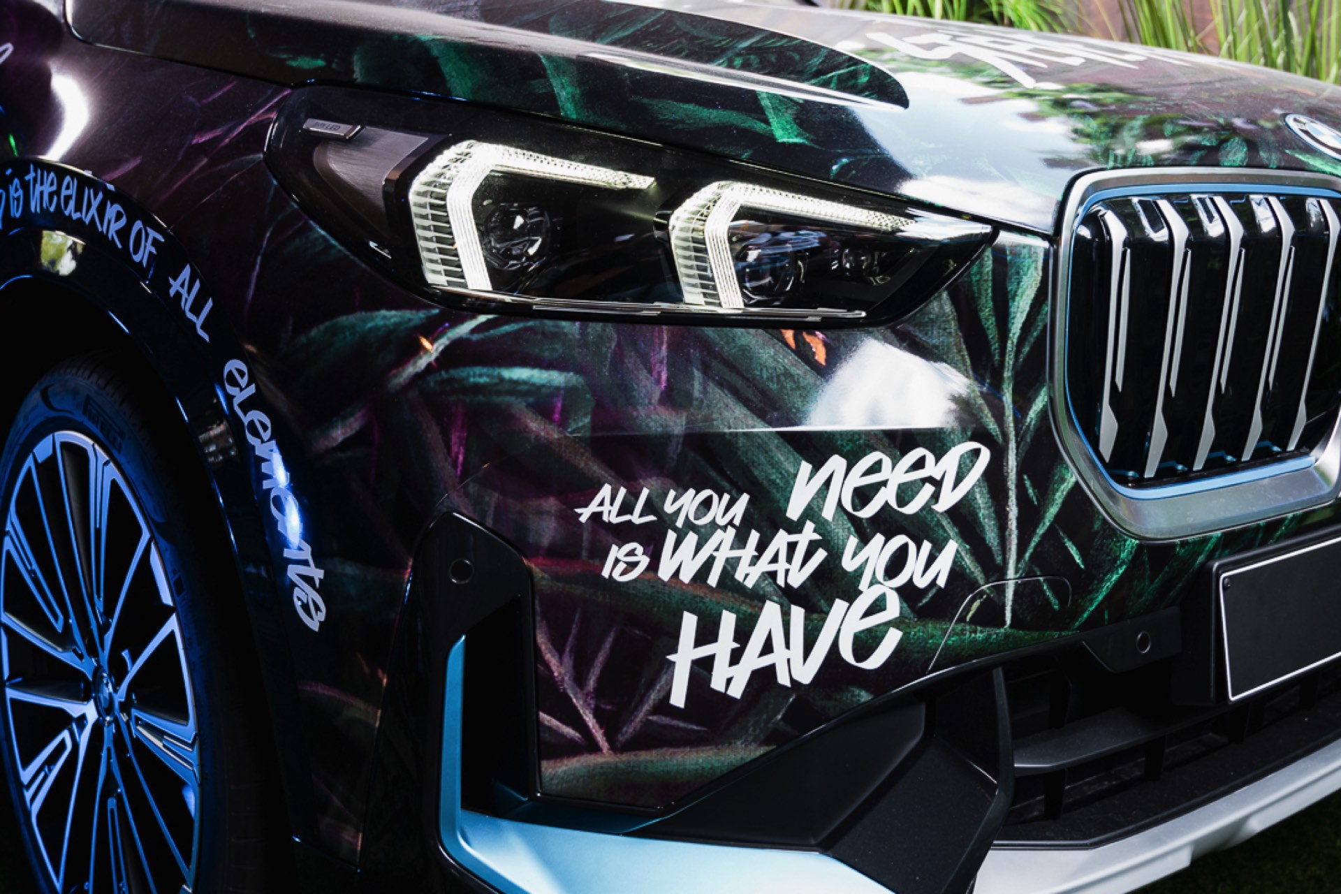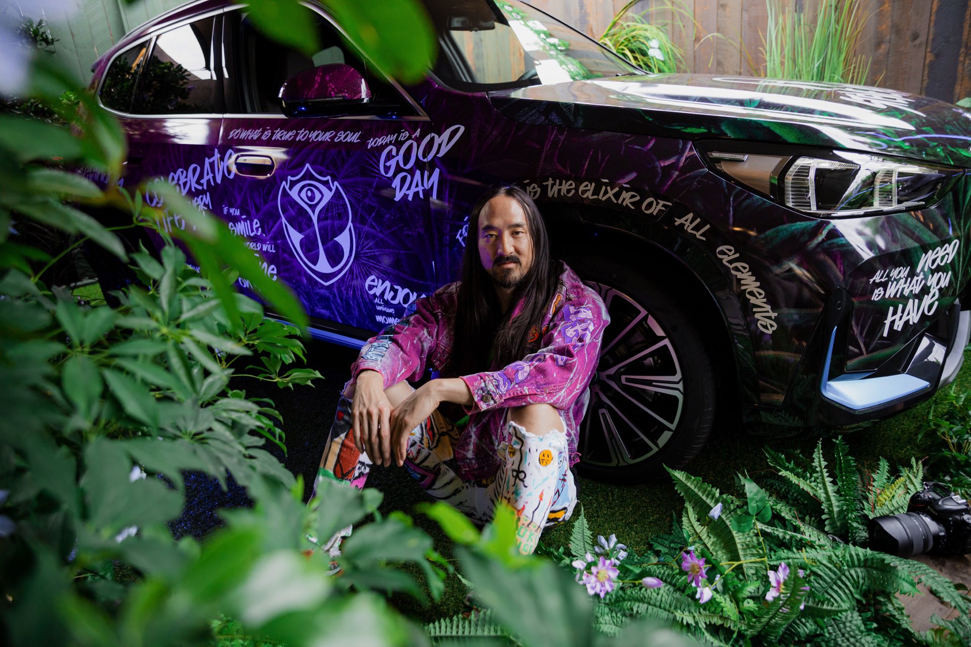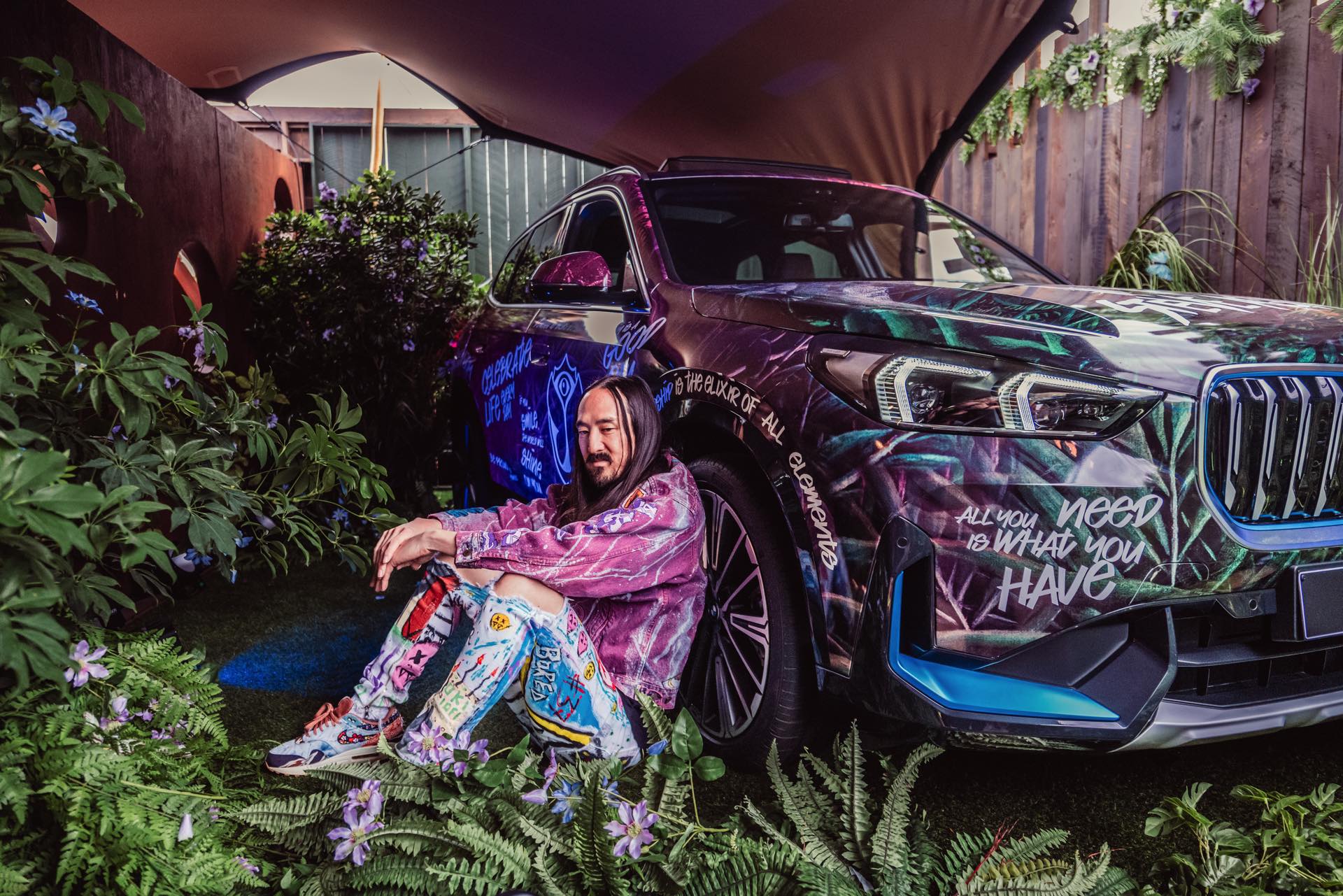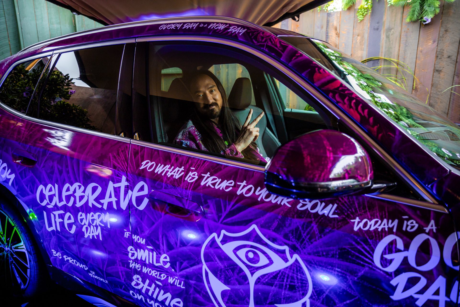Als passendes Gefährt für die Fahrt in ein besseres Morgen präsentiert sich ein von Steve Aoki gestalteter BMW iX1. Die Folierung für das Elektro-SUV wurde vom amerikanischen DJ und Modedesigner für das Tomorrowland-Festival gestaltet, damit es die Botschaften und Wünsche der Festival-Besucher transportieren und sichtbar machen kann. Die prominent platzierten “Messages of Joy” wie “All you need is what you have”, “Do what is true to your soul”, “If you smile the world will shine on you” oder “Friendship is the elixir of all elements” wurden zuvor unter dem Hashtag #unitedinjoy gesammelt.