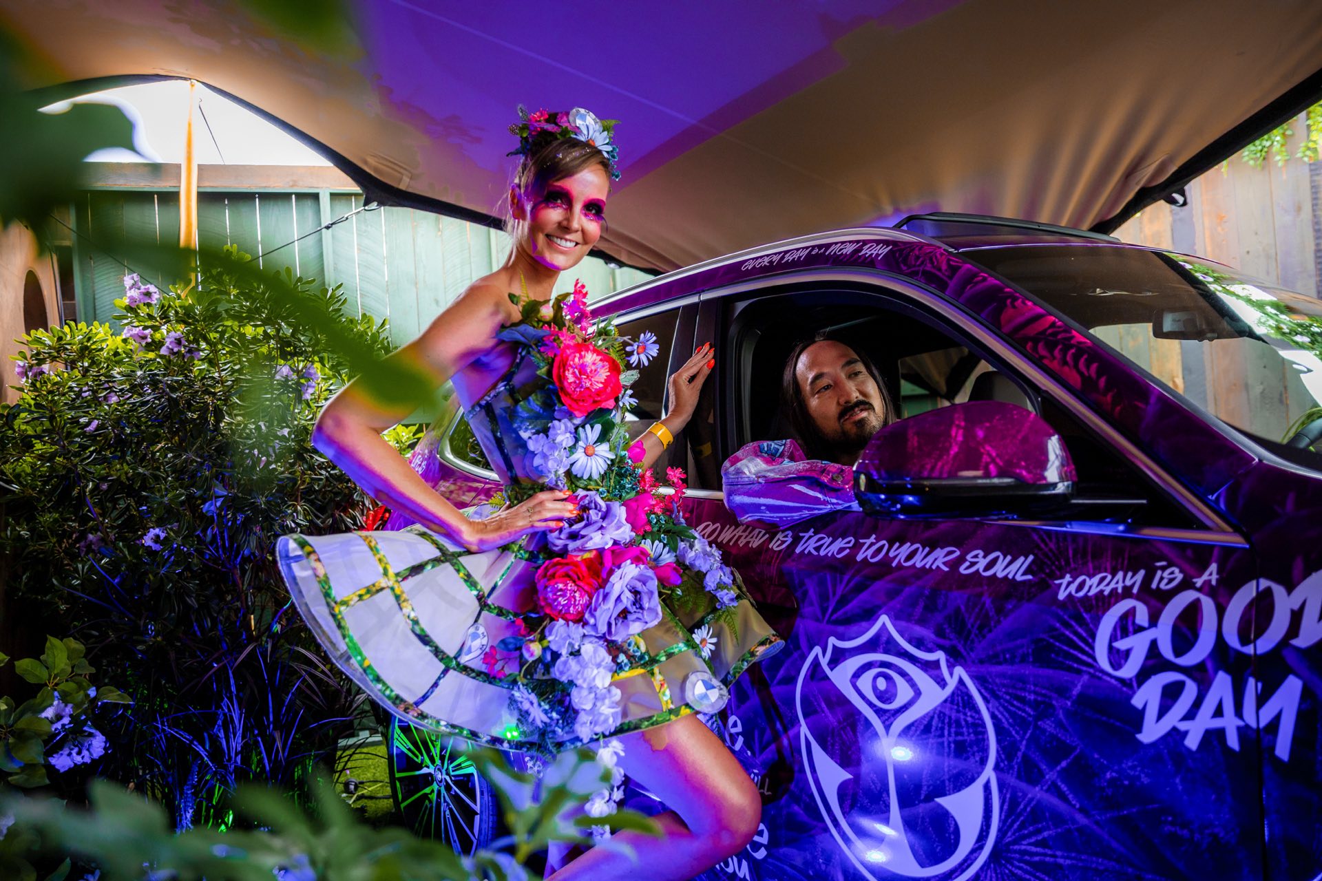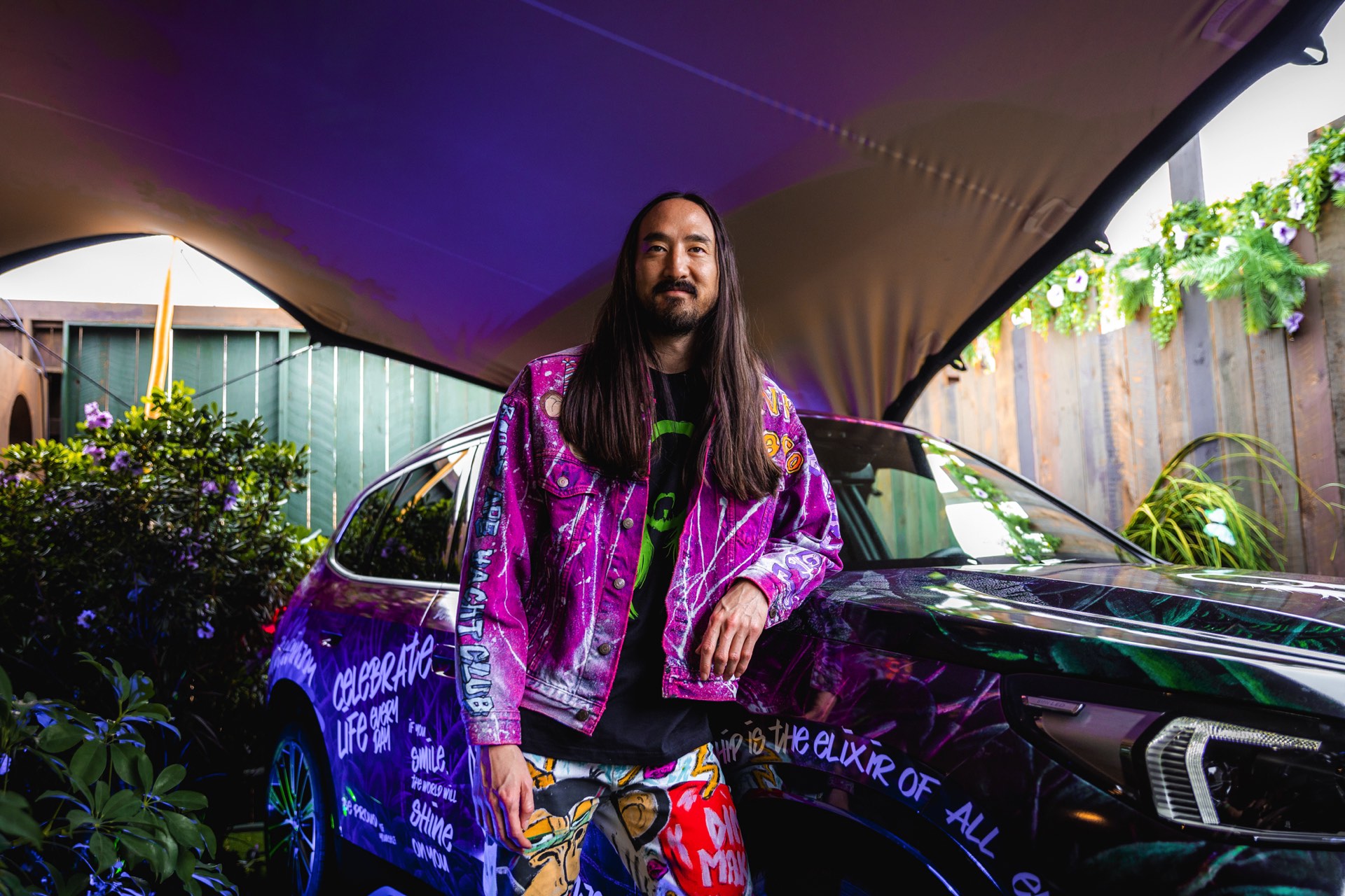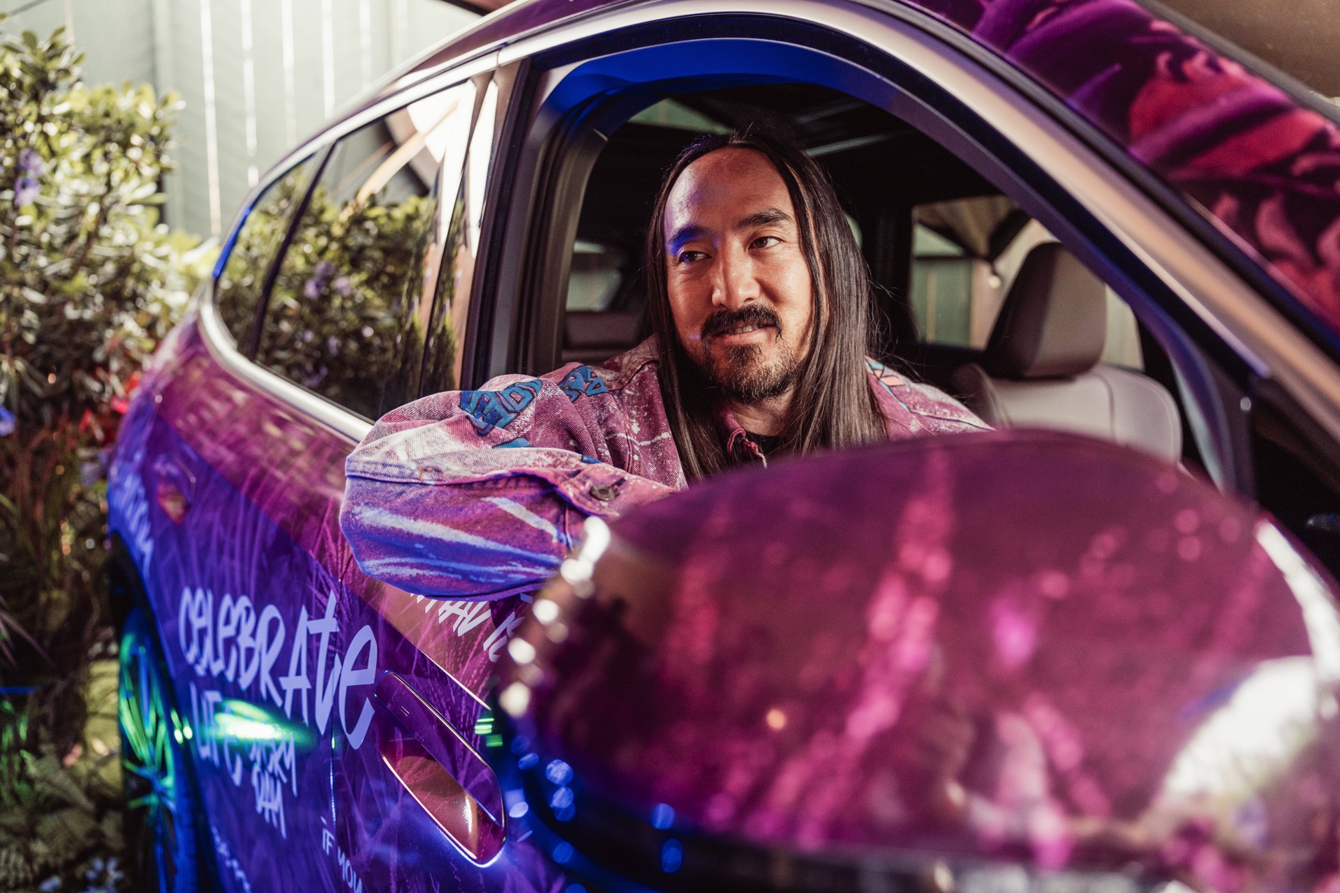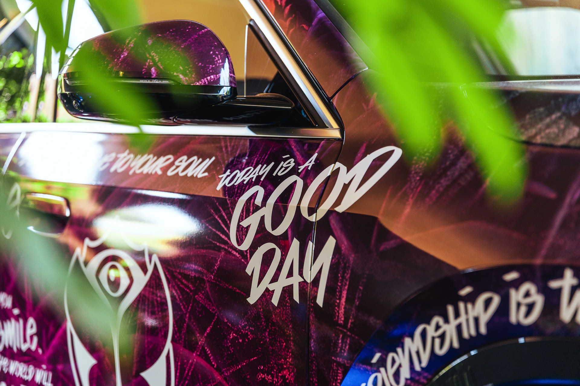 Als passendes Gefährt für die Fahrt in ein besseres Morgen präsentiert sich ein von Steve Aoki gestalteter BMW iX1. Die Folierung für das Elektro-SUV wurde vom amerikanischen DJ und Modedesigner für das Tomorrowland-Festival gestaltet, damit es die Botschaften und Wünsche der Festival-Besucher transportieren und sichtbar machen kann. Die prominent platzierten “Messages of Joy” wie “All you need is what you have”, “Do what is true to your soul”, “If you smile the world will shine on you” oder “Friendship is the elixir of all elements” wurden zuvor unter dem Hashtag #unitedinjoy gesammelt.
