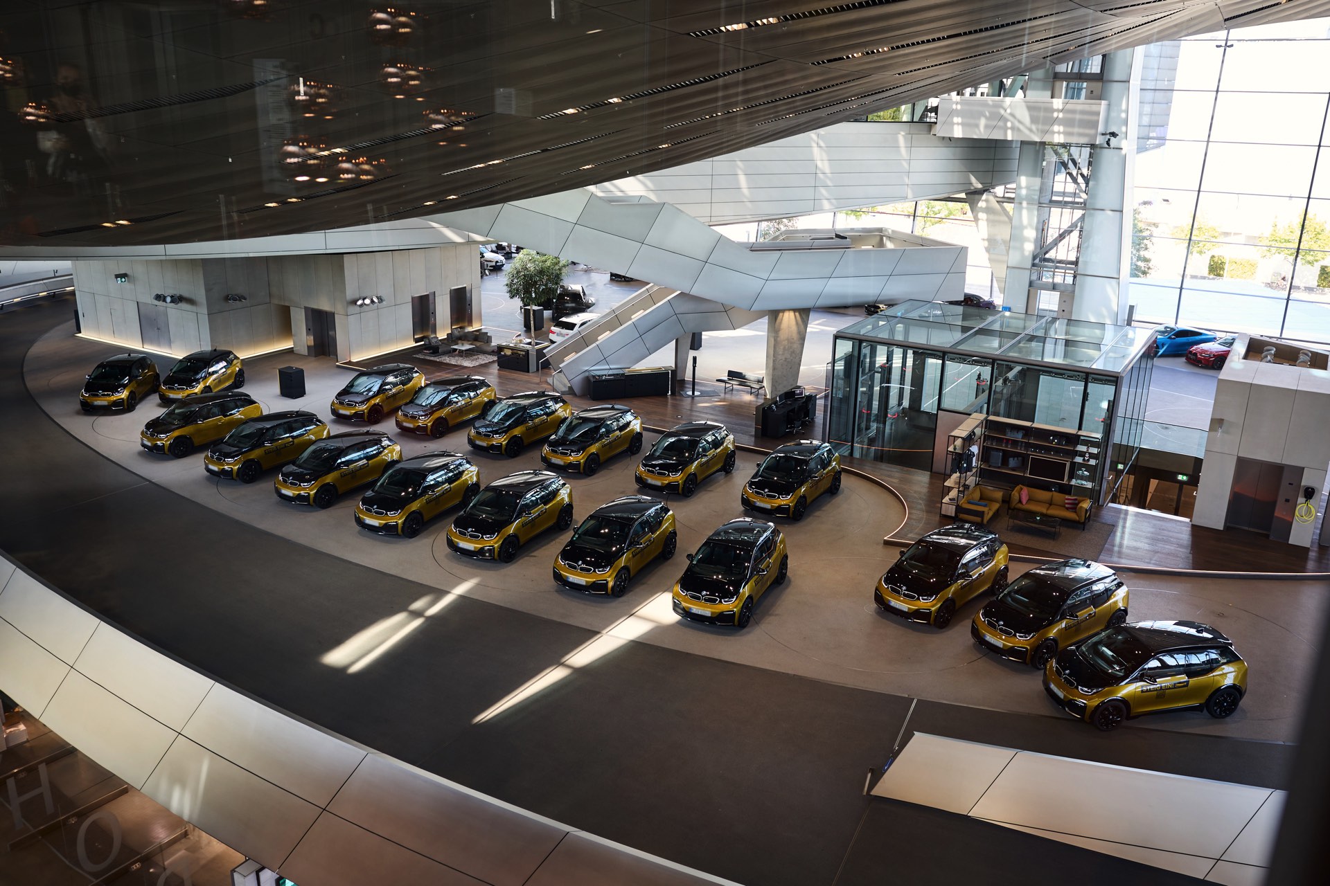 Mit 18 goldenen BMW i3 wird das Ende einer erfolgreichen Elektro-Karriere in der BMW Welt München gefeiert: Einige der letzten Exemplare des i3, dessen Produktion im Werk Leipzig Ende Juni mit der exklusiven HomeRun Edition beendet wurde, wurden am 2. August an ihren neuen Besitzer übergeben. Der Singular ist an dieser Stelle kein Zufall, denn die insgesamt 18 BMW i3s in Galvanic Gold wurden allesamt von der Münchner Autovermietung CarVia übernommen und werden dort künftig allen Interessierten zur Verfügung stehen: Das goldene Elektroauto mit 184 PS taucht schon jetzt auf der CarVia-Website auf und kann zu Preisen von knapp unter 40 Euro pro Tag gemietet werden.