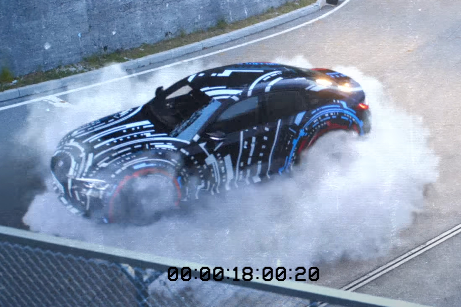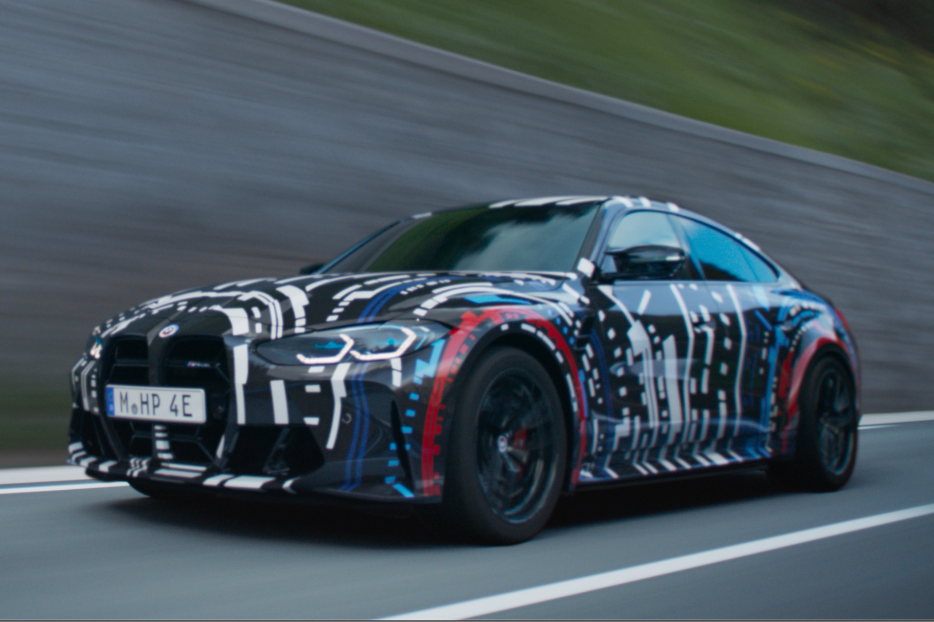 Im Video sehen wir zunächst einen BMW i4 M50 mit grüner Individual-Lackierung, aber schon bald drängt sich der gestern erstmals präsentierte Prototyp ins Bild: Mit der vom M4 CSL (G82) bekannten Niere mit lediglich drei Querstreben, mit deutlich verbreiterten Radhäusern für völlig neue Fahrwerkstechnik und natürlich mit einer auffälligen Folierung, die Kenner ab sofort auf den neuartigen Antrieb und das Aufschlagen eines neuen Kapitels hinweist. In einer kurzen Szene ist zu sehen, wie das Power-Elektroauto einen rasanten Donut dreht und jeder der vier Elektromotoren den Reifen “seines” Rads in Rauch aufgehen lässt.