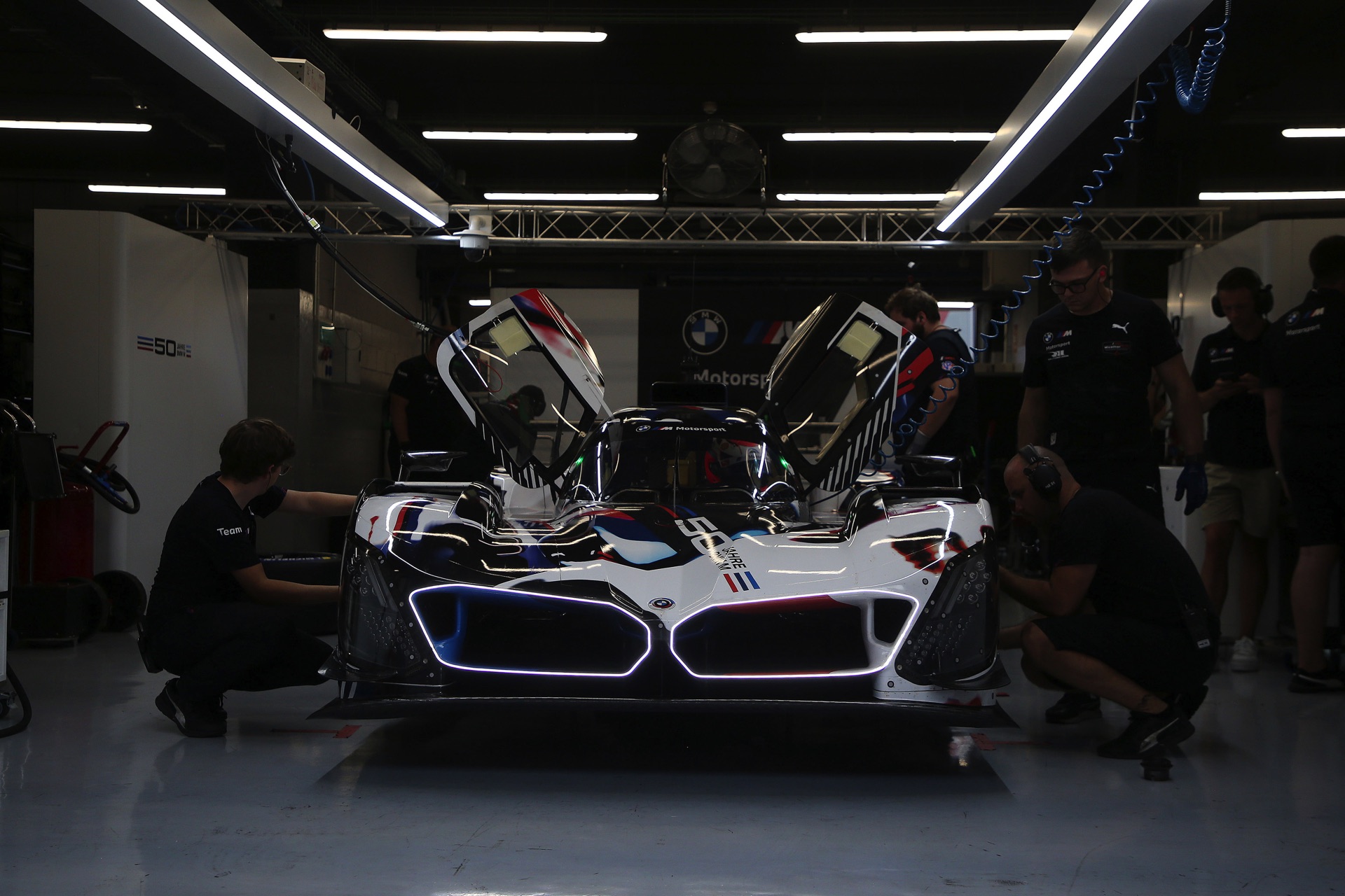 Die beleuchtete Niere wird mehr und mehr zum Markenzeichen von BMW bei Nacht: Nicht nur der neue 7er (G70) und sein elektrischer Ableger i7, auch der BMW M Hybrid V8 für den Einsatz bei diversen Langstrecken-Rennen in aller Welt wird dank der beleuchteten Nieren-Einfassung auch in den Nachtstunden auf den ersten Blick als BMW erkennbar sein. Aktuelle Fotos von den Testfahrten auf dem Circuit de Barcelona-Catalunya liefern uns erste Eindrücke von der Nacht-Optik des LMDh-Rennwagens, der in den nächsten Jahren von hunderttausenden Motorsport-Fans gesehen werden soll.