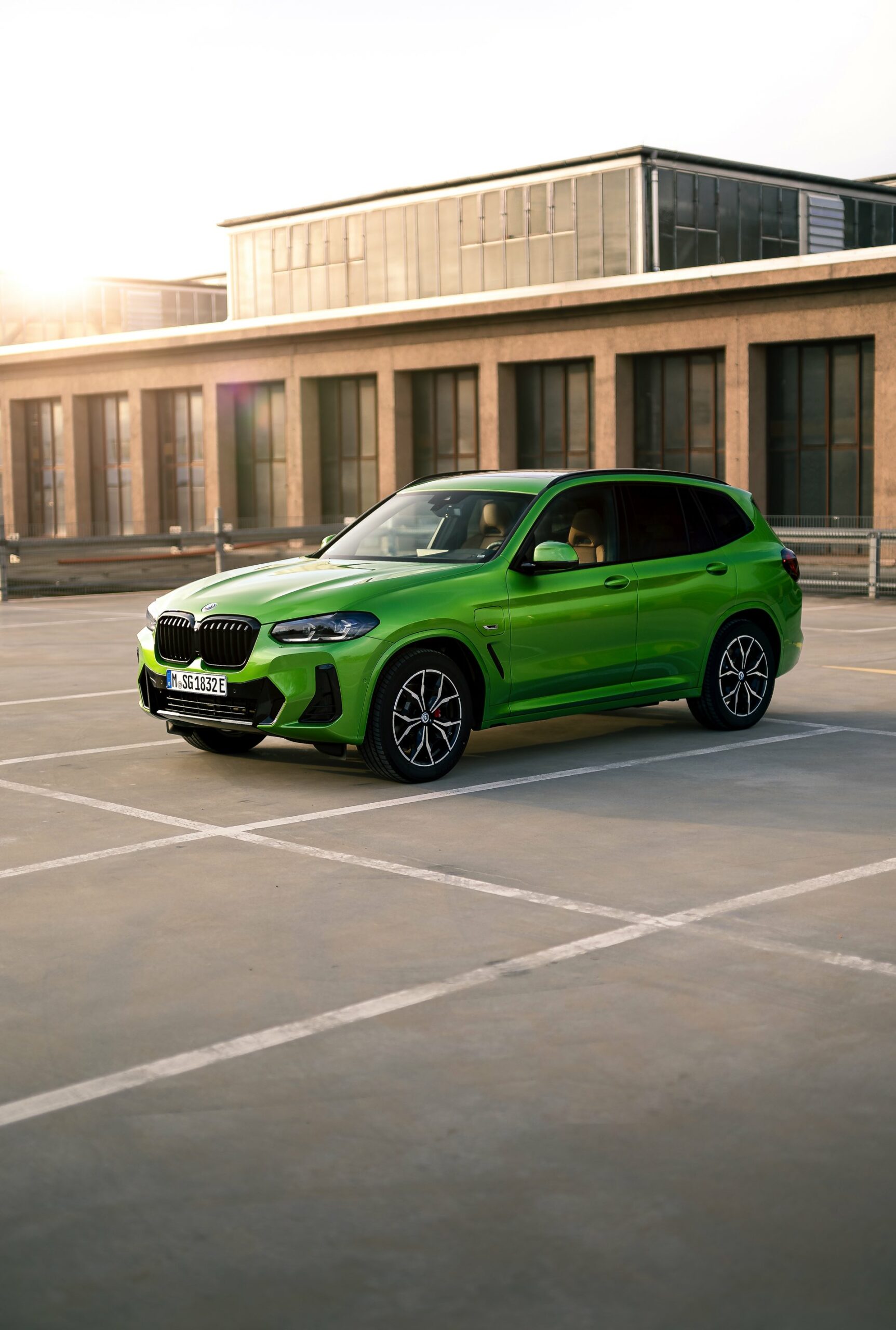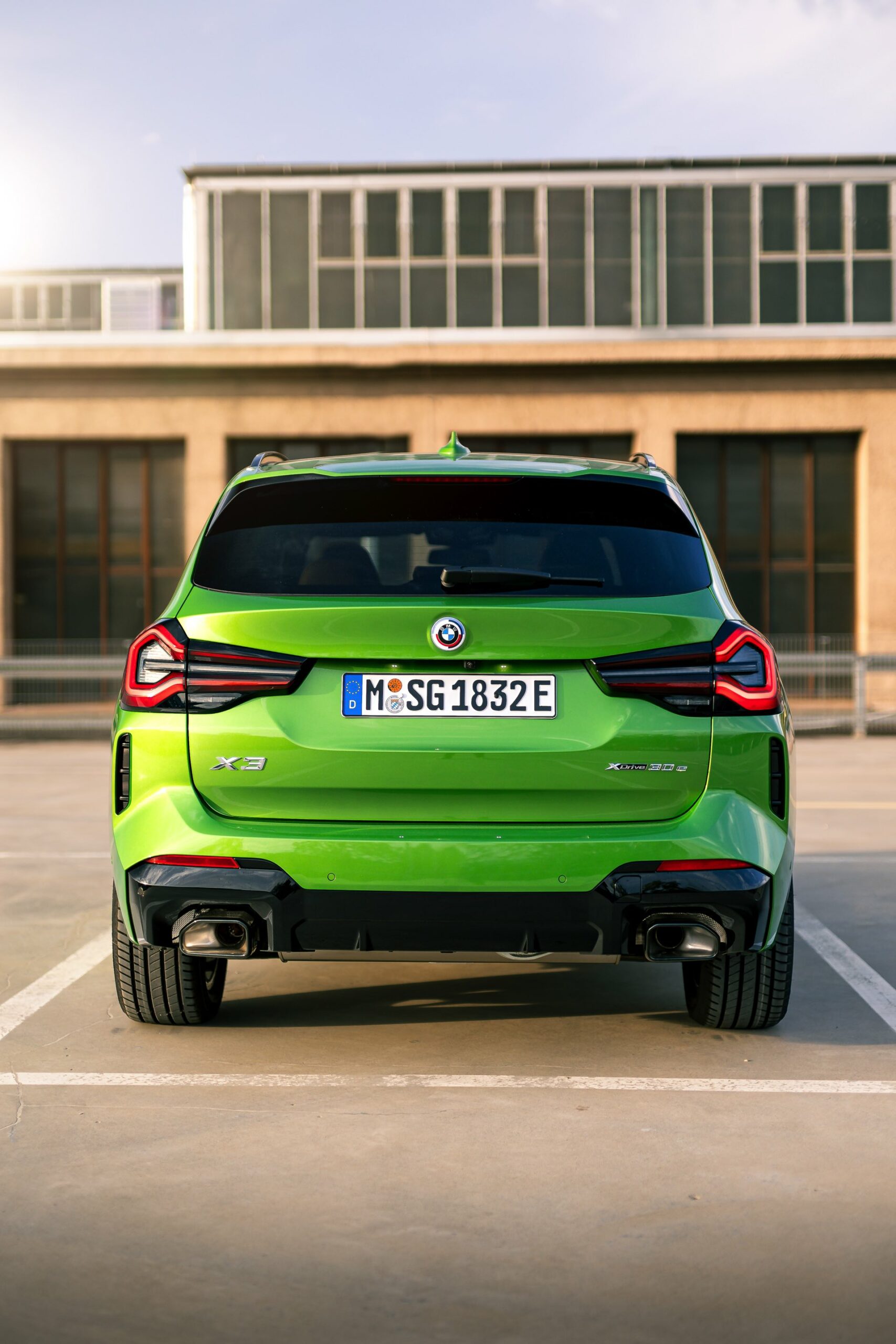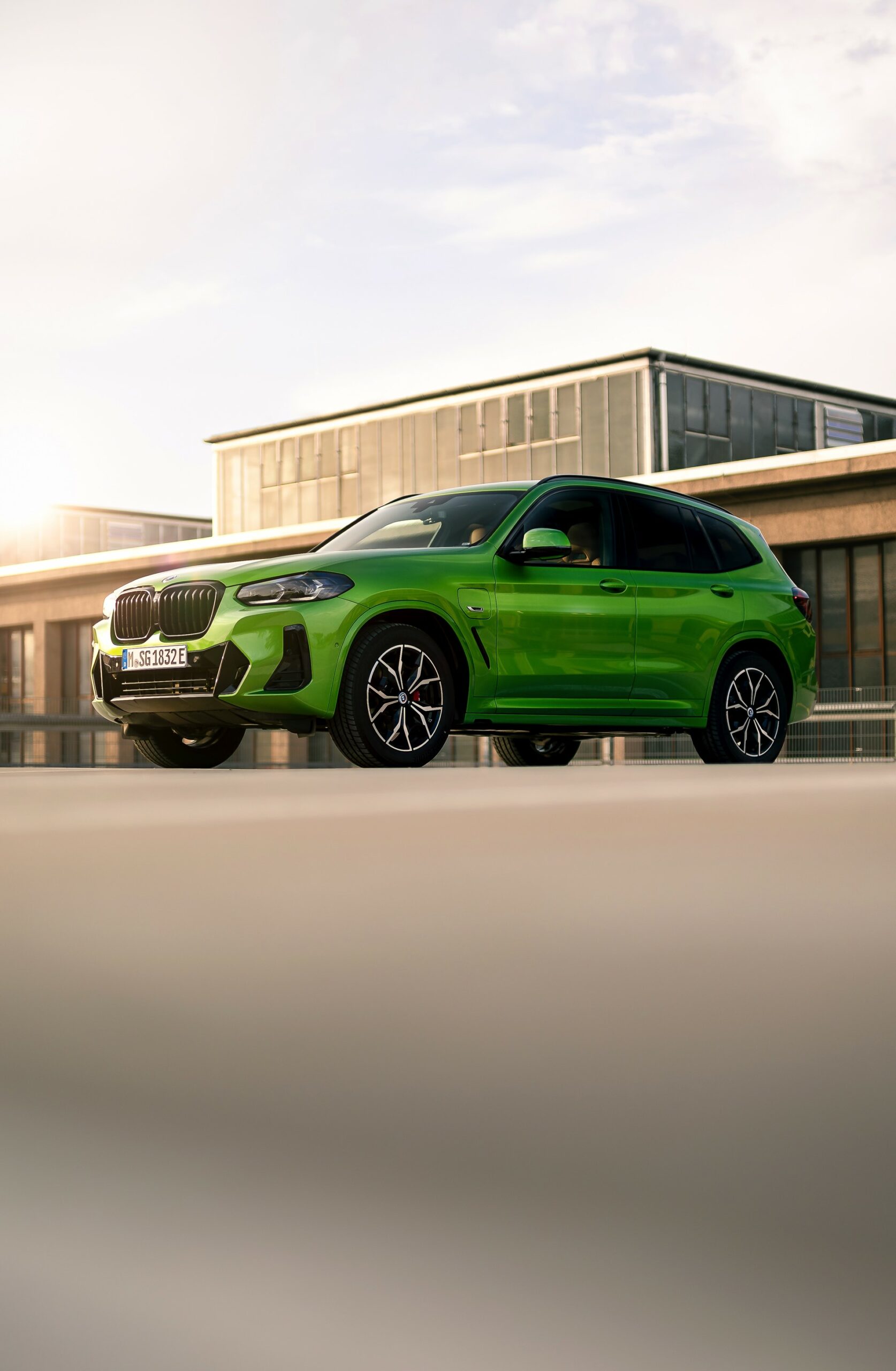 Dass der gezeigte BMW X3 in Java Grün trotz lautem Auftritt auch ganz leise kann, verdankt er seinem Plug-in-Hybrid-Antrieb: Als xDrive30e schafft das Mittelklasse-SUV laut WLTP 42 bis 50 Kilometer rein elektrisch und somit lokal emissionsfrei, in der gezeigten Konfiguration mit M Sport-Paket und großen Rädern dürfte sich das Fahrzeug aber eher am unteren Rand dieser Bandbreite bewegen. Gemeinsam bieten der Elektromotor und der Vierzylinder-Benziner eine Systemleistung von 292 PS, womit der X3 laut Werksangabe in 6,1 Sekunden von 0 auf 100 km/h beschleunigen kann.