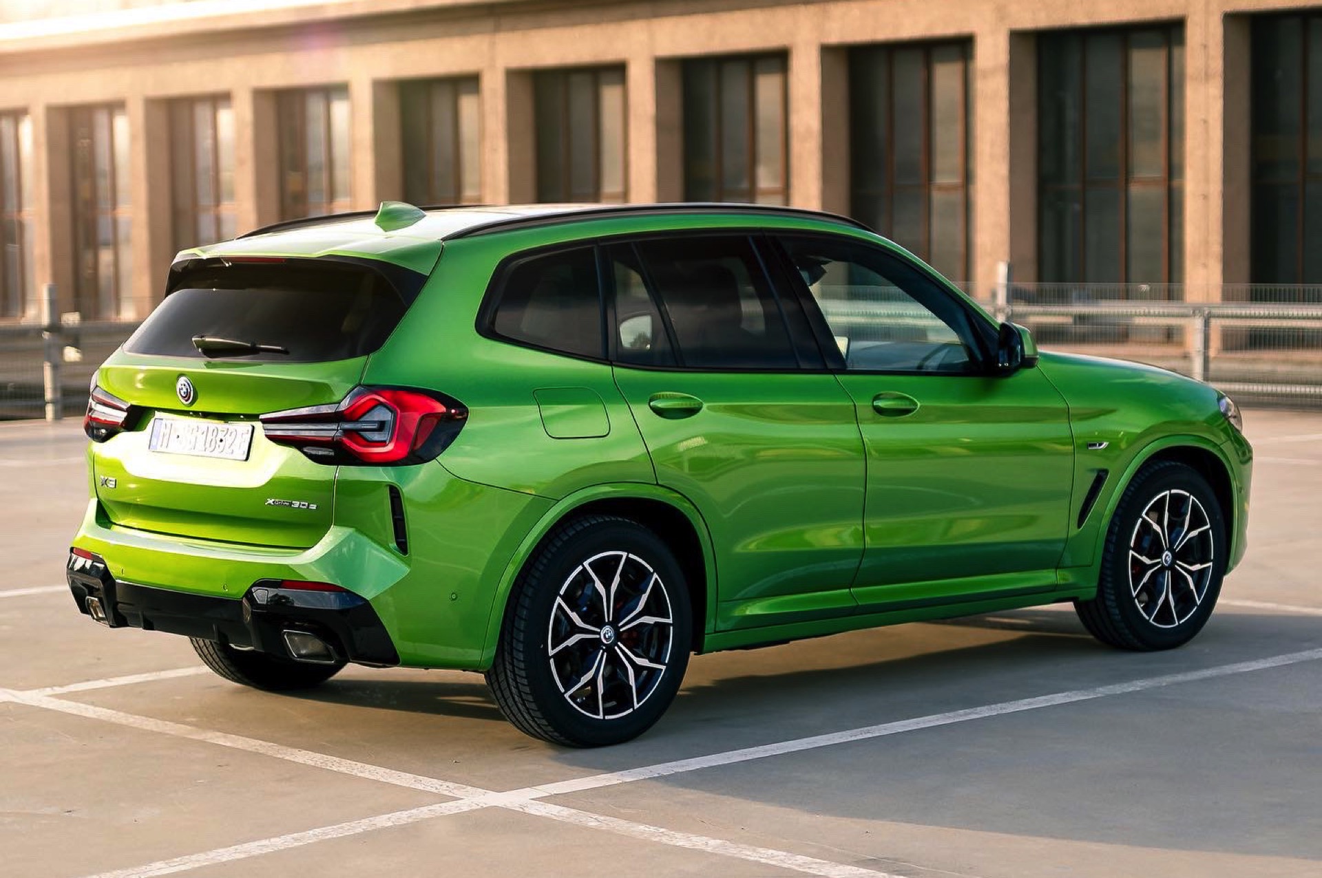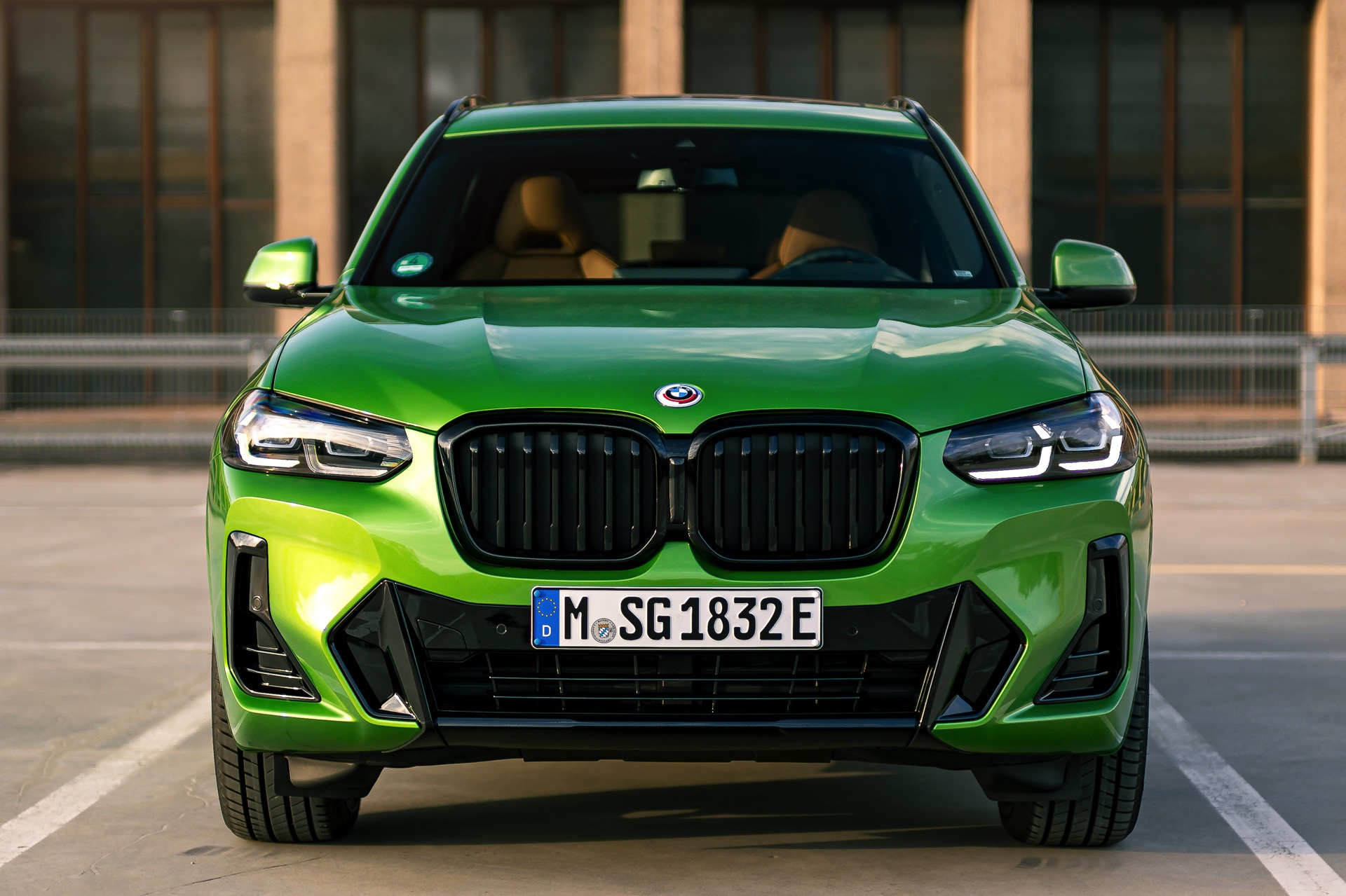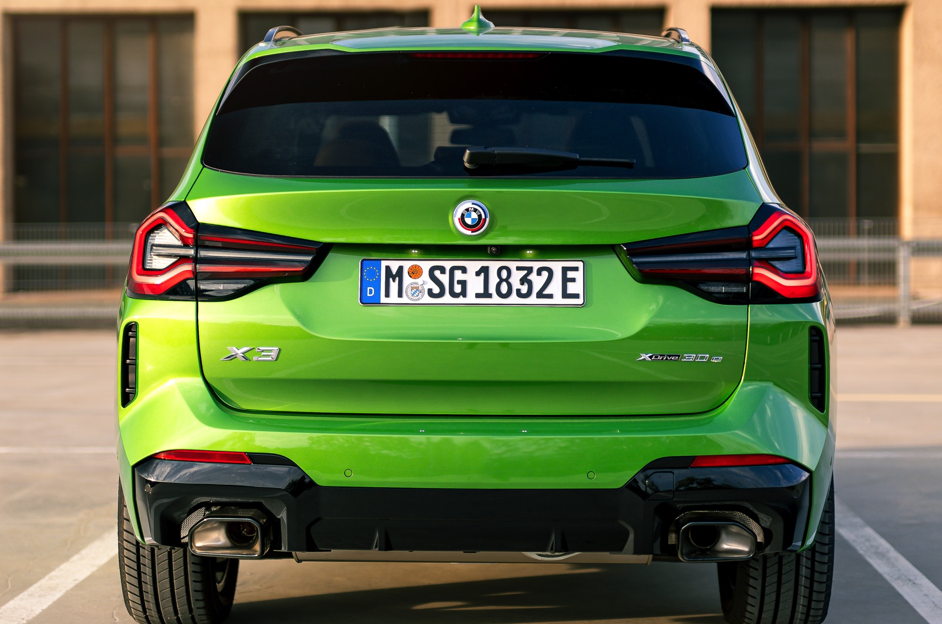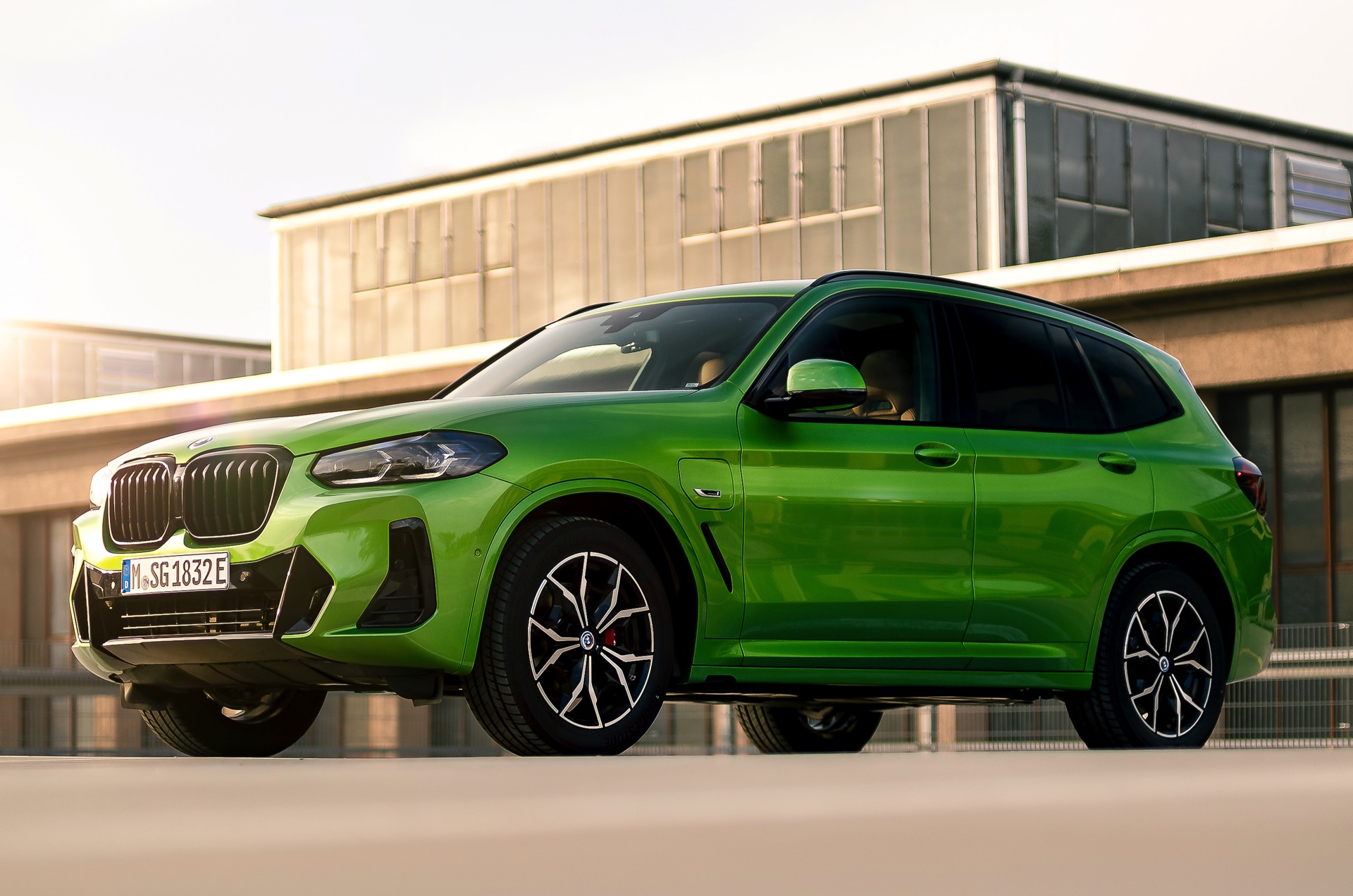 Dass der gezeigte BMW X3 in Java Grün trotz lautem Auftritt auch ganz leise kann, verdankt er seinem Plug-in-Hybrid-Antrieb: Als xDrive30e schafft das Mittelklasse-SUV laut WLTP 42 bis 50 Kilometer rein elektrisch und somit lokal emissionsfrei, in der gezeigten Konfiguration mit M Sport-Paket und großen Rädern dürfte sich das Fahrzeug aber eher am unteren Rand dieser Bandbreite bewegen. Gemeinsam bieten der Elektromotor und der Vierzylinder-Benziner eine Systemleistung von 292 PS, womit der X3 laut Werksangabe in 6,1 Sekunden von 0 auf 100 km/h beschleunigen kann.