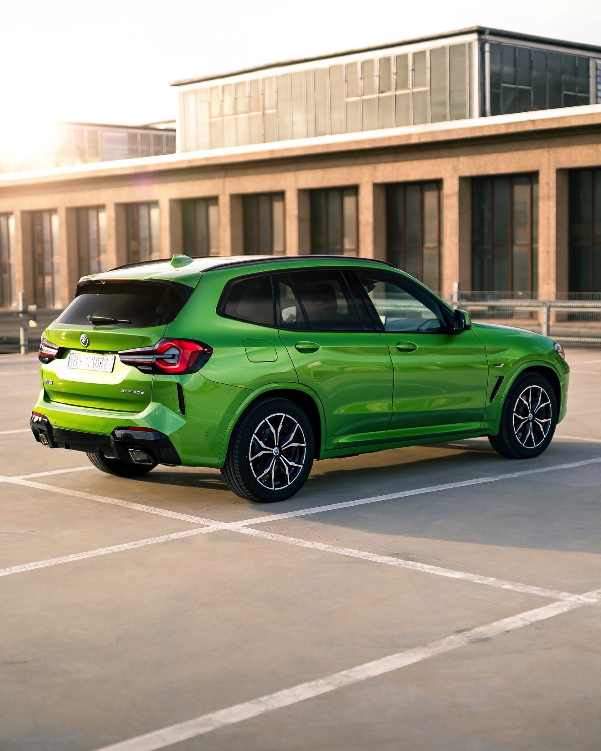 Mittelklasse-SUV sind grau und langweilig? Das muss nicht sein! Wie deutlich sich ein BMW X3 Facelift (G01 LCI) aus der grauen Masse herausheben kann, zeigt das Beispiel eines xDrive30e mit Individual-Lackierung in Java Grün sowie Shadow Line mit erweiterten Umfängen. Die giftgrüne Lackierung kommt auf den markanten Formen der seit dem Facelift wesentlich kantiger gezeichneten Schürzen des M Sport-Pakets hervorragend zur Geltung und macht den X3 zum Star auf jedem Parkplatz, die schwarzen Details und vor allem die komplett in Hochglanz-Schwarz gehaltene Niere geben einen zusätzlichen sportlichen Touch.